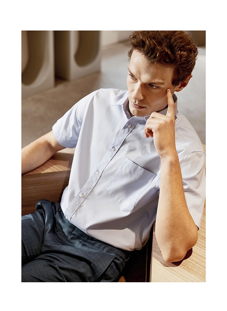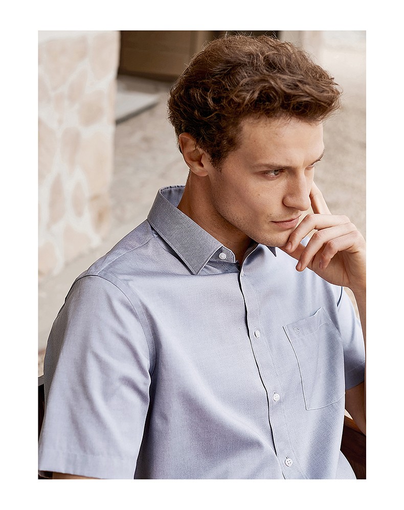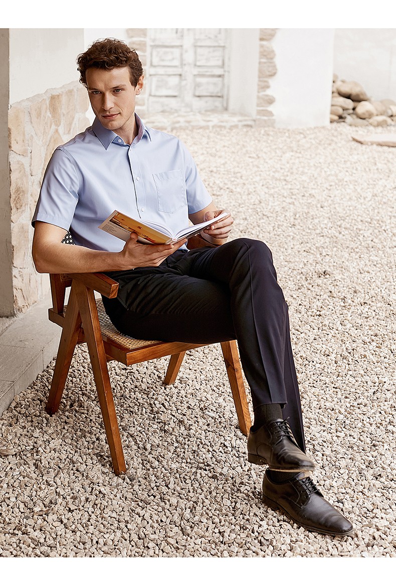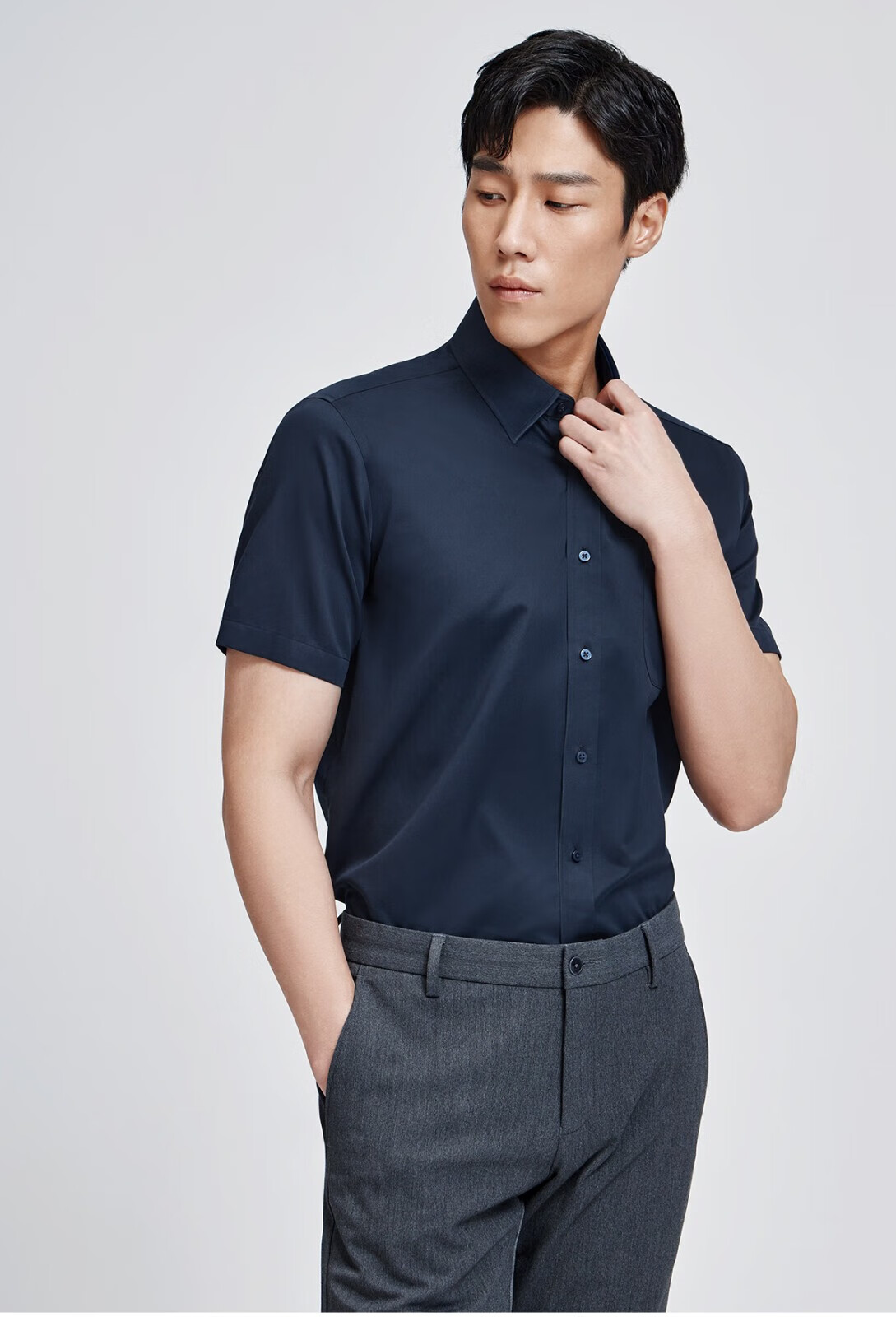 Camisa de manga corta Goldlion de verano para hombre de algodón puro, cómoda, transpirable, nano, sin hierro, camisa formal de manga corta para negocios, azul claro-15 ESSEE993001 3XL