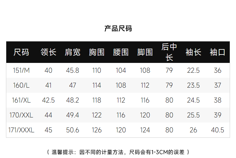 China (cm) 160-165/84-86 165-170 / 88-90 167-172 / 92-96 168-173 / 98-102 170-176 / 106-110