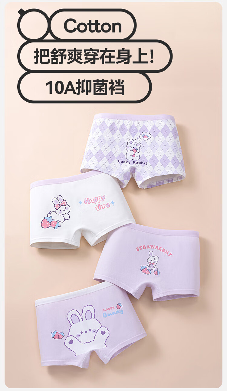 Red bean girls underwear baby boxer briefs 10A antibacterial baby cotton comfortable breathable baby underwear 4 pack