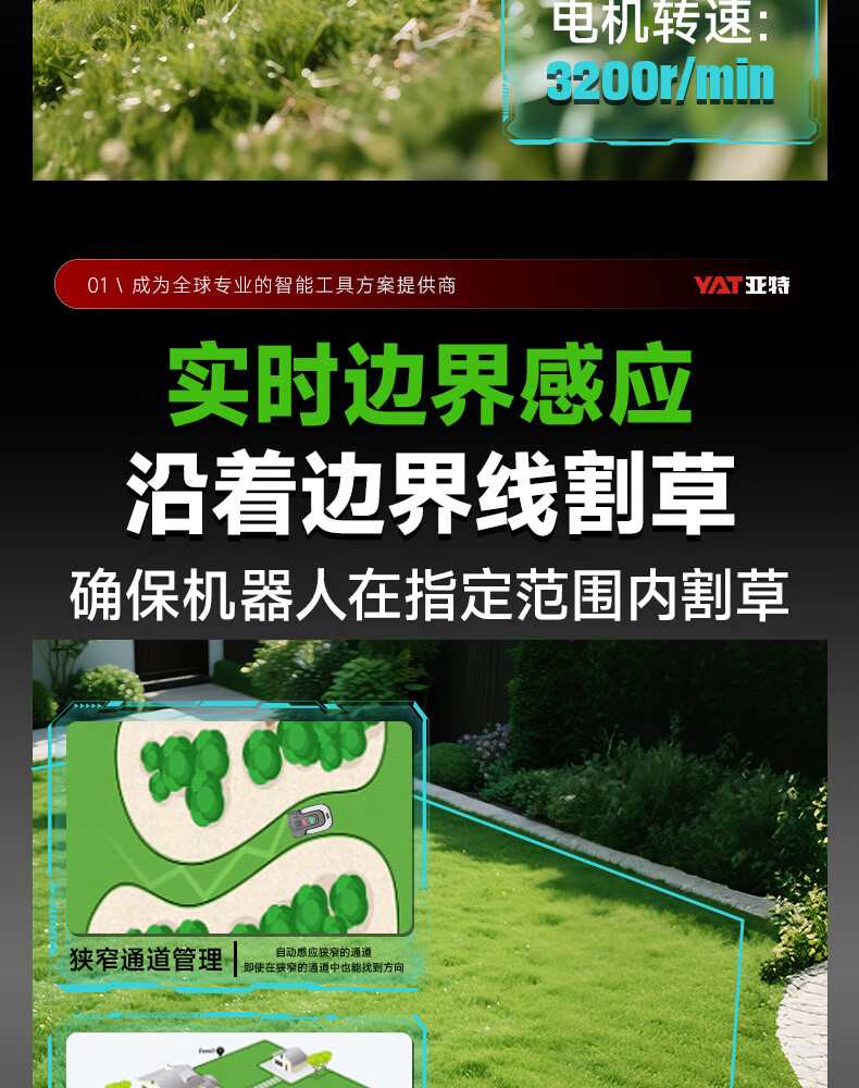 Yate-robot cortacésped inteligente, cortacésped con batería de litio 8802, cortacésped pequeño para el hogar