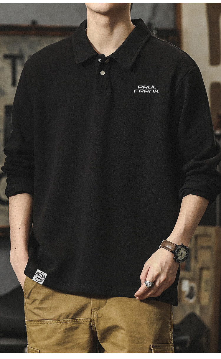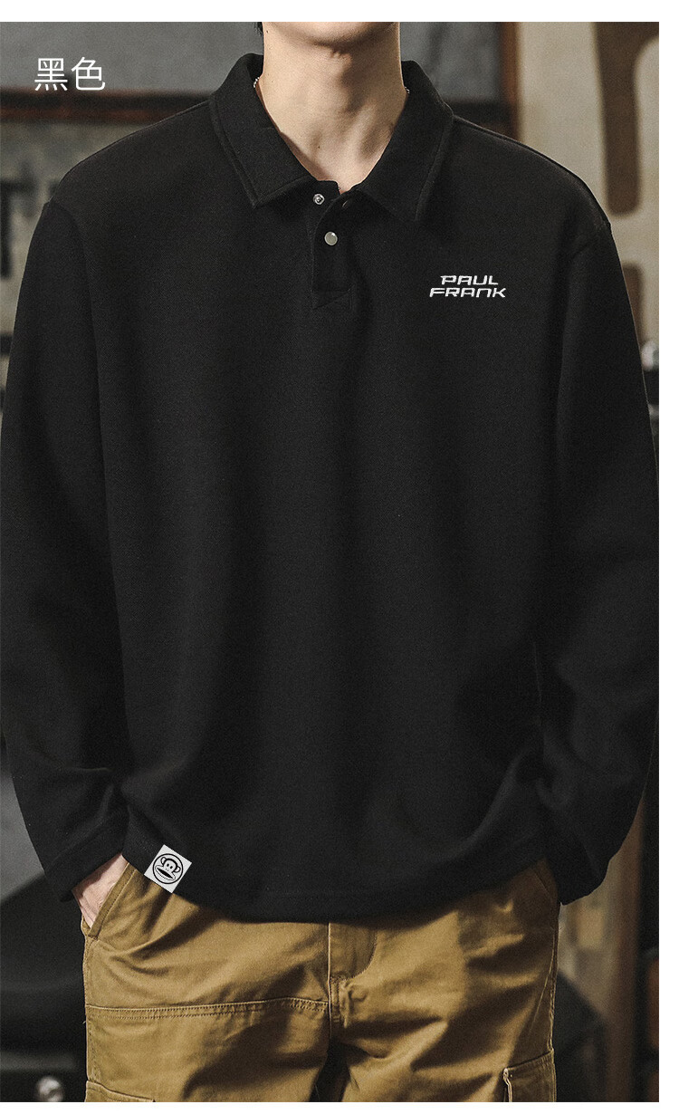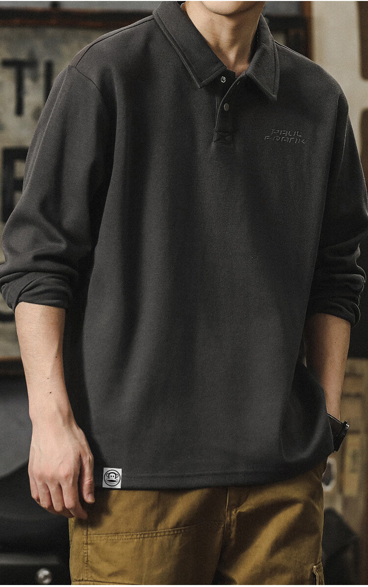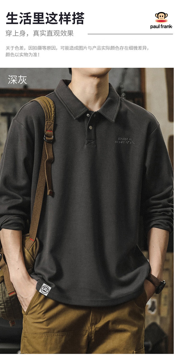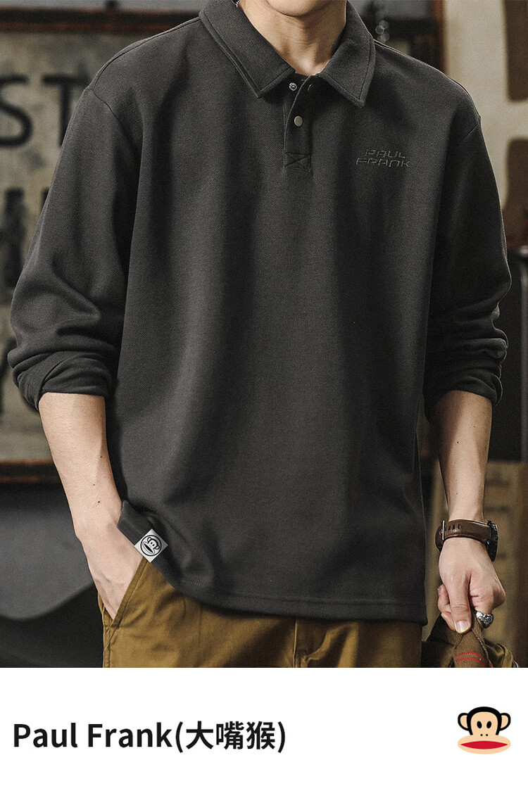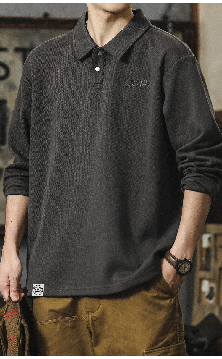 Paul Frank long-sleeved T-shirt men's solid color polo shirt men's spring and autumn American bottoming shirt men's tops dark gray XL