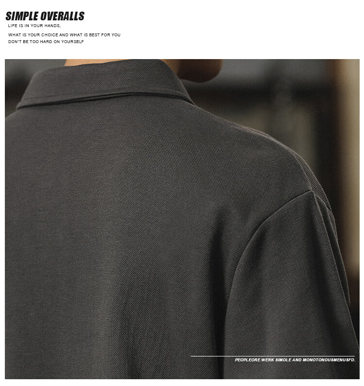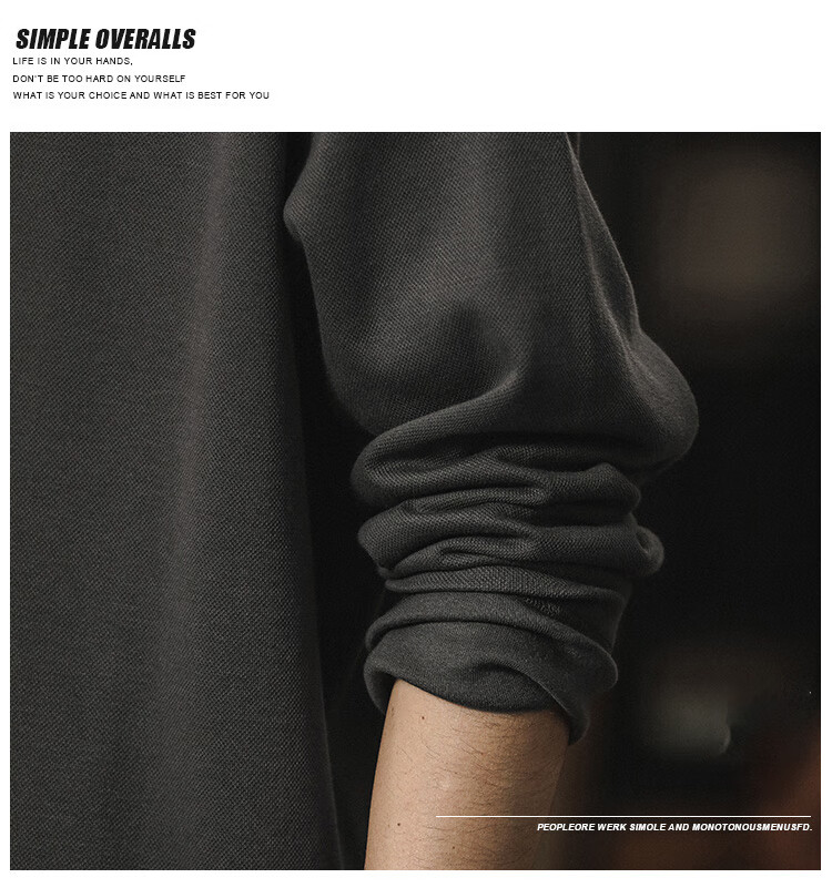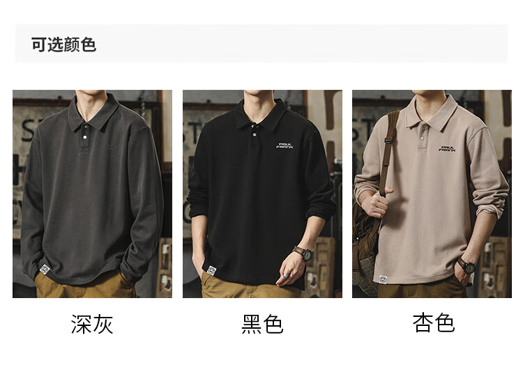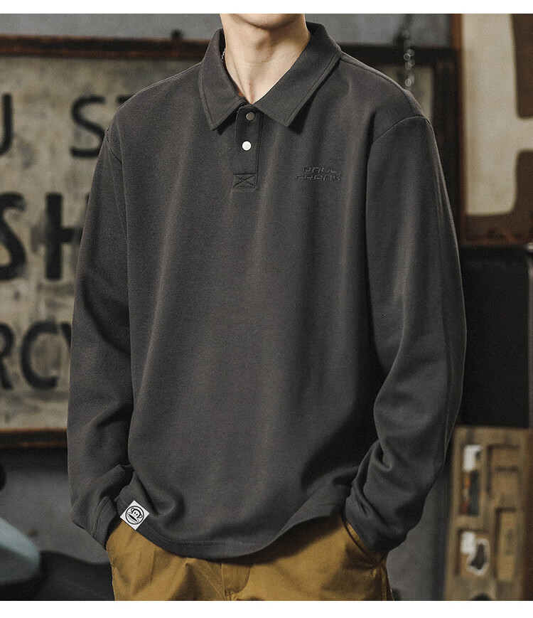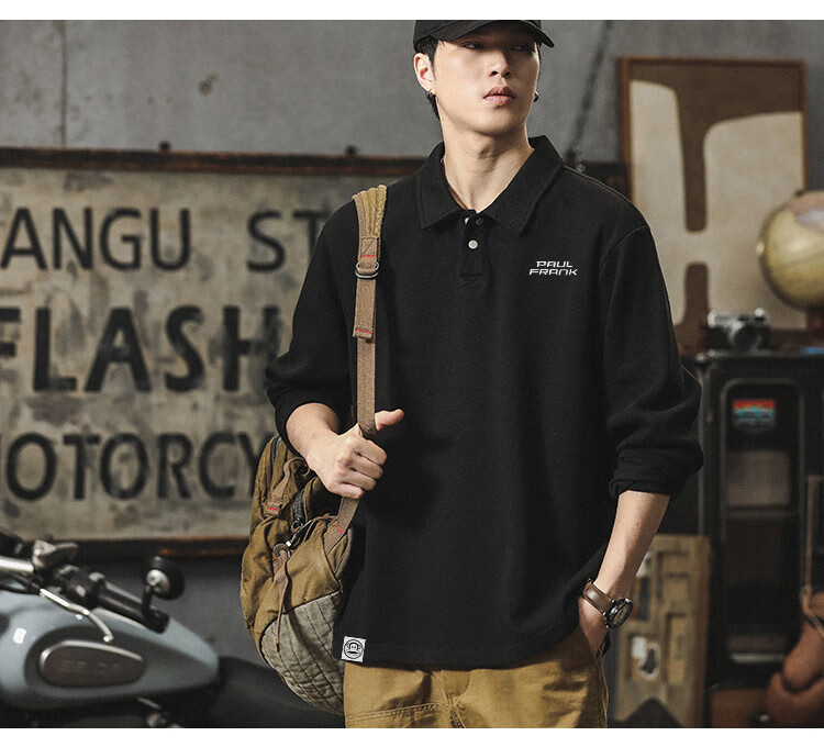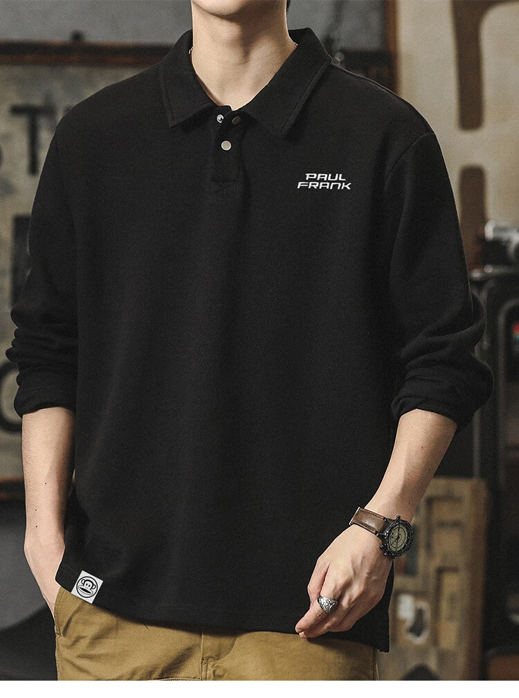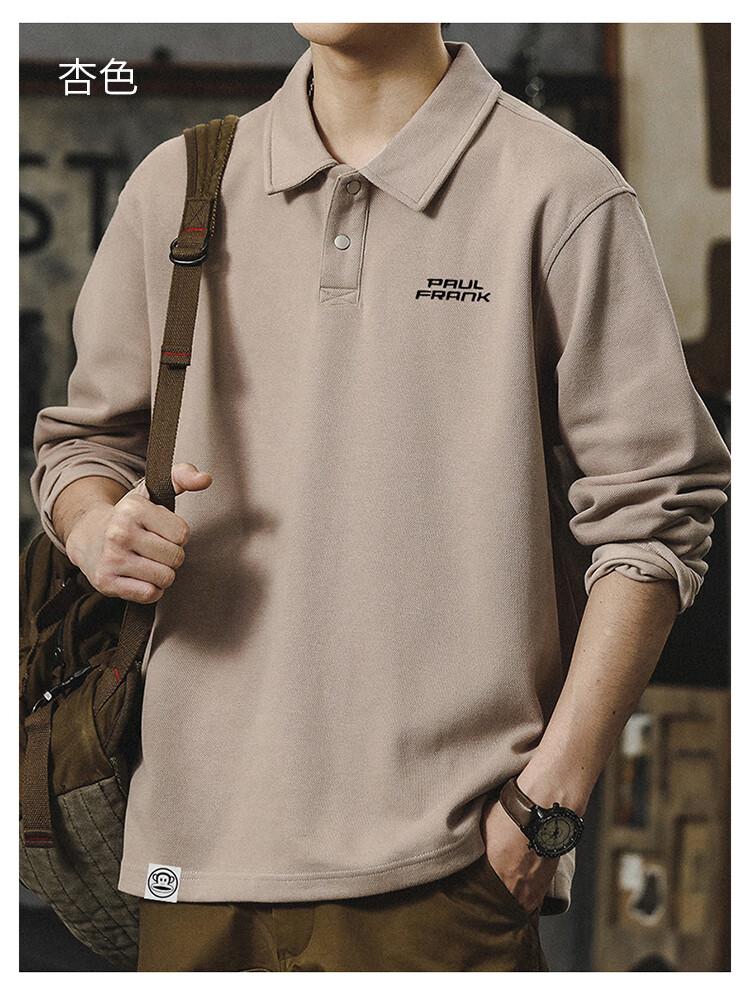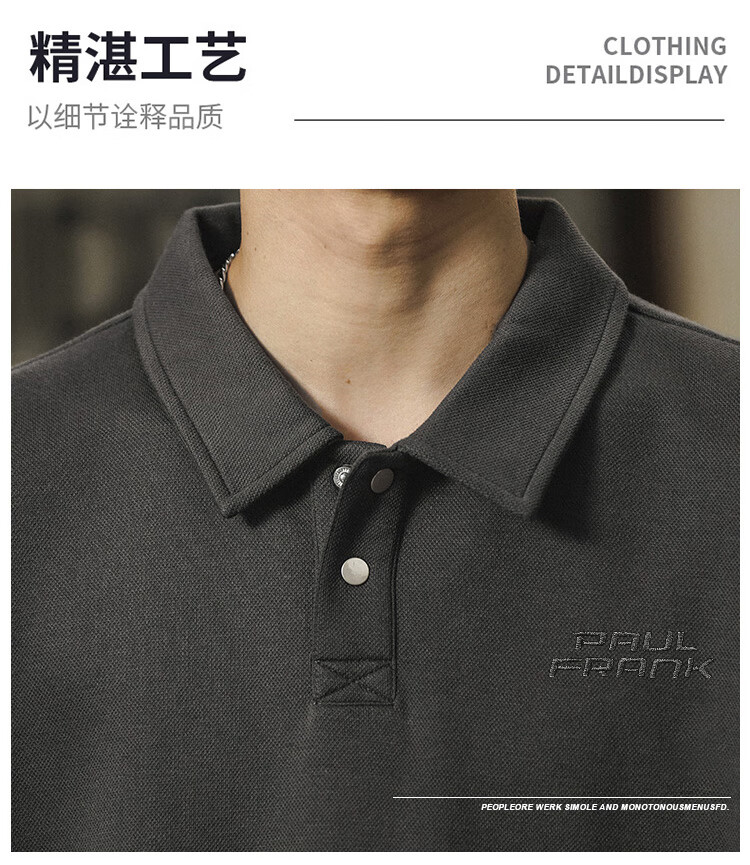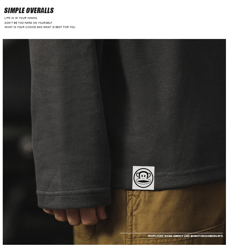 Paul Frank long-sleeved T-shirt men's solid color polo shirt men's spring and autumn American bottoming shirt men's tops dark gray XL