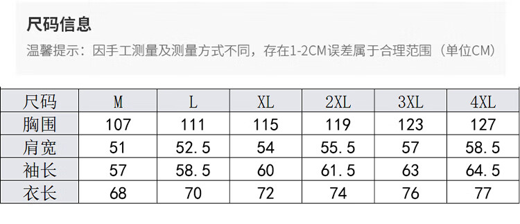 Size (cm) 42 44 46 48 50