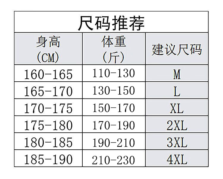 China (cm) 165 / 88-90 170 / 96-98 175 / 108-110 180 / 118-122 185 / 126-130