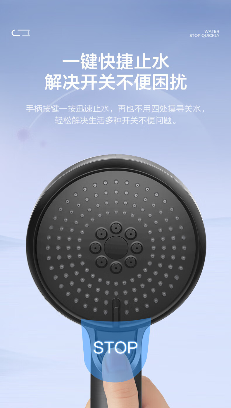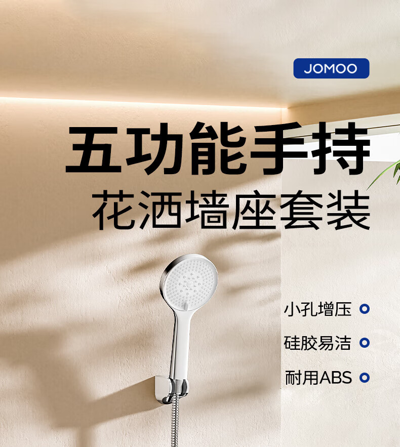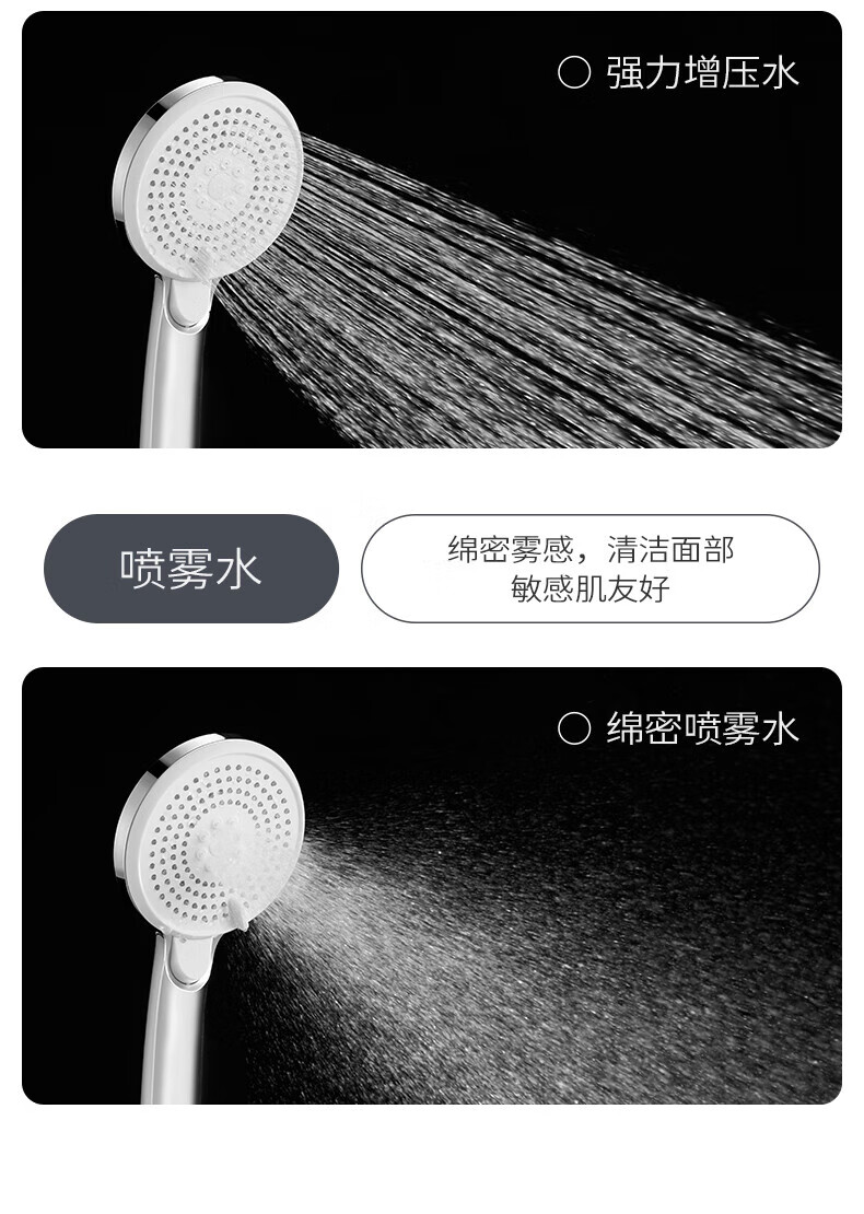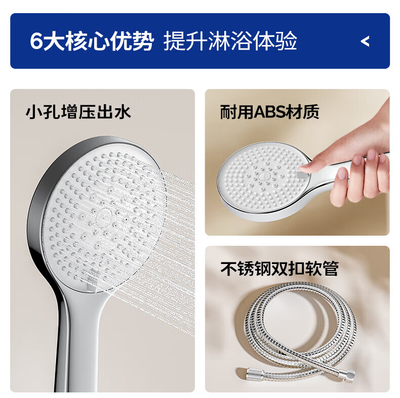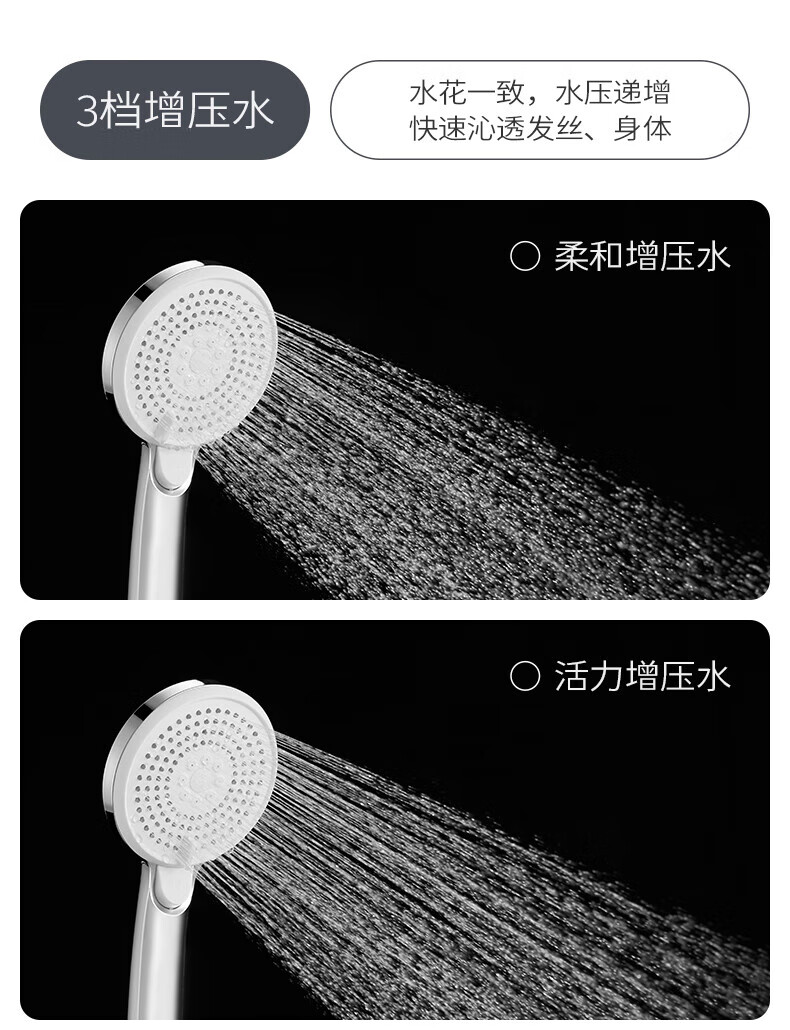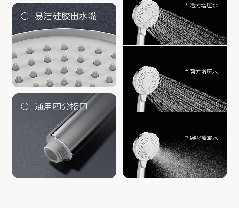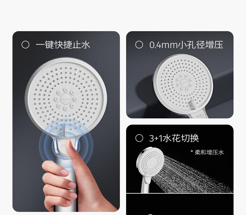 JOMOO ABS plastic shower head 4 points high temperature resistant and non-fading 3-speed boosted one-touch water stop boosted single shower head-S255014-2B01-1
