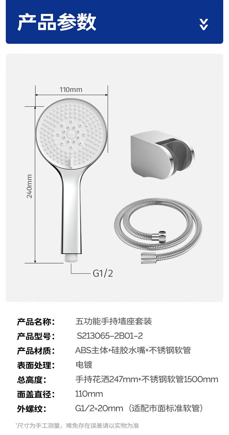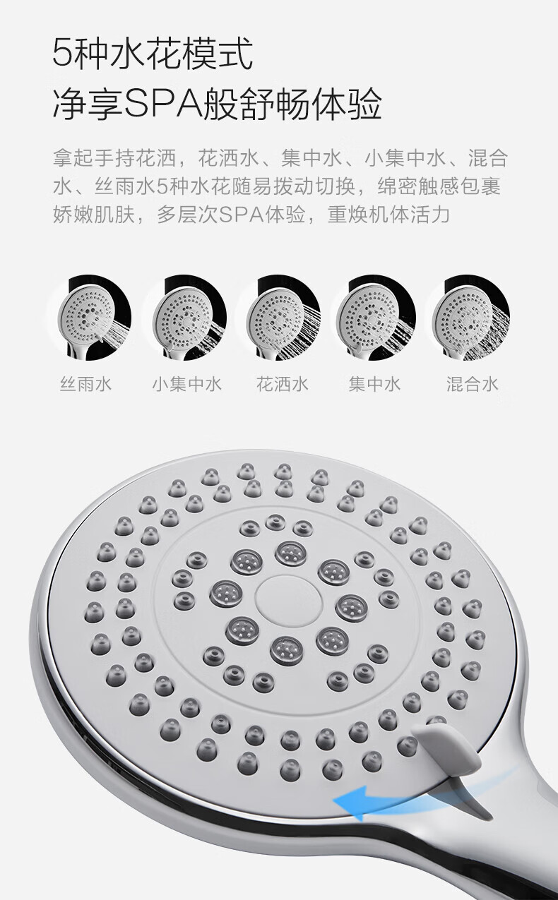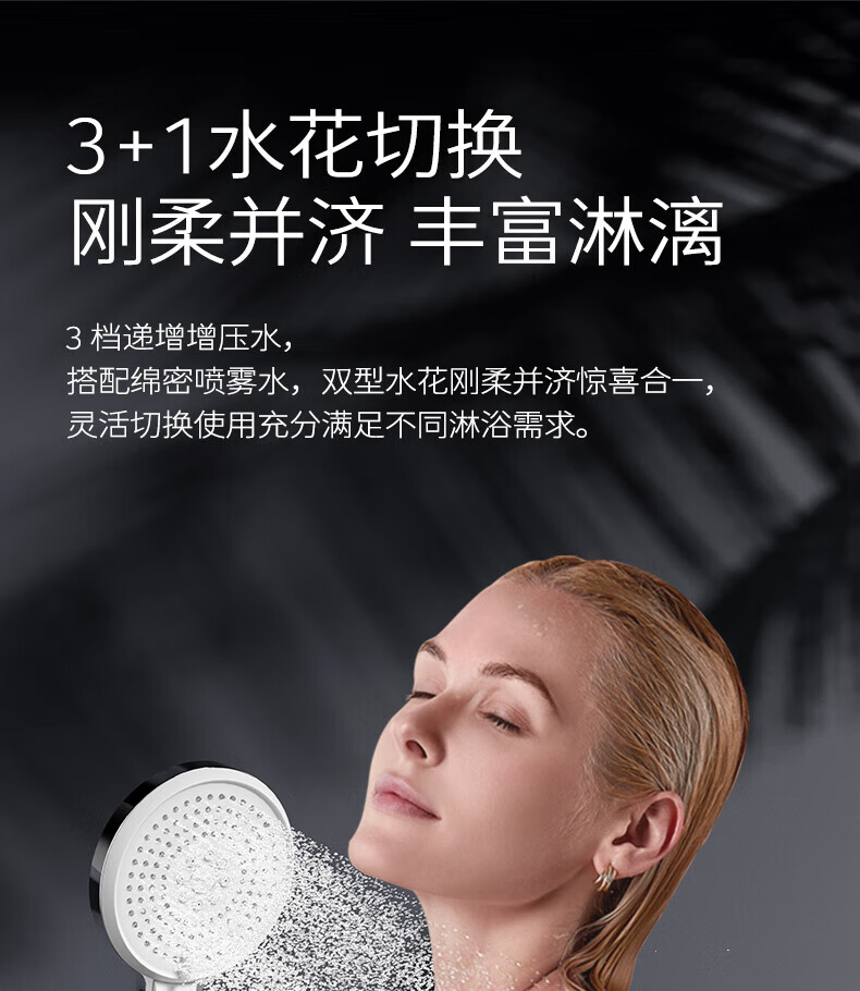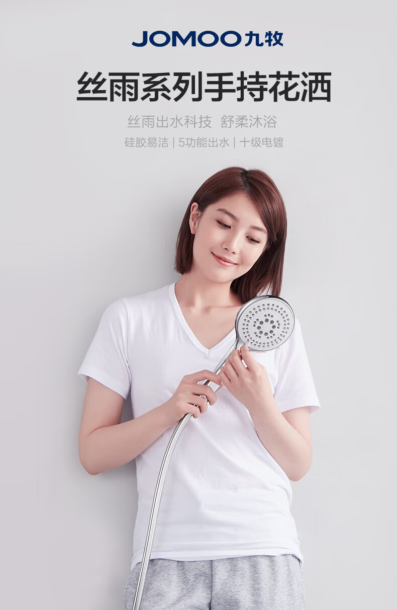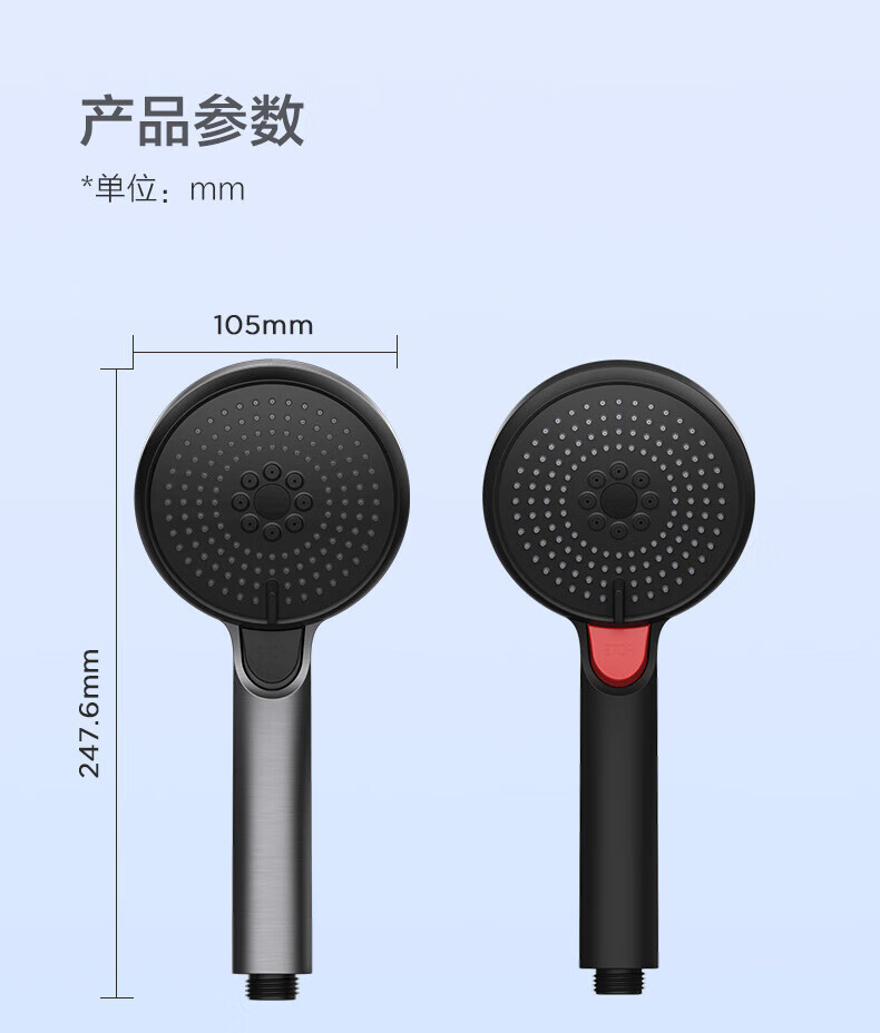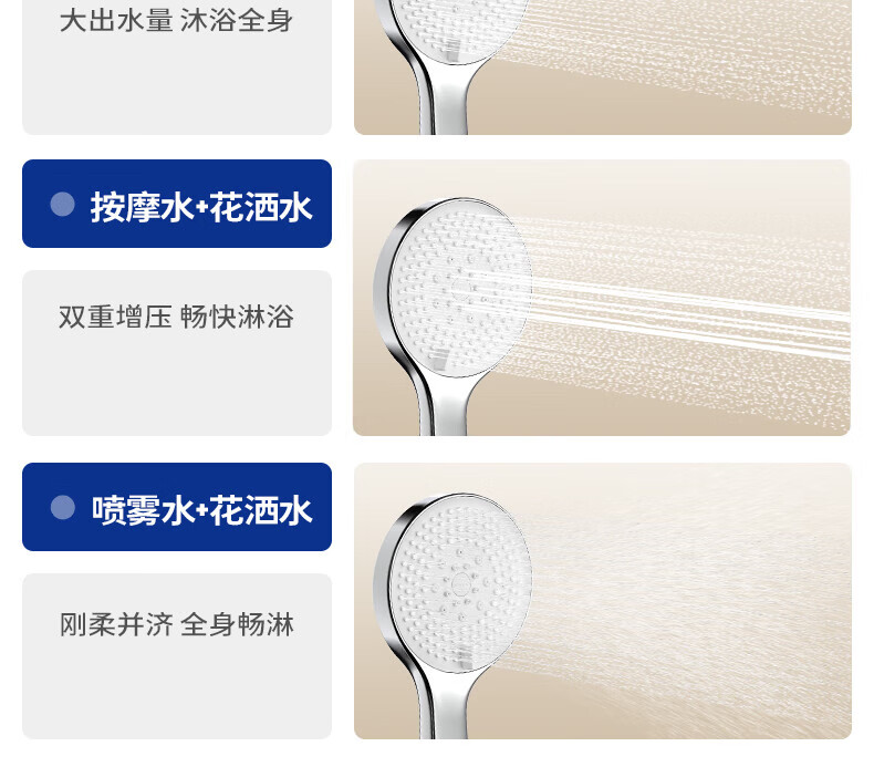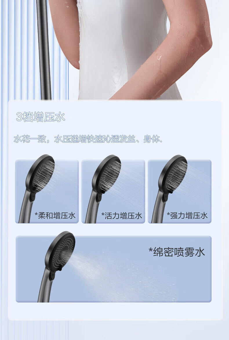 JOMOO ABS plastic shower head 4 points high temperature resistant and non-fading 3-speed boosted one-touch water stop boosted single shower head-S255014-2B01-1
