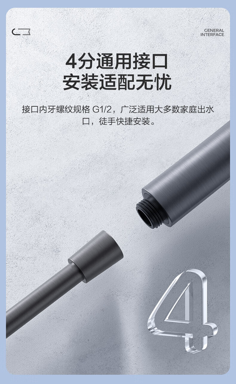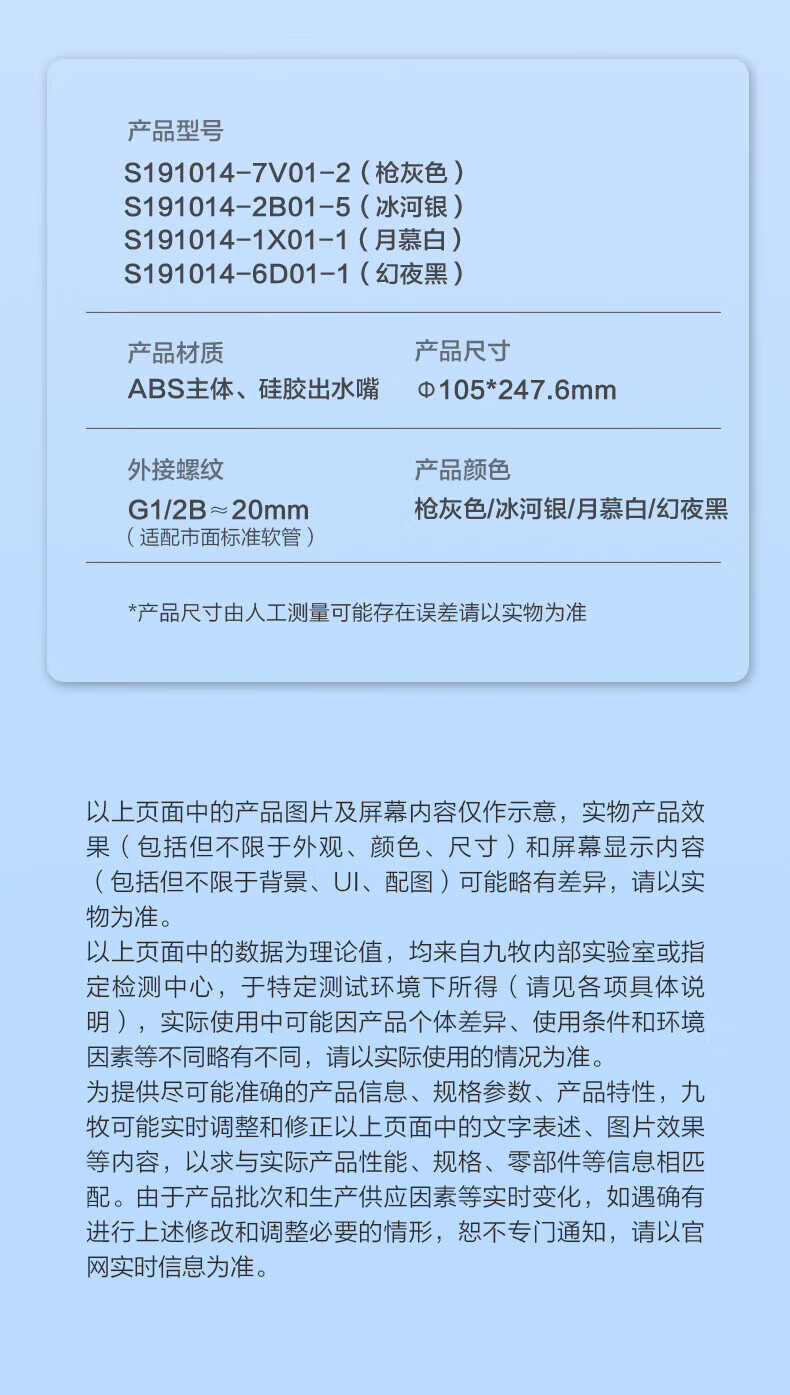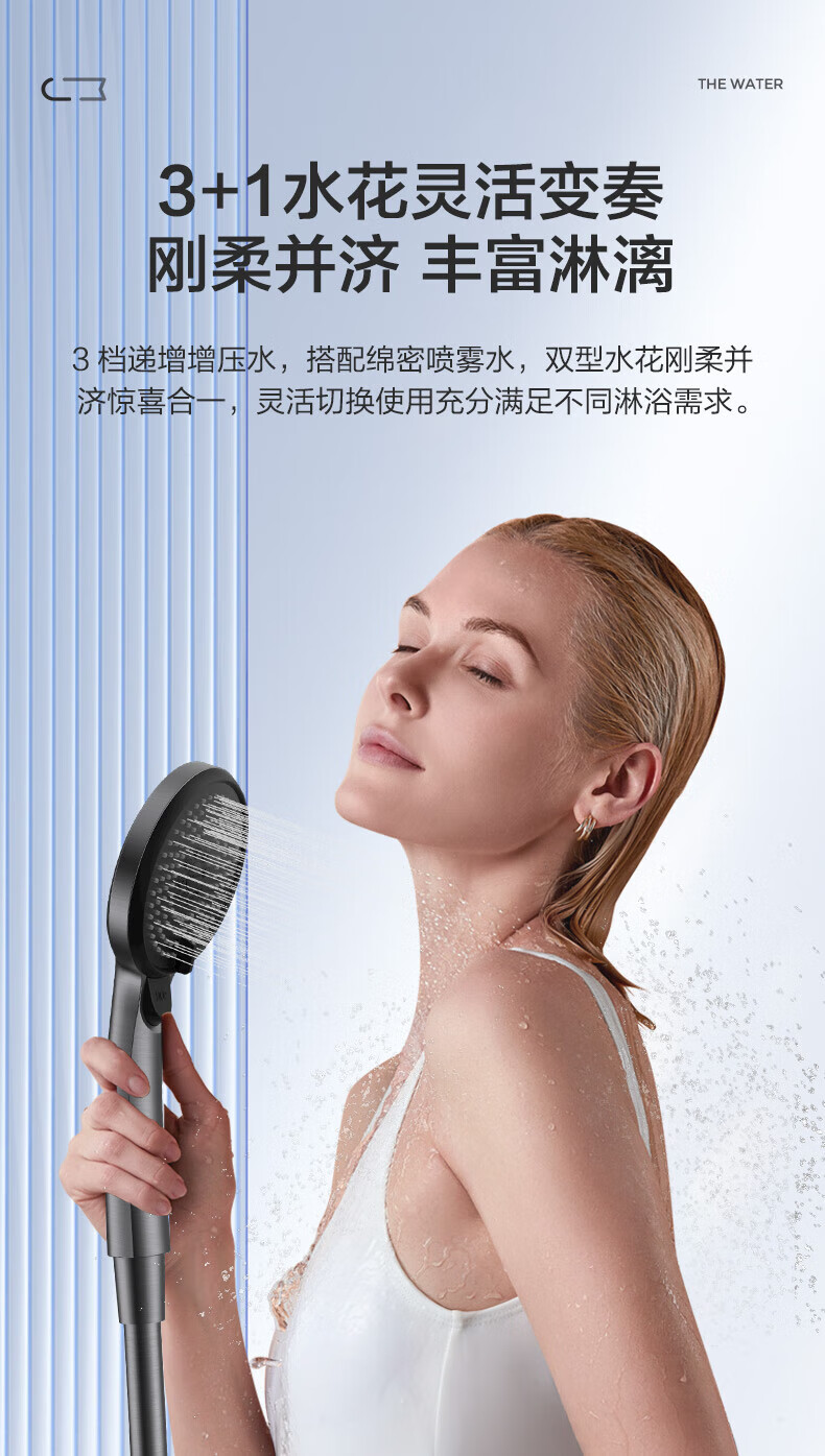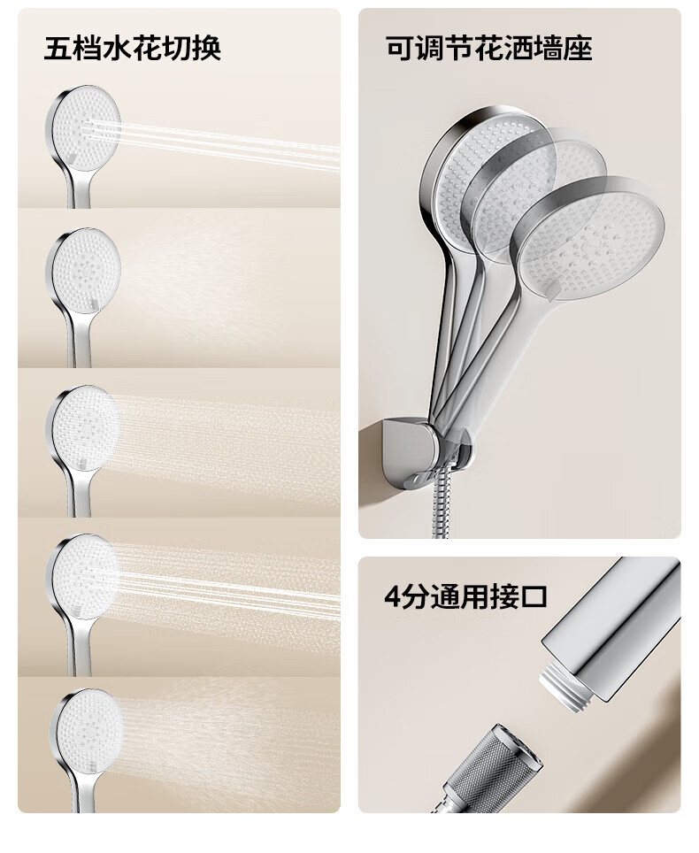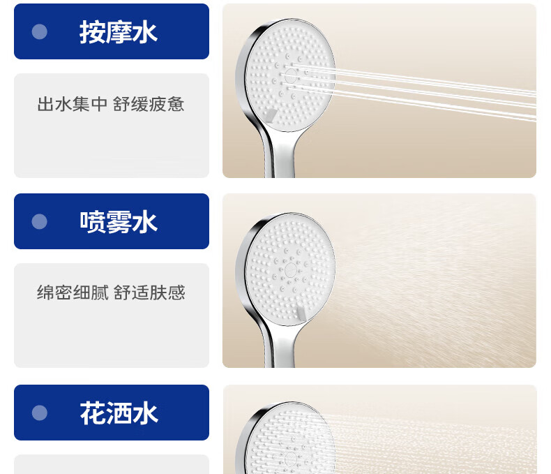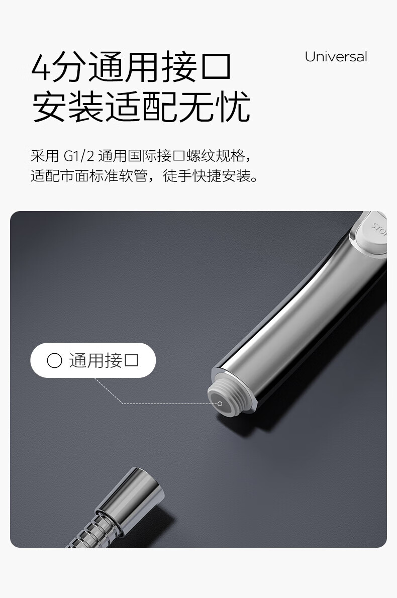 JOMOO ABS plastic shower head 4 points high temperature resistant and non-fading 3-speed boosted one-touch water stop boosted single shower head-S255014-2B01-1