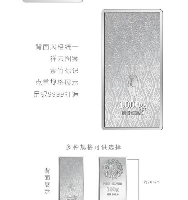 Tianxinyang Plain Bamboo Series Pure Silver 9999 Investment Silver Bar 100g 500g 1000gSpecifications With Certificate Repurchase 1000gSpecifications Gift Box Packaging