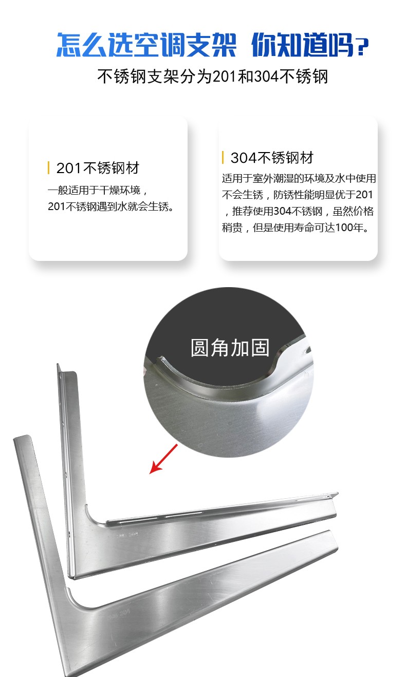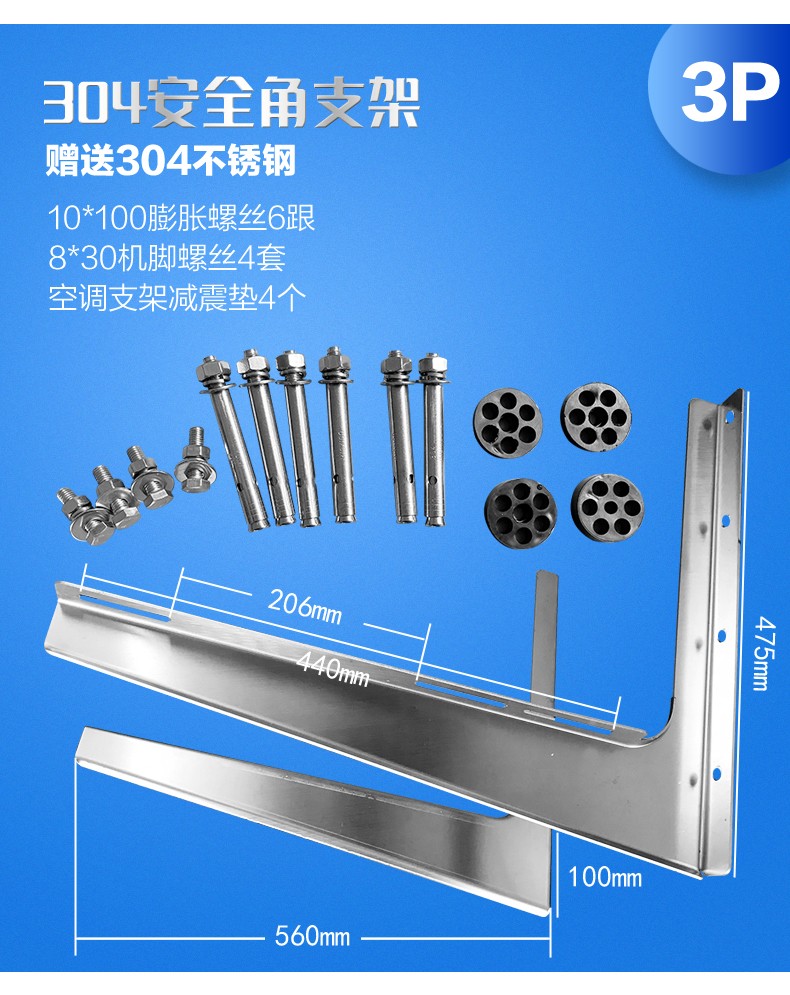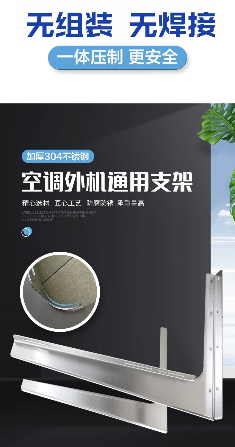 Feng Xiaoyu 304 stainless steel air conditioner outdoor unit bracket large 1 piece 1.5P large 2P 3 piece universal thickened bracket 2.3mm 304 stainless steel rounded corner reinforced air conditioner bracket 1-1.5p