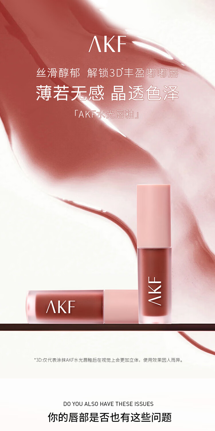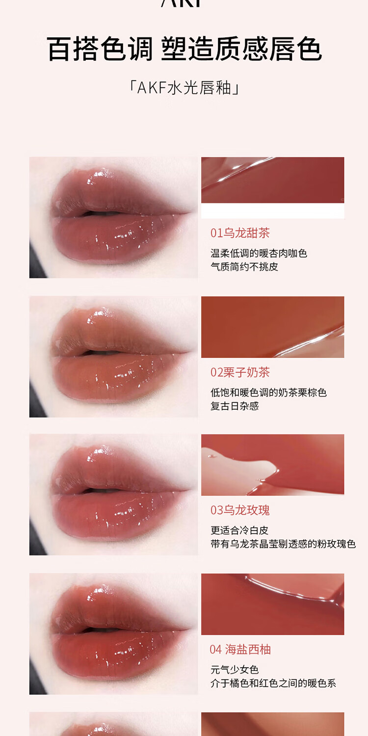 AKF Water Glossy Lip Glaze 03 Oolong Rose 1.3g*1 tube on clearance