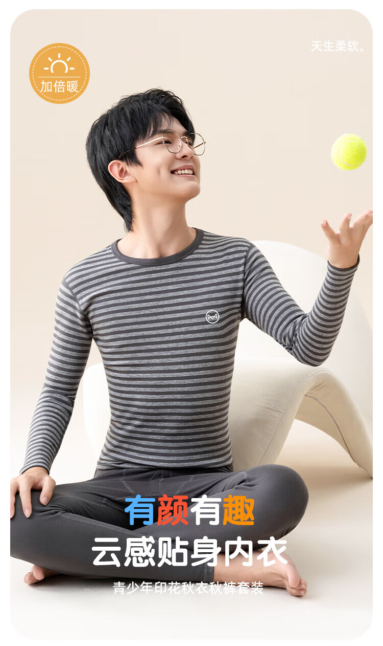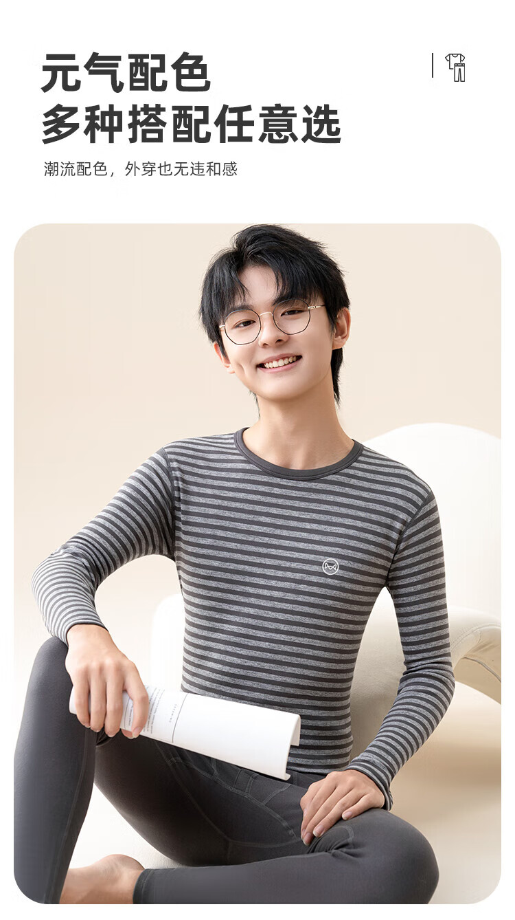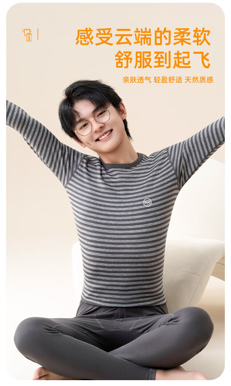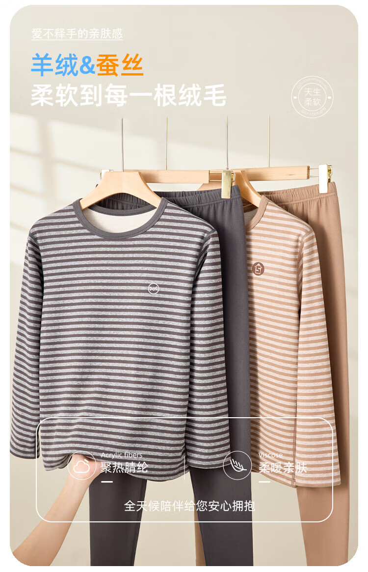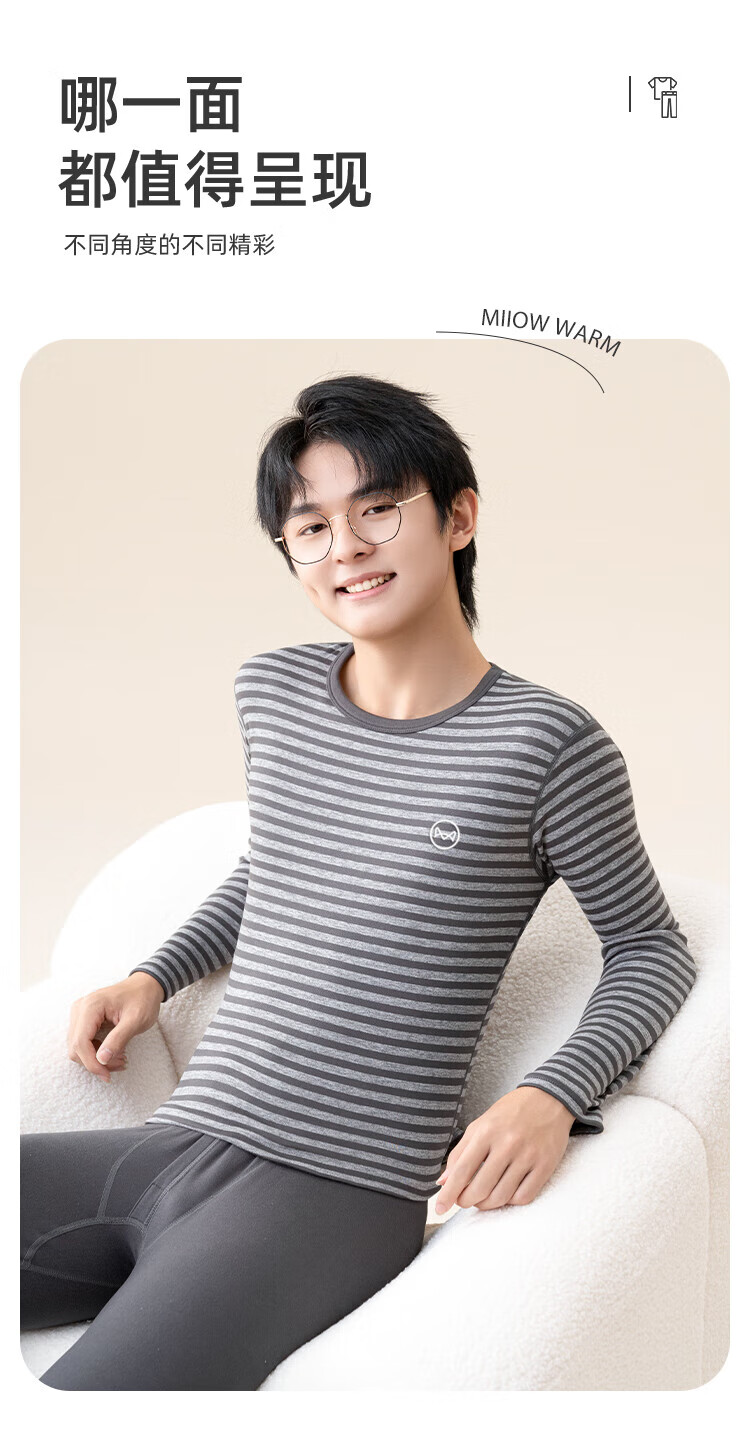 猫人(MiiOW)青少年保暖内衣男套装羊毛羊绒蚕丝德绒发热抗寒初高中生秋衣秋裤
