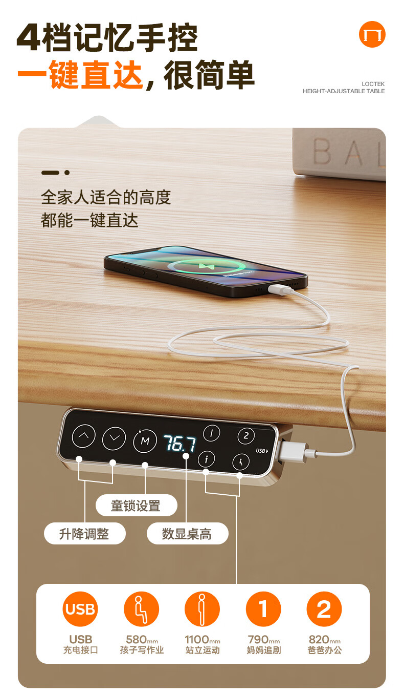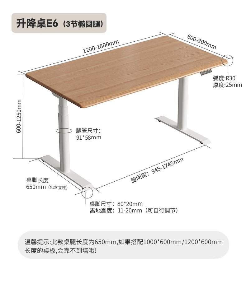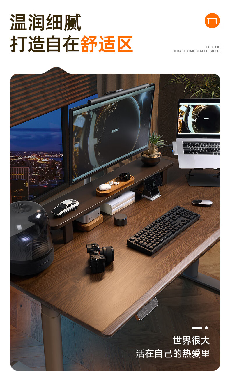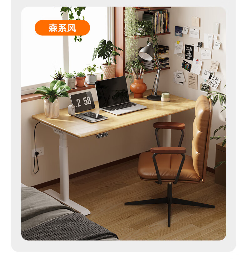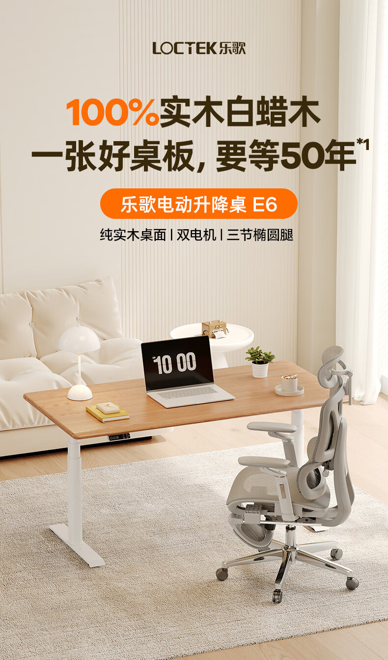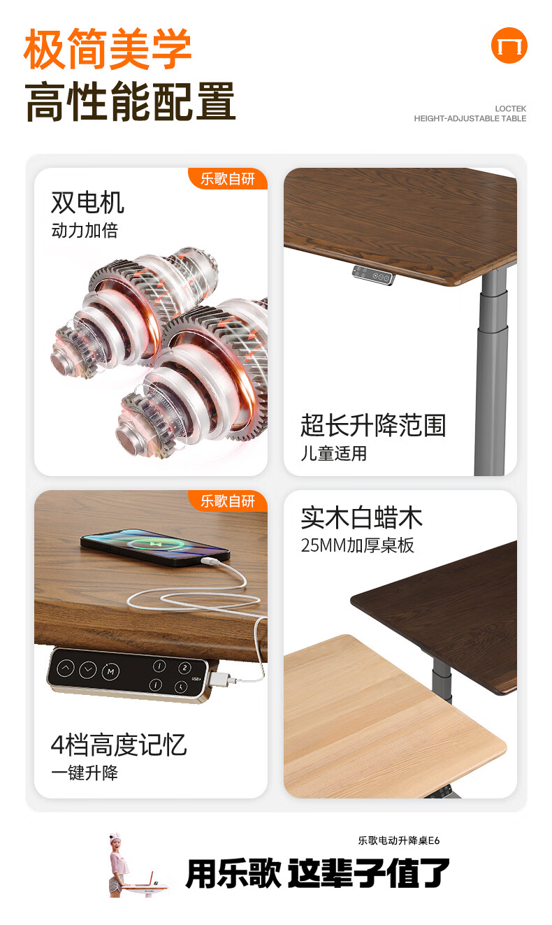Lege Electric Lift Desk Computer Desk Standing Office Study Desk Writing Desk E6/1.4m Solid Wood Ash Wood Color