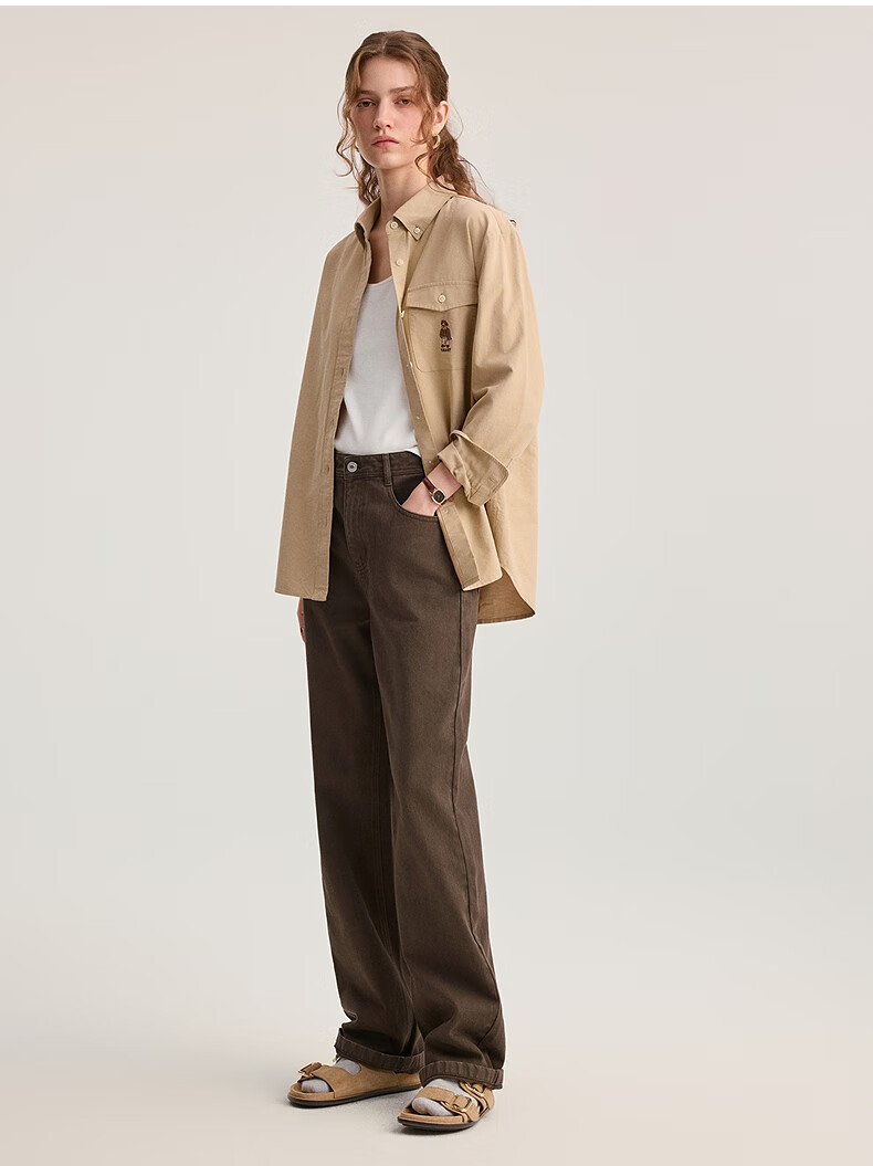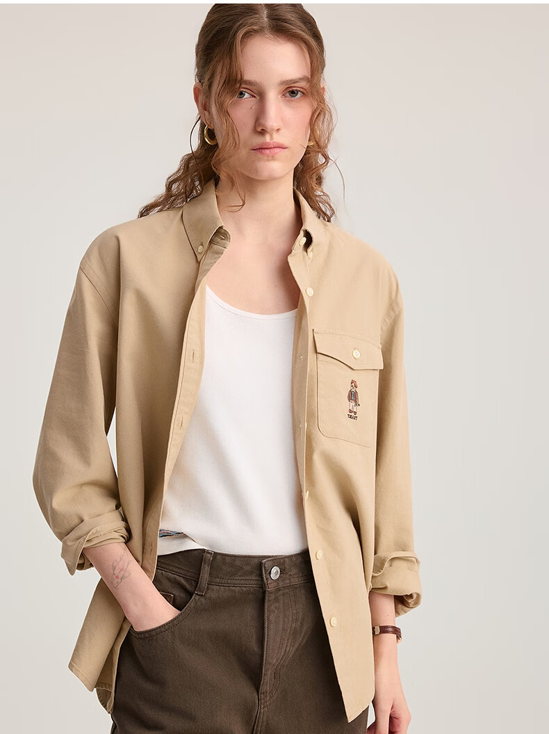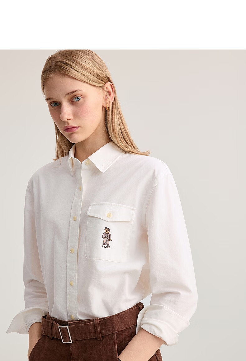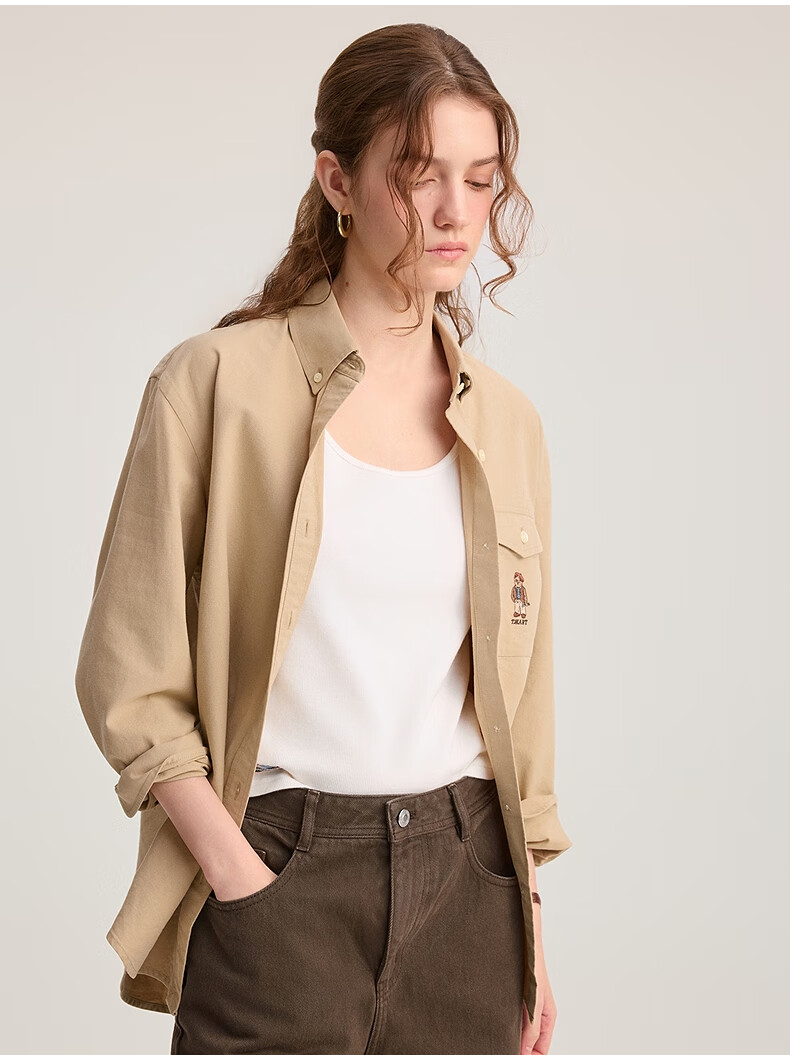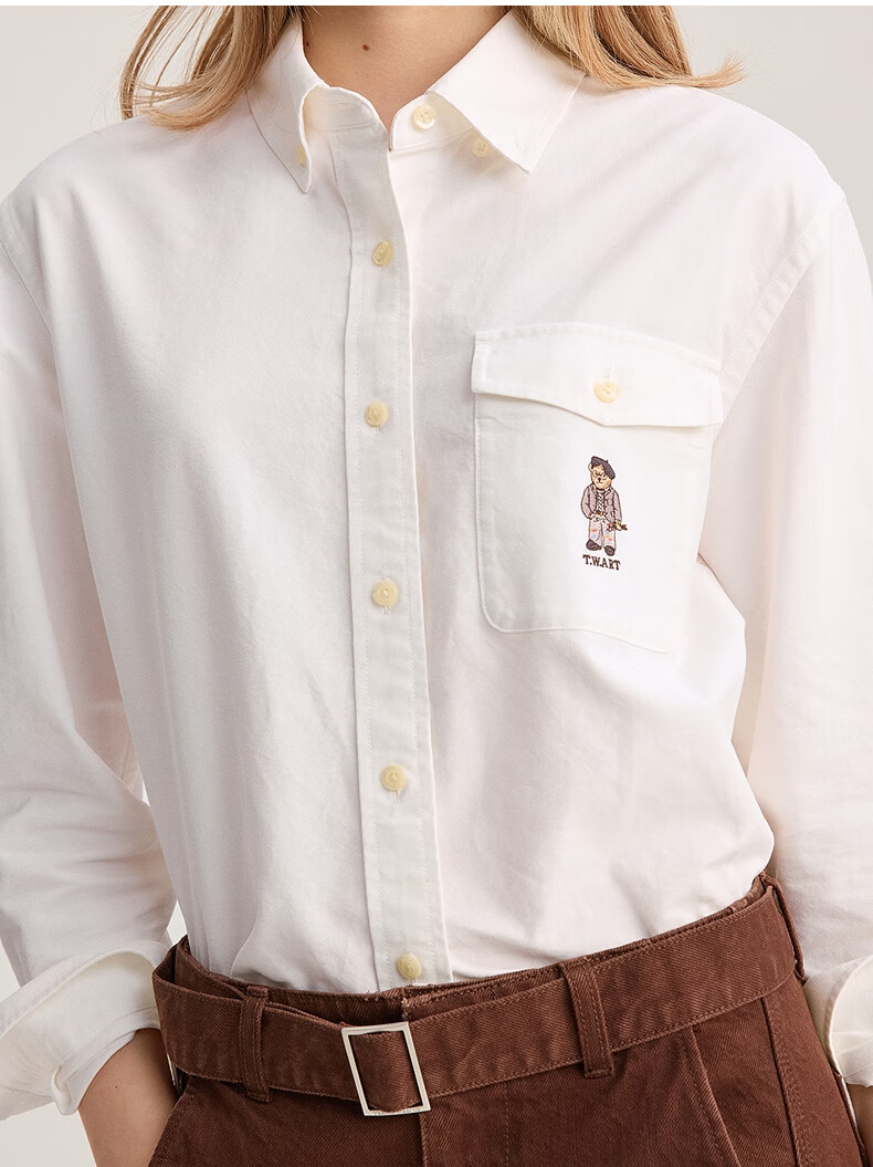 Teenie Weenie Bear Women's Shirt 2025 Autumn New Simple and Elegant Fashion Embroidered Long Sleeve Shirt
