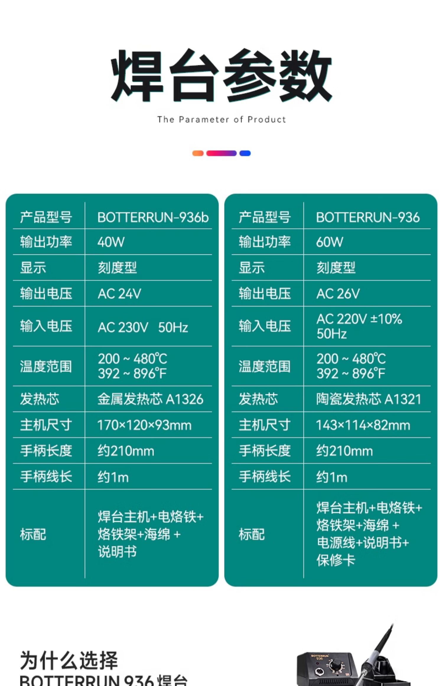A-BF extraordinary BOTTERRUN936B electric soldering iron adjustable constant temperature soldering station soldering gun household repair welding tool 40W