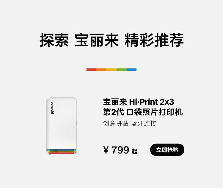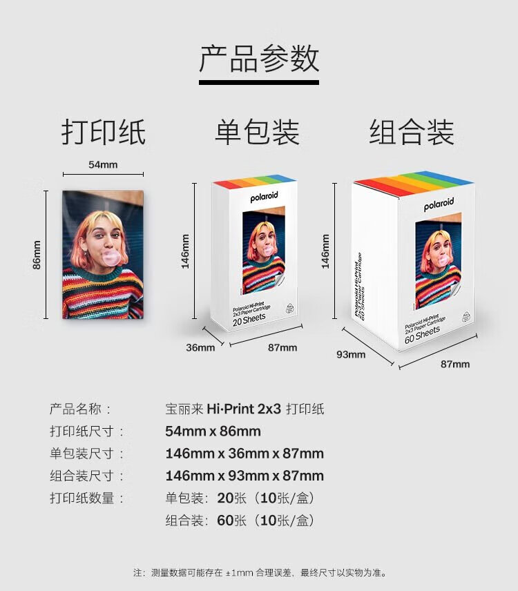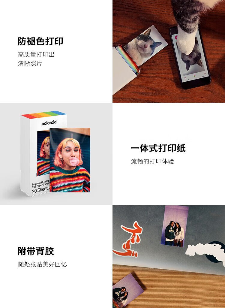 Polaroid Hi Print 2 3 printing paper photo paper cartridge ink cartridge portable color photo with adhesive single package (including 20 sheets)