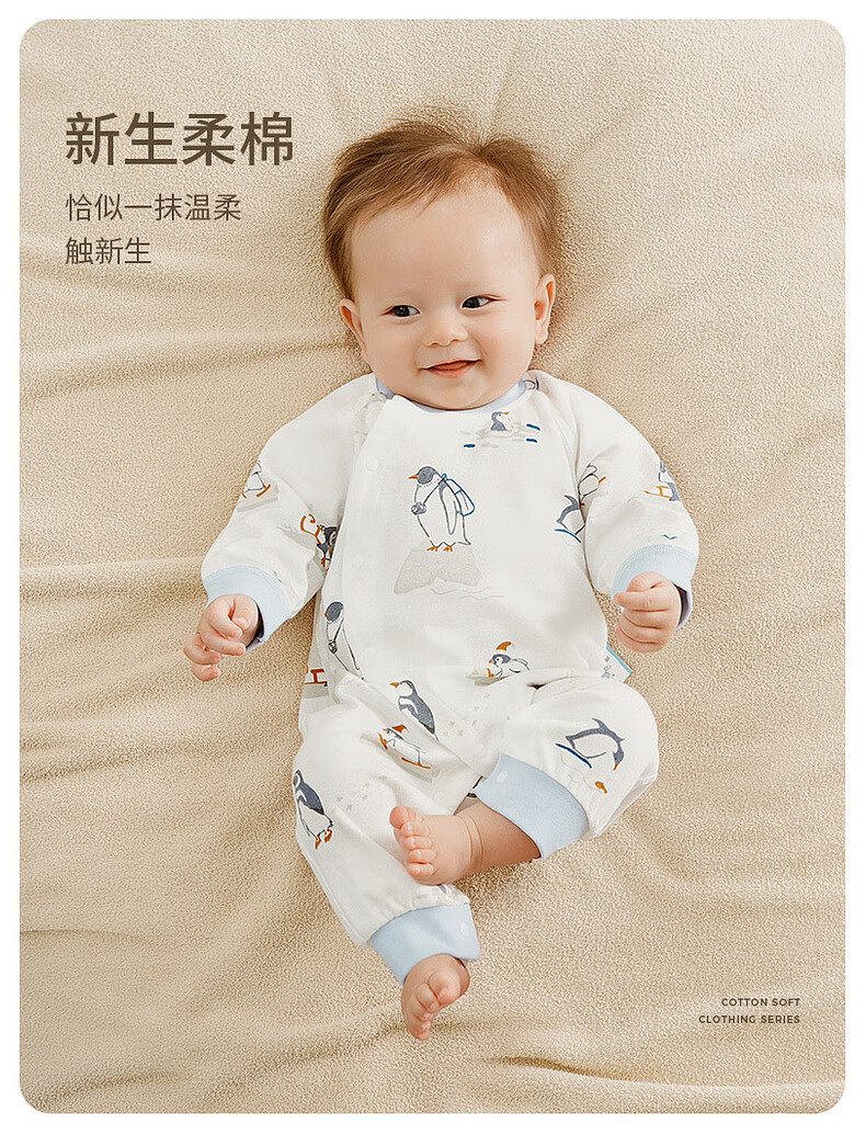 Tongtai (TONGTAI) baby jumpsuit spring and autumn pure cotton baby long-sleeved harem children's home clothes underwear romper green 73cm