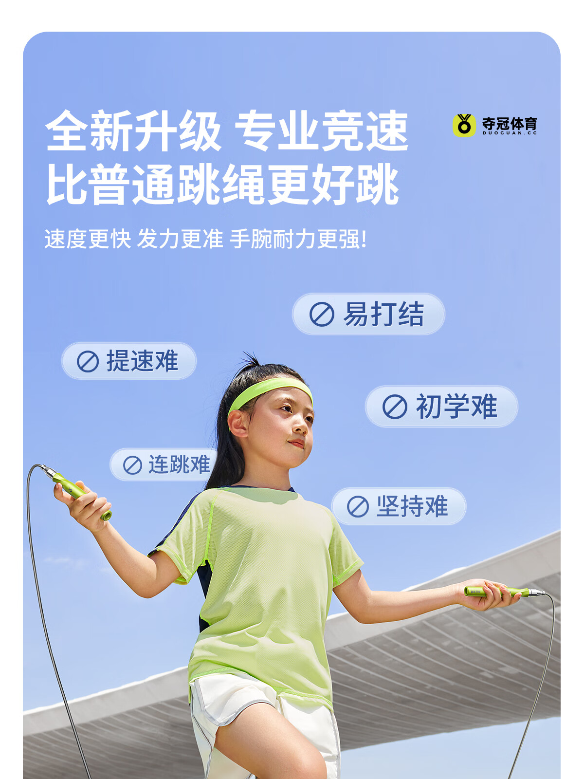 Win the championship (DUOGUAN) Children's speed skipping rope, special steel wire skipping rope for primary school students, special unknotted competition jump rope for primary school students