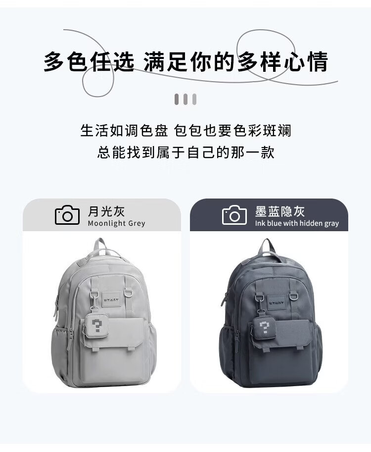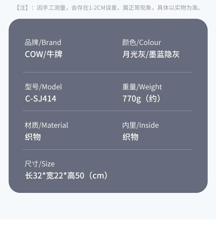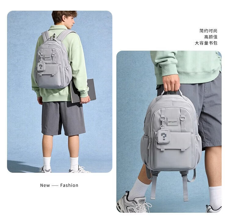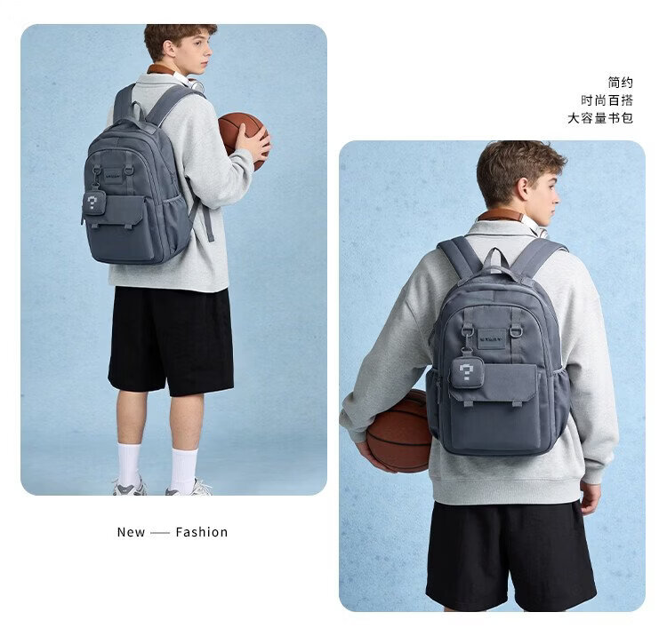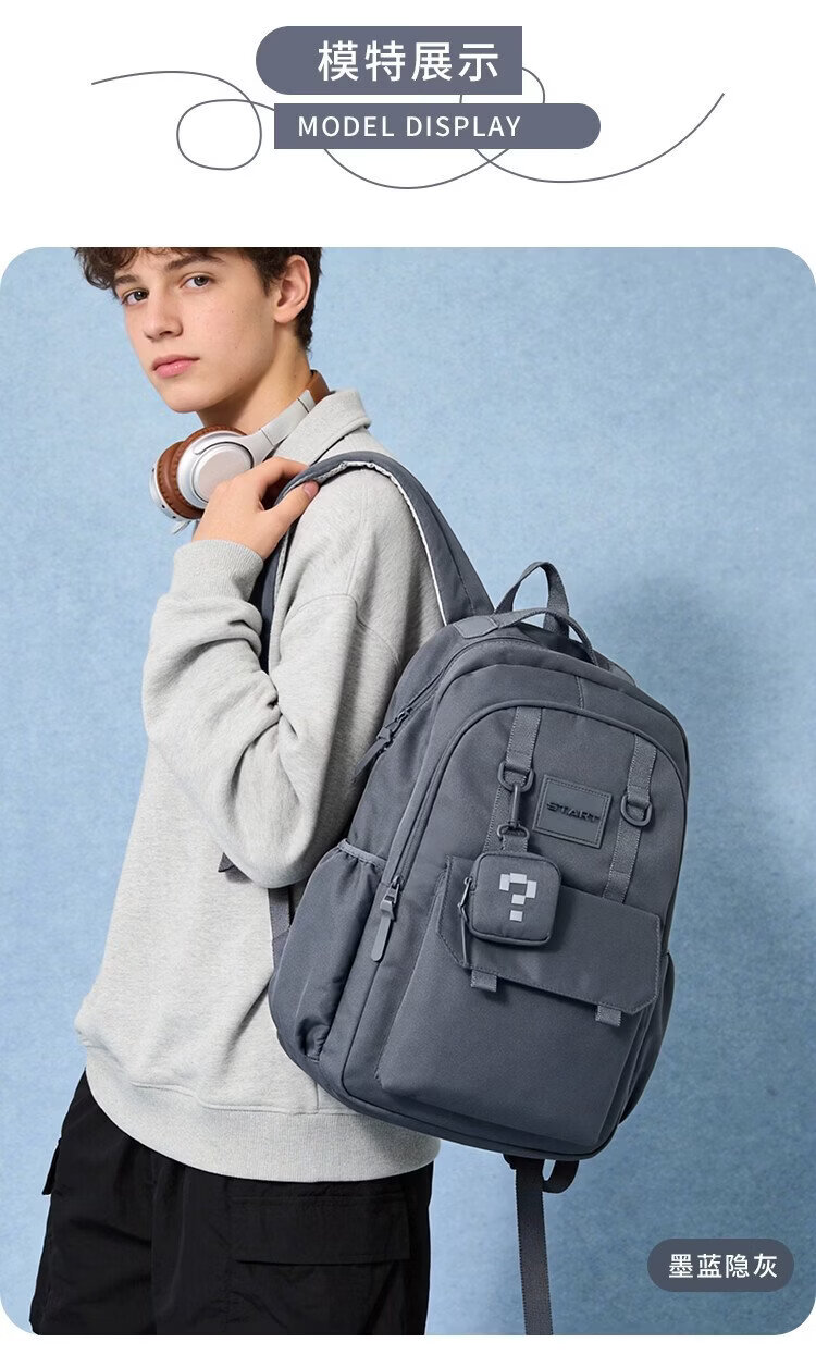 COW backpack men's junior high school and high school college student bag large capacity business commuter backpack light casual bag ink blue gray