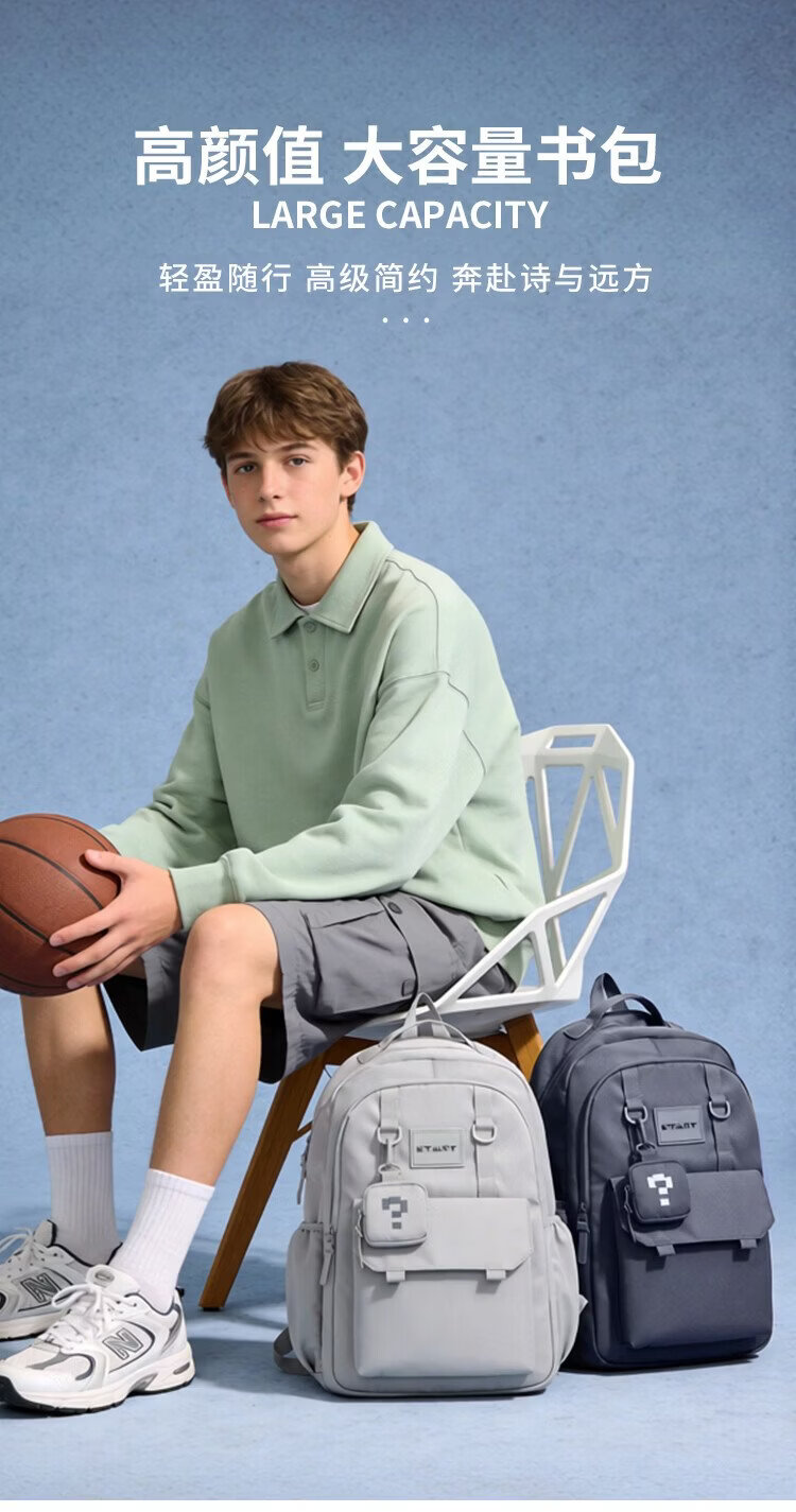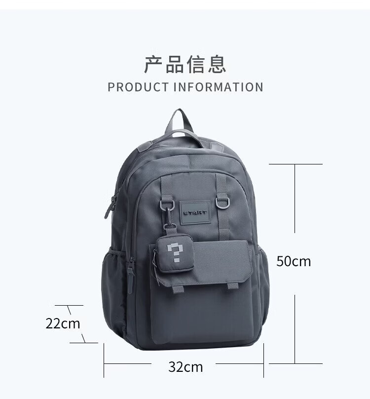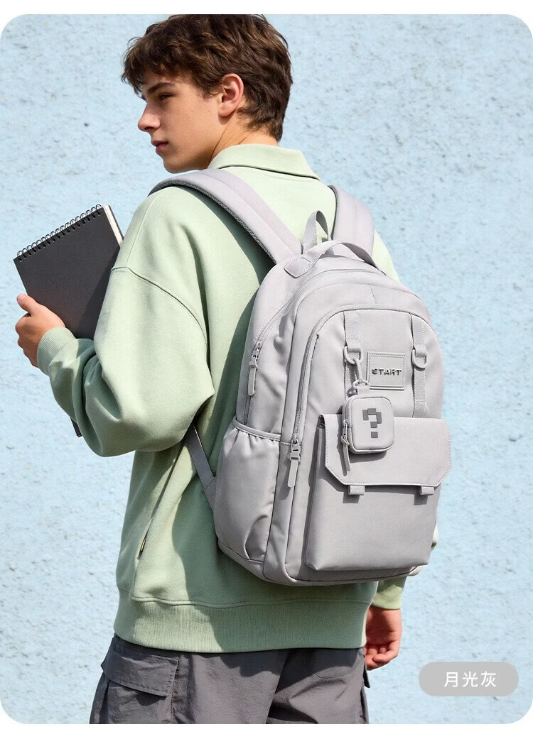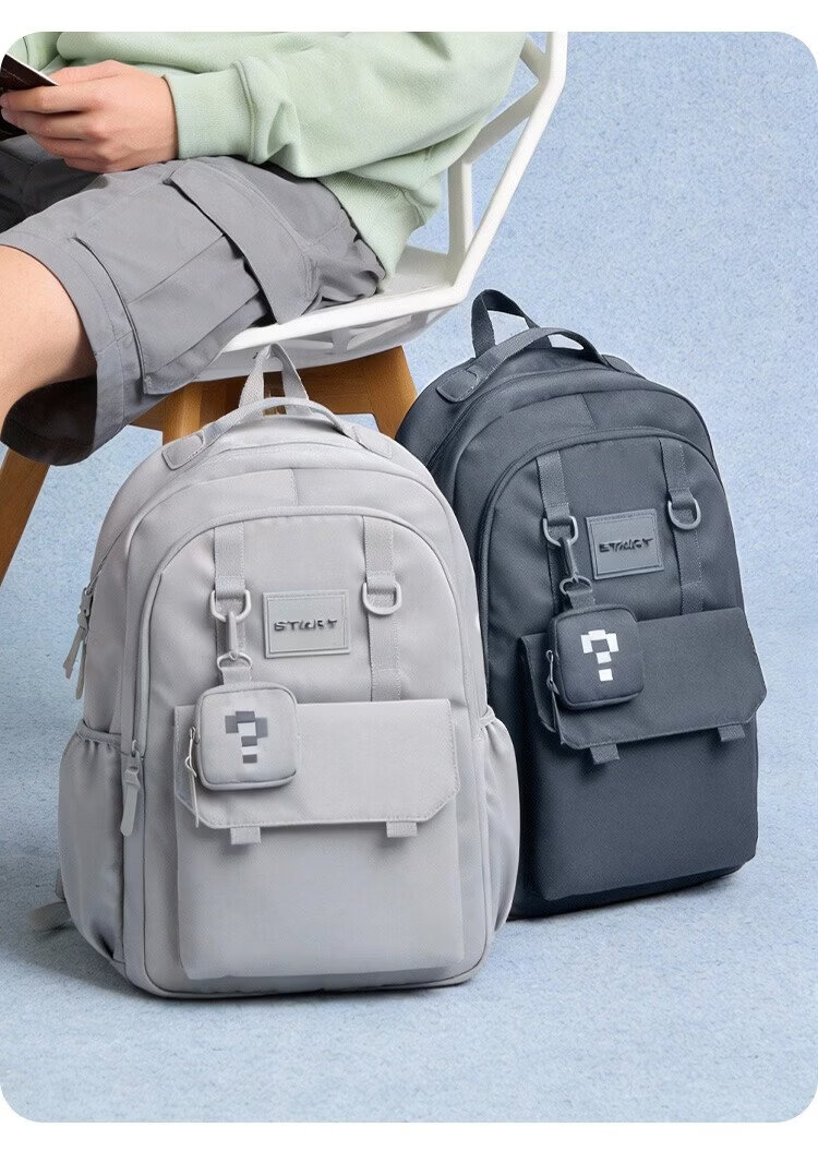 COW backpack men's junior high school and high school college student bag large capacity business commuter backpack light casual bag ink blue gray