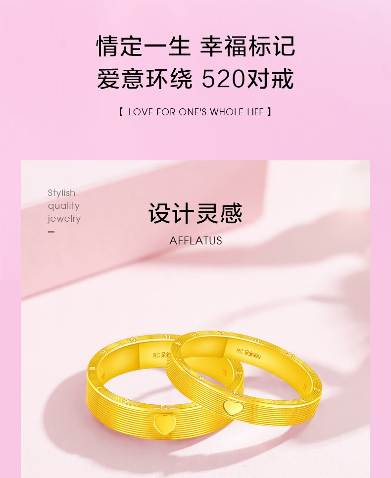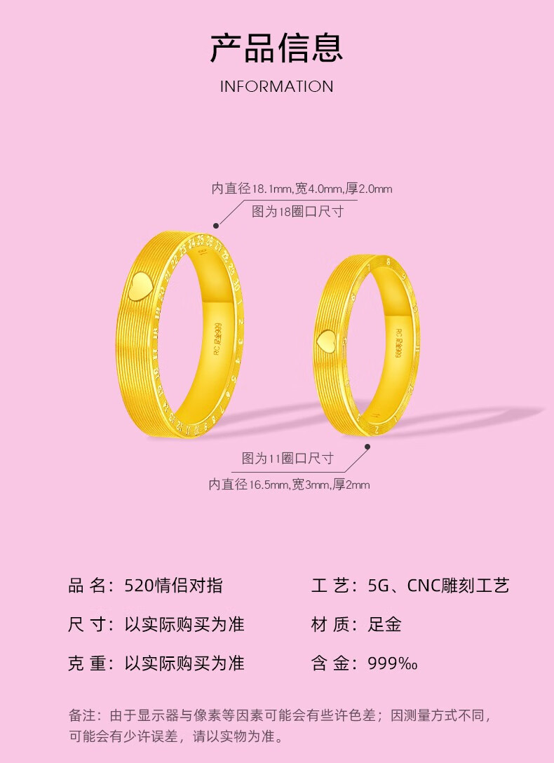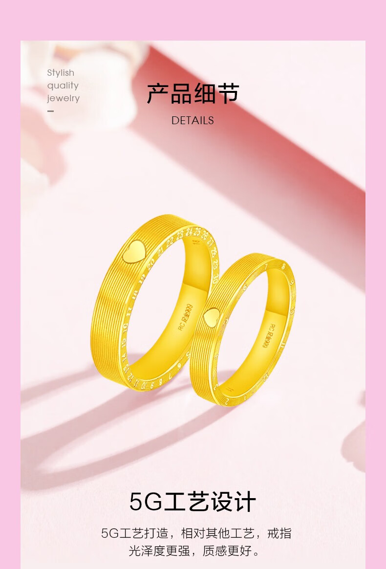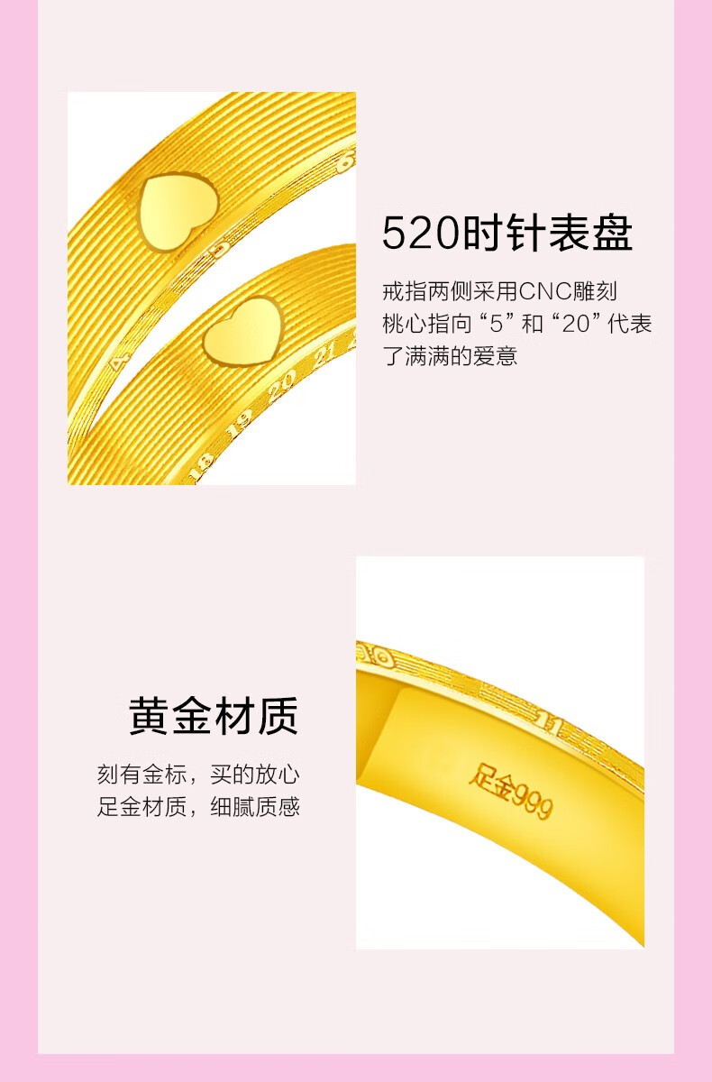 Zhongxin Jewelry Gold 520 Ring Men's and Women's 999 Pure Gold Couple Ring Gold Ring Ring Ring Confession Gift Gold Jewelry Spot 2.41g (No. 13)