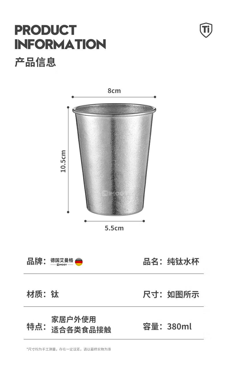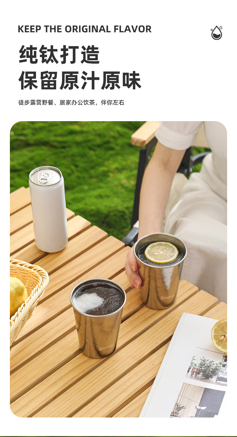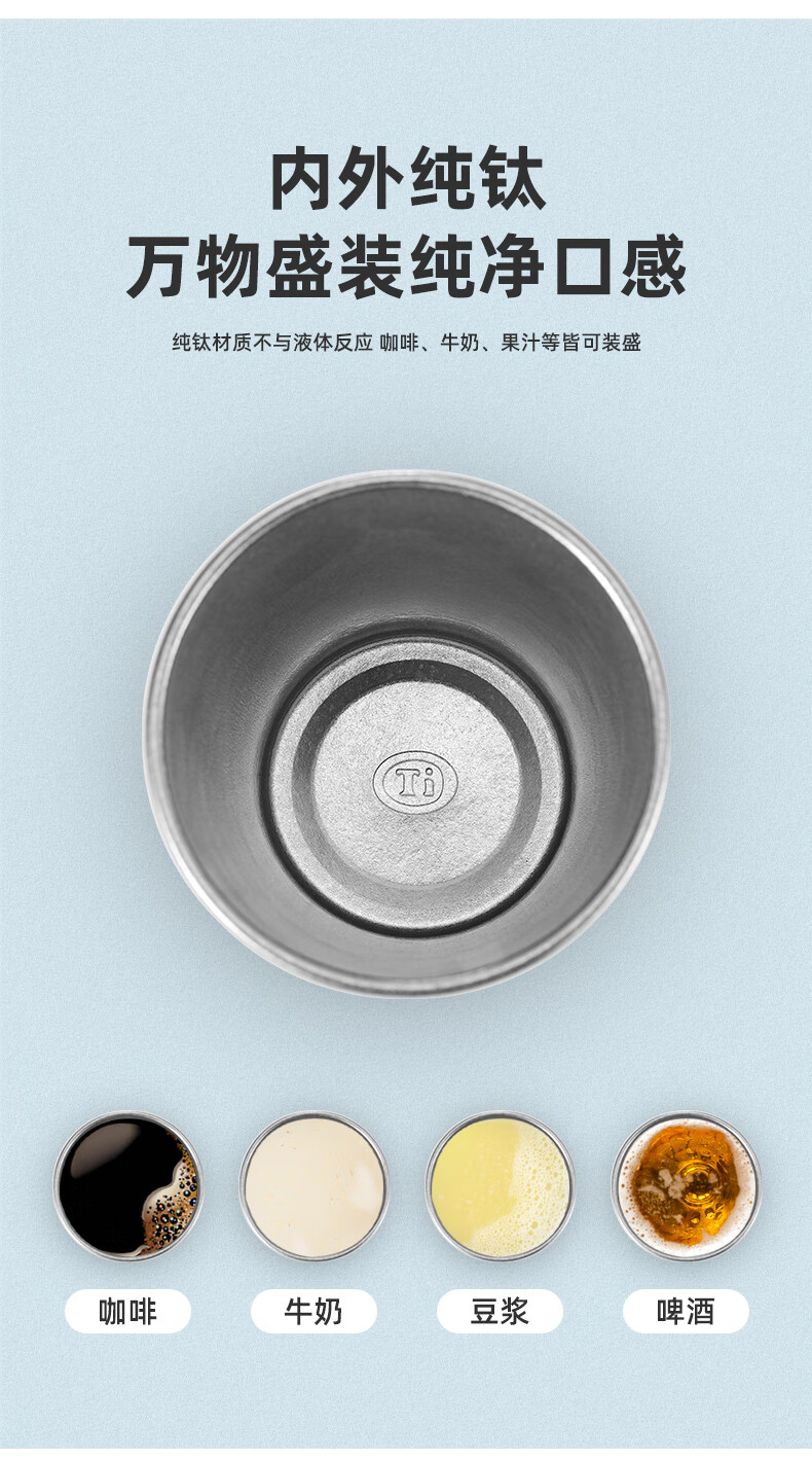 Amenger German pure titanium beer cup outdoor camping water cup juice cup single layer portable cup anti-fall cold drink cup titanium cup