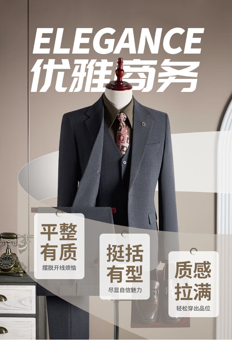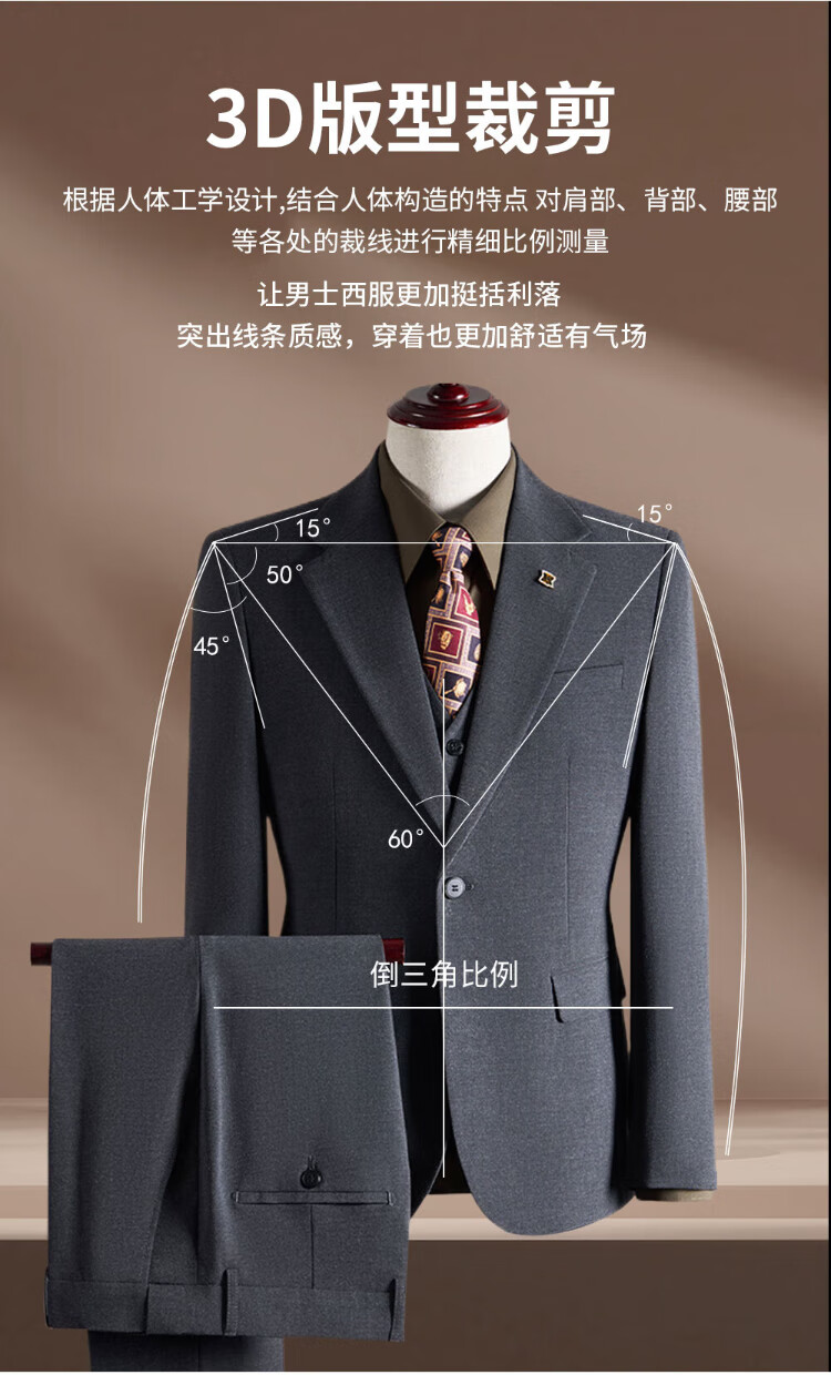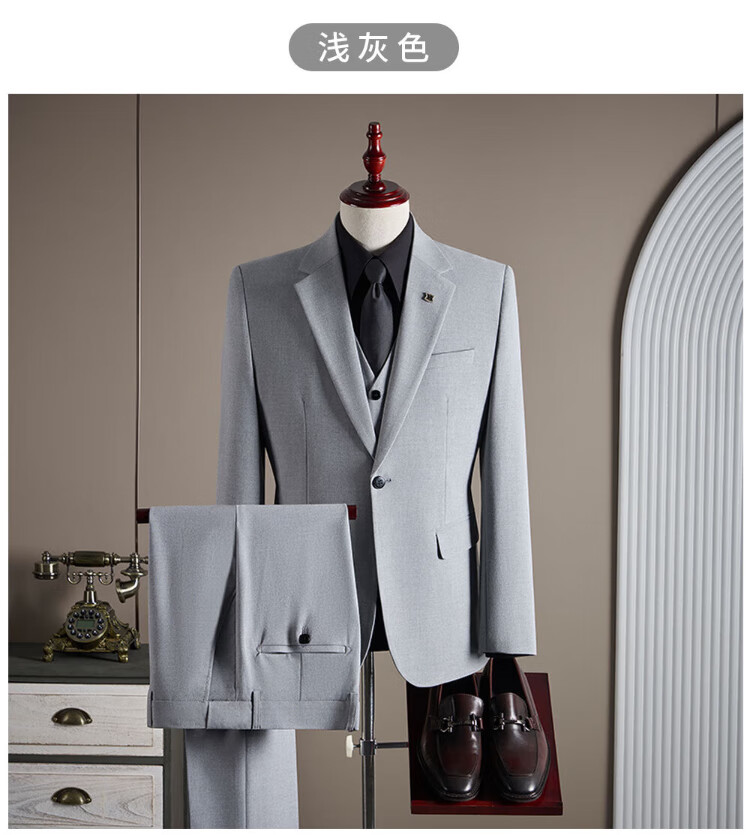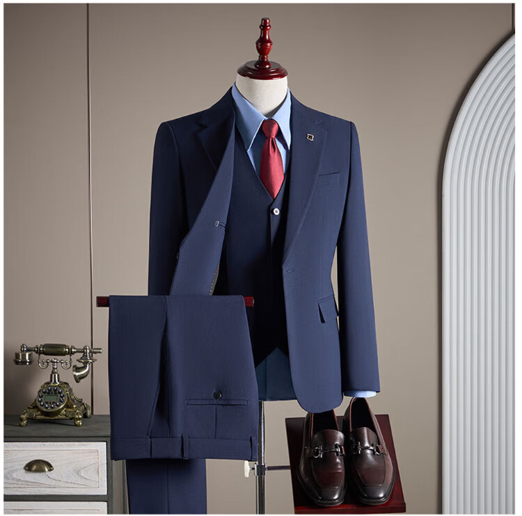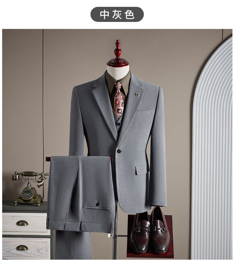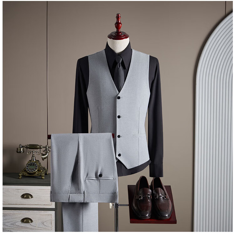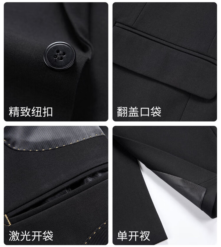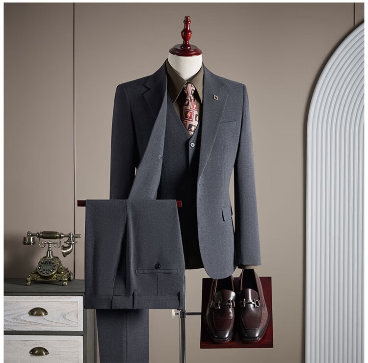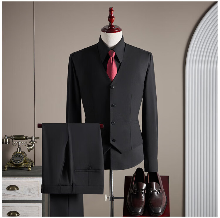 ROMON suit + vest + trousers suit suit men's business suit men's professional formal jacket black XL