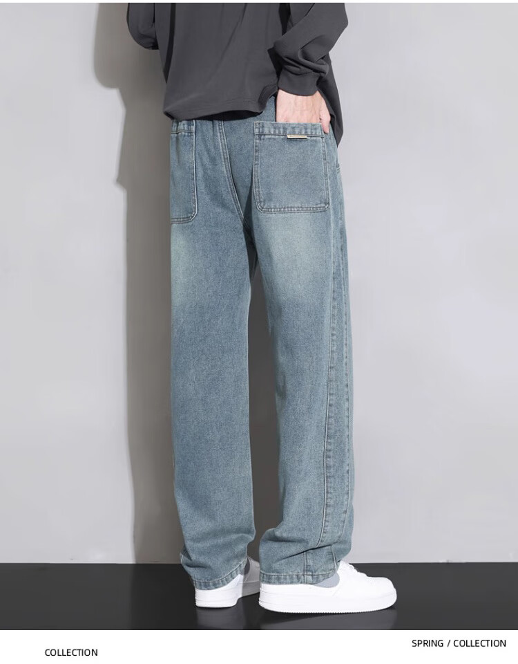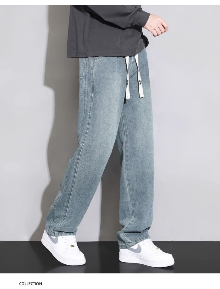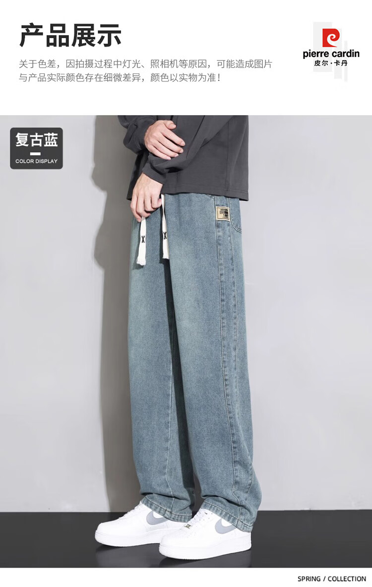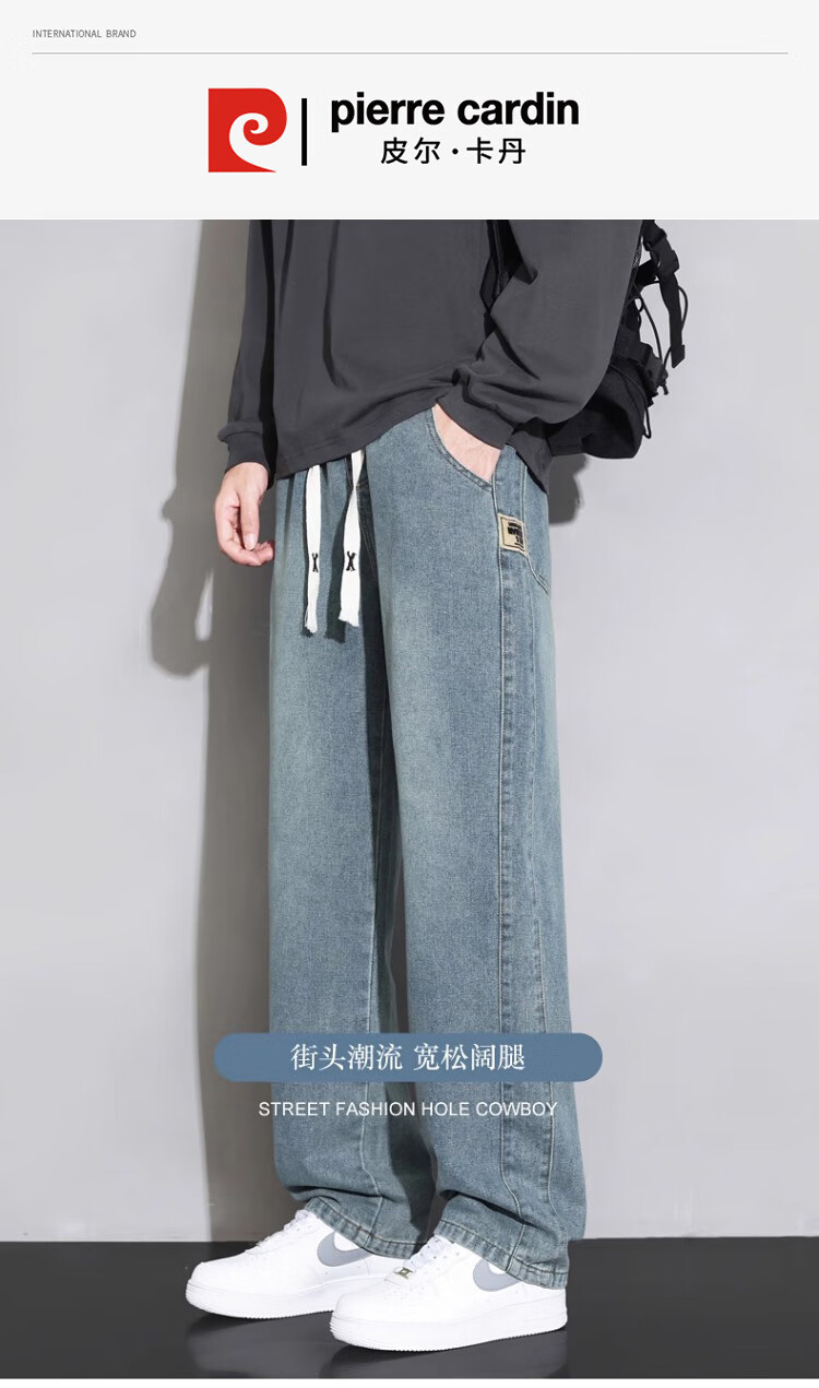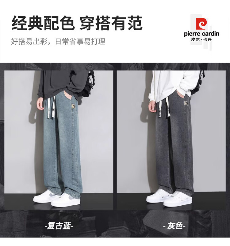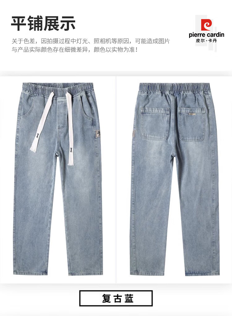 Pierre Cardin Straight Jeans Men's Autumn and Winter Loose Casual Pants Men's Wide-Leg Elastic Waist Pants Men's Retro Blue XL
