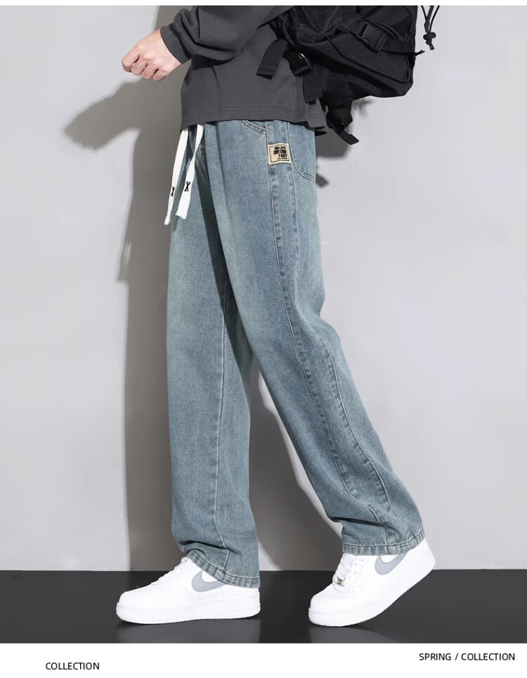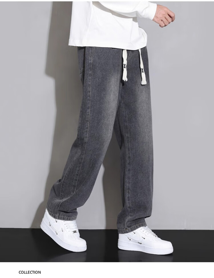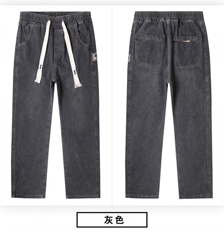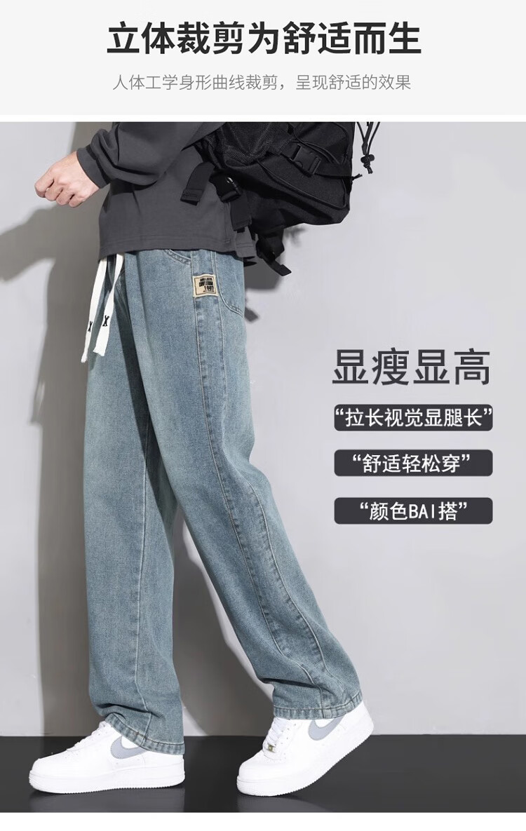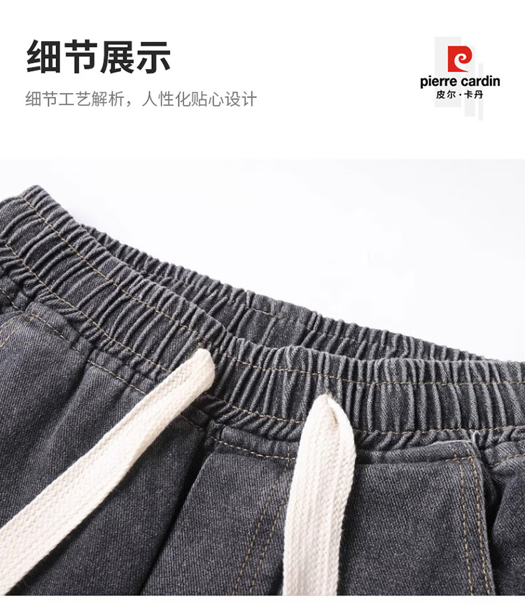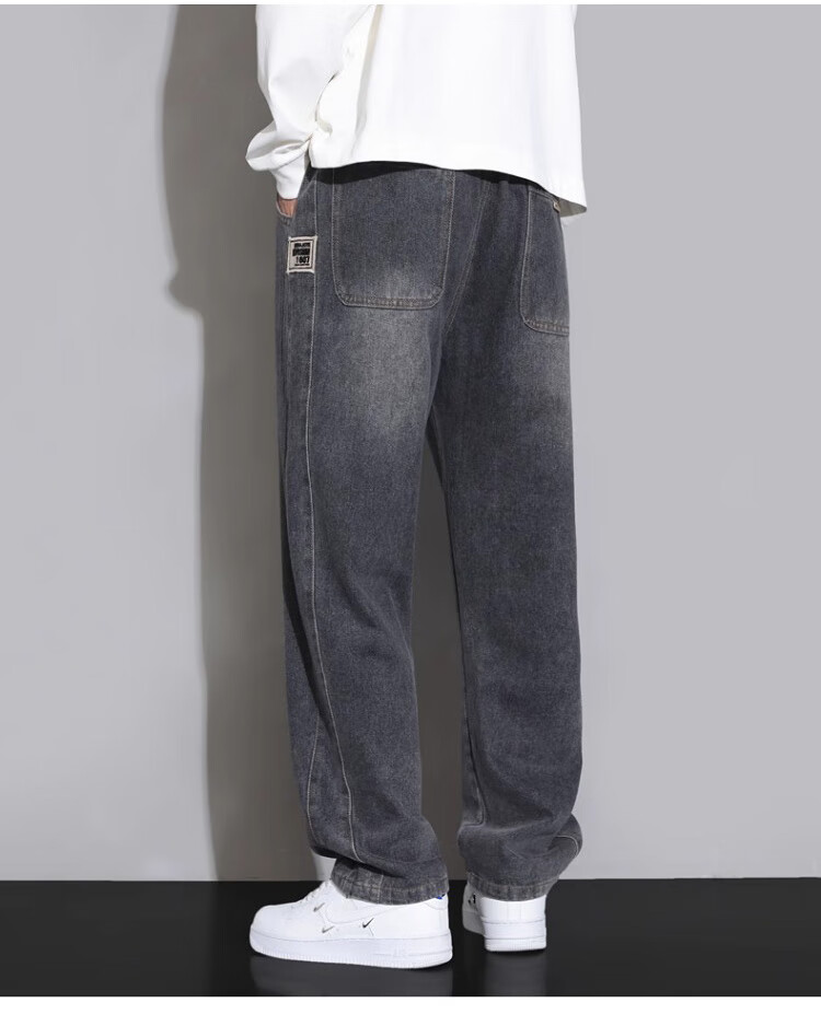 Pierre Cardin Straight Jeans Men's Autumn and Winter Loose Casual Pants Men's Wide-Leg Elastic Waist Pants Men's Retro Blue XL