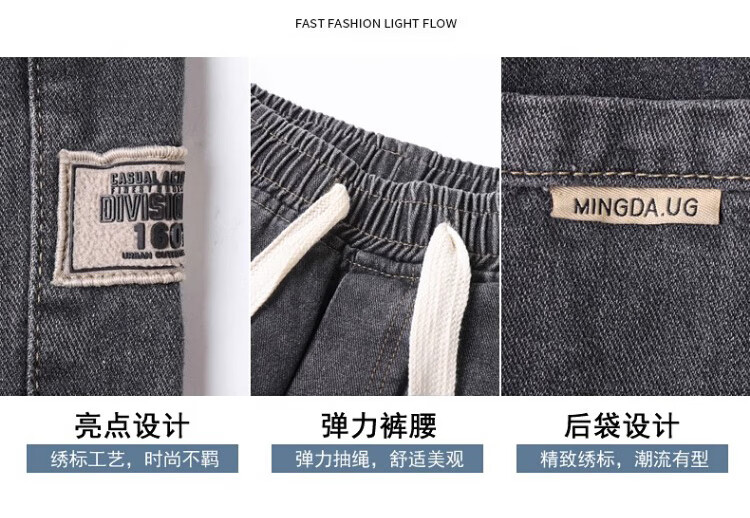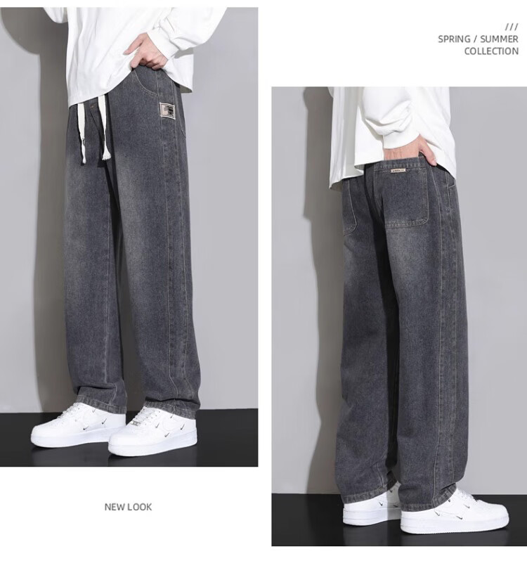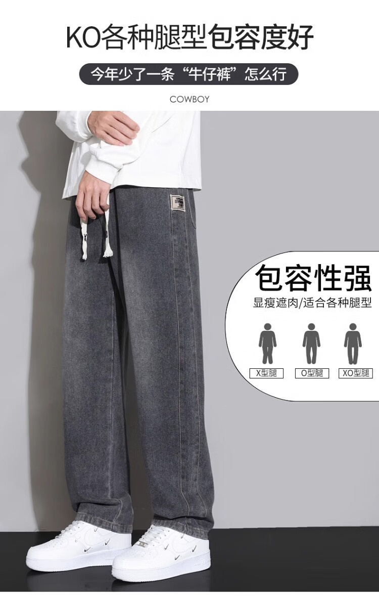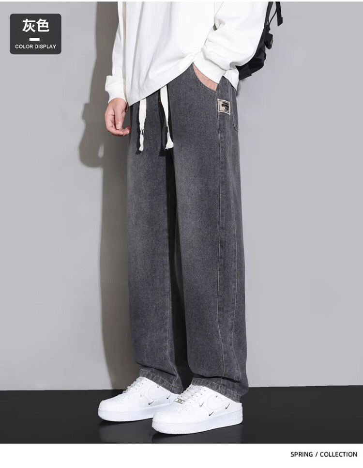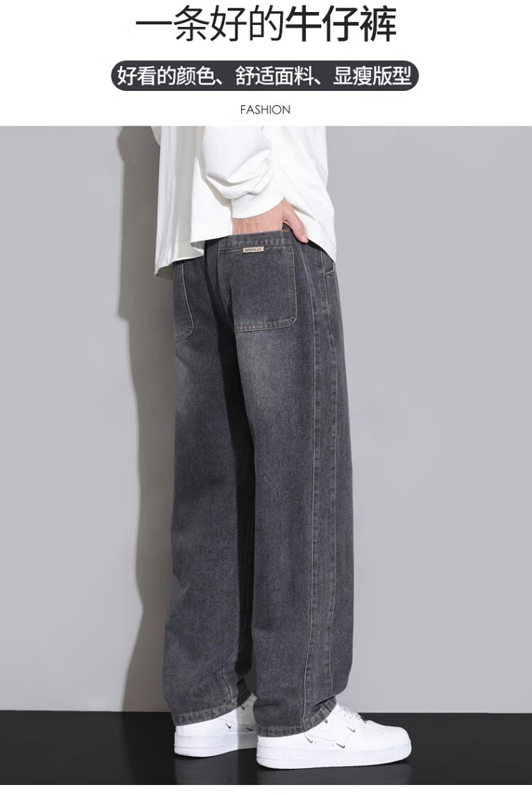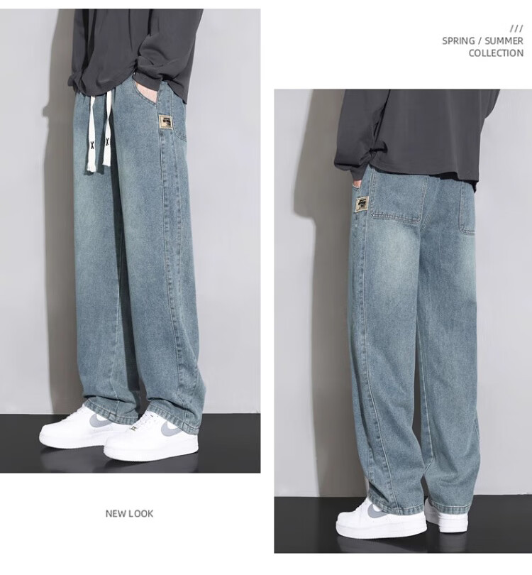 Pierre Cardin Straight Jeans Men's Autumn and Winter Loose Casual Pants Men's Wide-Leg Elastic Waist Pants Men's Retro Blue XL