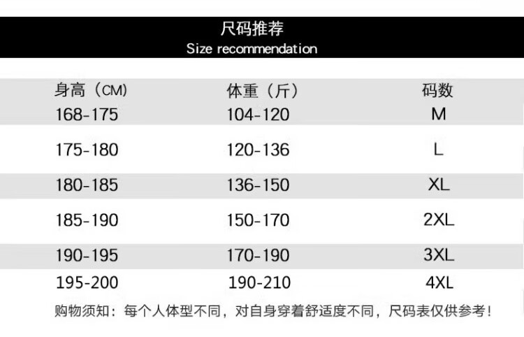 China (cm) 165 / 88-90 170 / 96-98 175 / 108-110 180 / 118-122 185 / 126-130