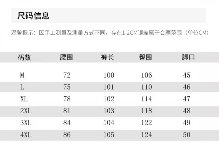 Outseam (cm) 99 cm 101.5 cm 104 cm 106.5 cm 109 cm