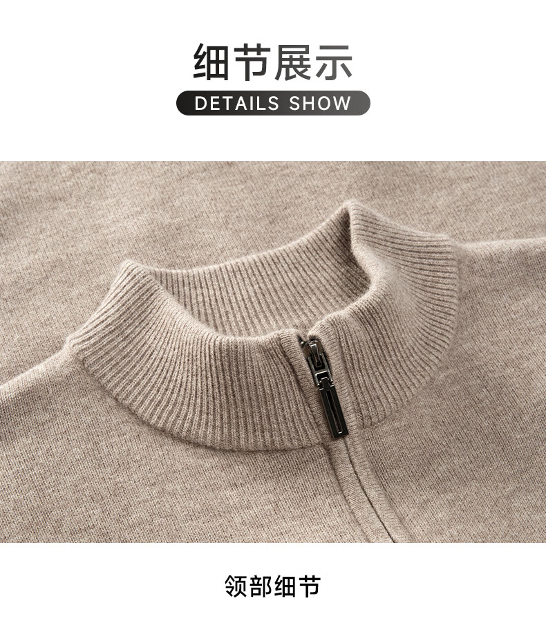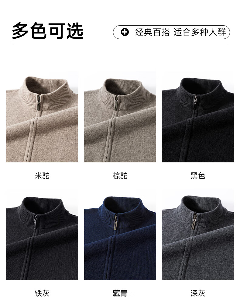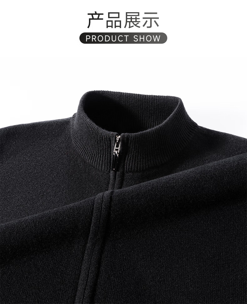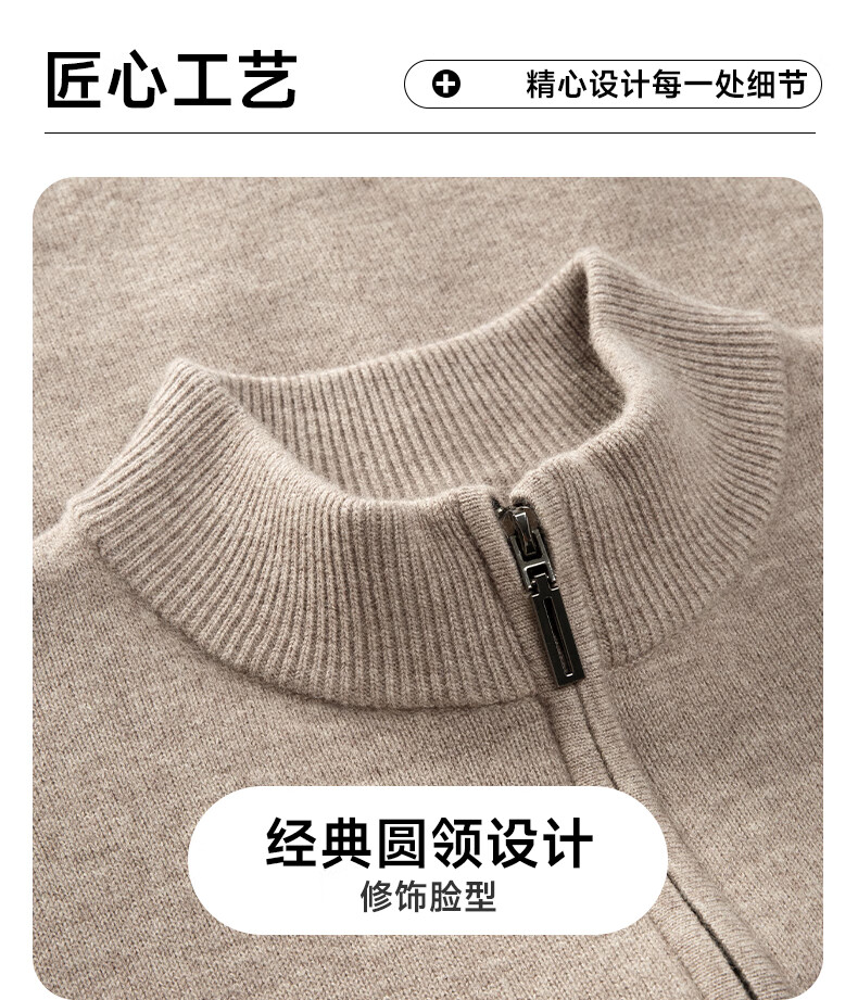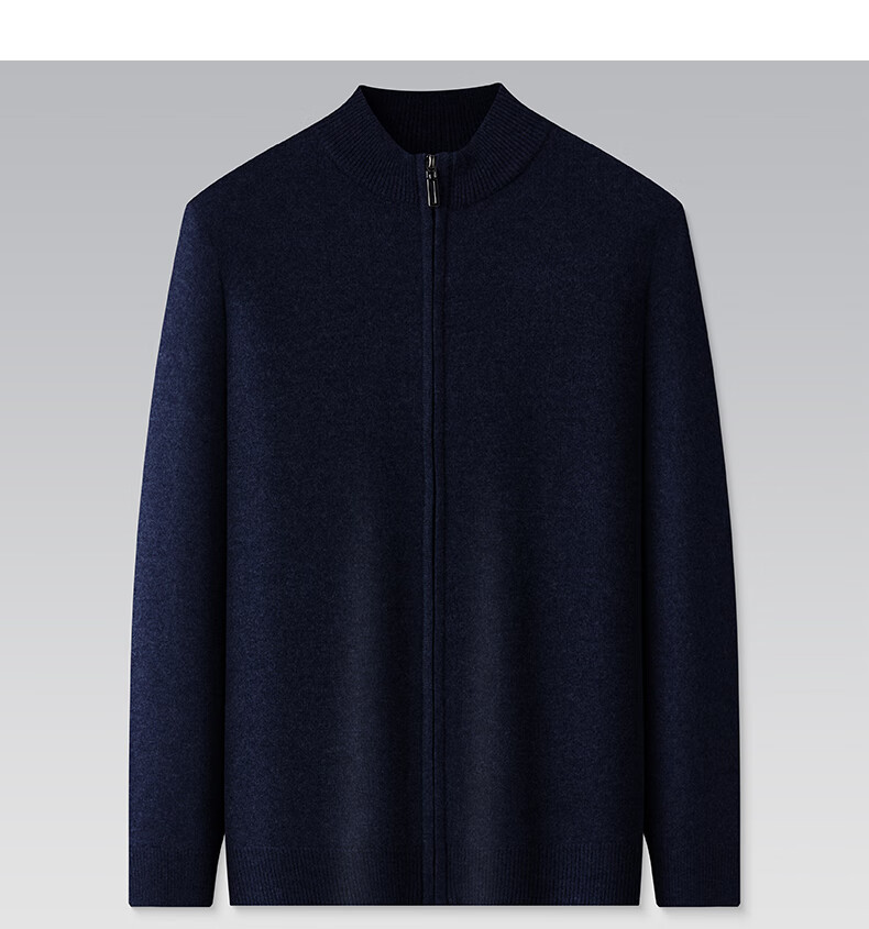 罗蒙100%纯羊毛衫男士【加厚款】秋冬季保暖拉链针织开衫毛衣外套男装