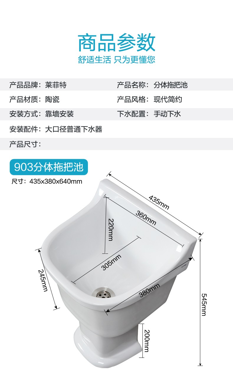 Lefit (lfte) ceramic column mop pool household split washing mop sink medium and large courtyard mop pool public washing floor mop 903 tank + 20 columns + water delivery to home