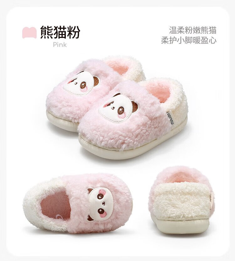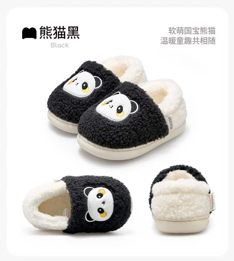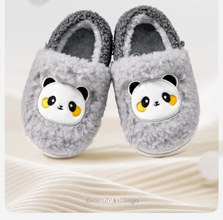 Shepherd children's cotton slippers winter warm indoor shoes cute cartoon panda series baby home shoes biscuit coffee 150
