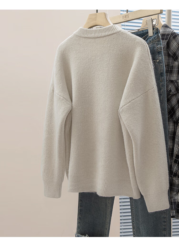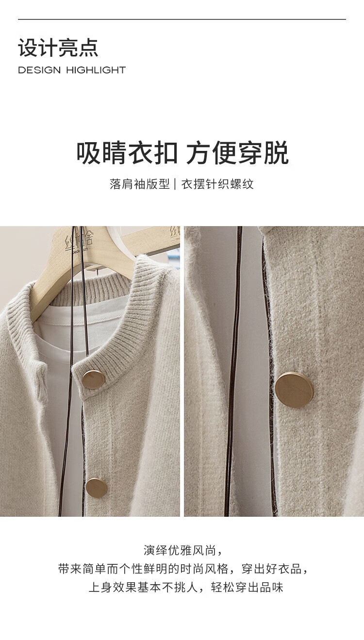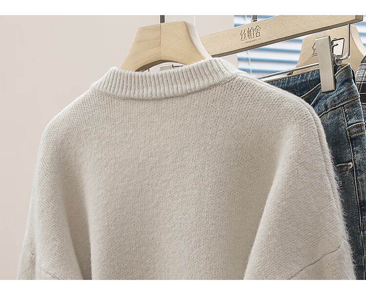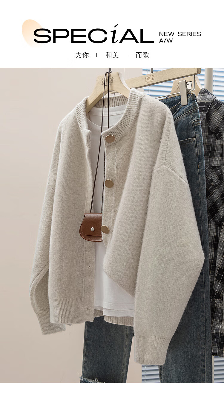 Sibaishe Single-breasted Knitted Cardigan Women's 2026 Spring New Round Neck Loose Warm Sweater Jacket