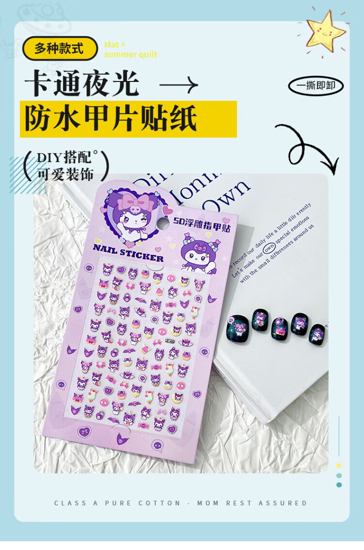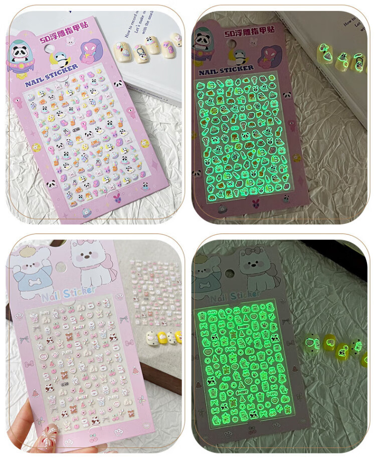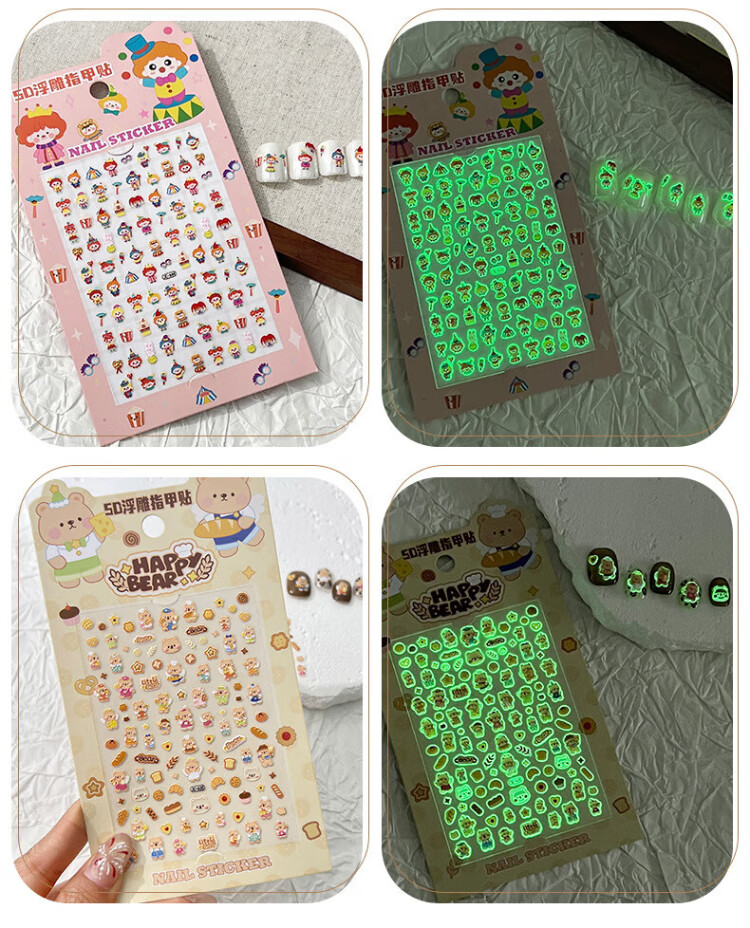 Jucai 5D three-dimensional luminous relief children's stickers girl crystal manicure cute cartoon little nose sticker diy hand account computer mobile phone shell beanie ugly back sticker 3-6 years old decoration