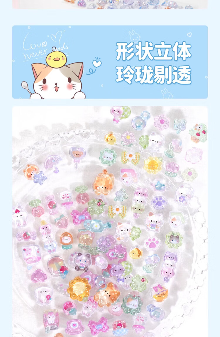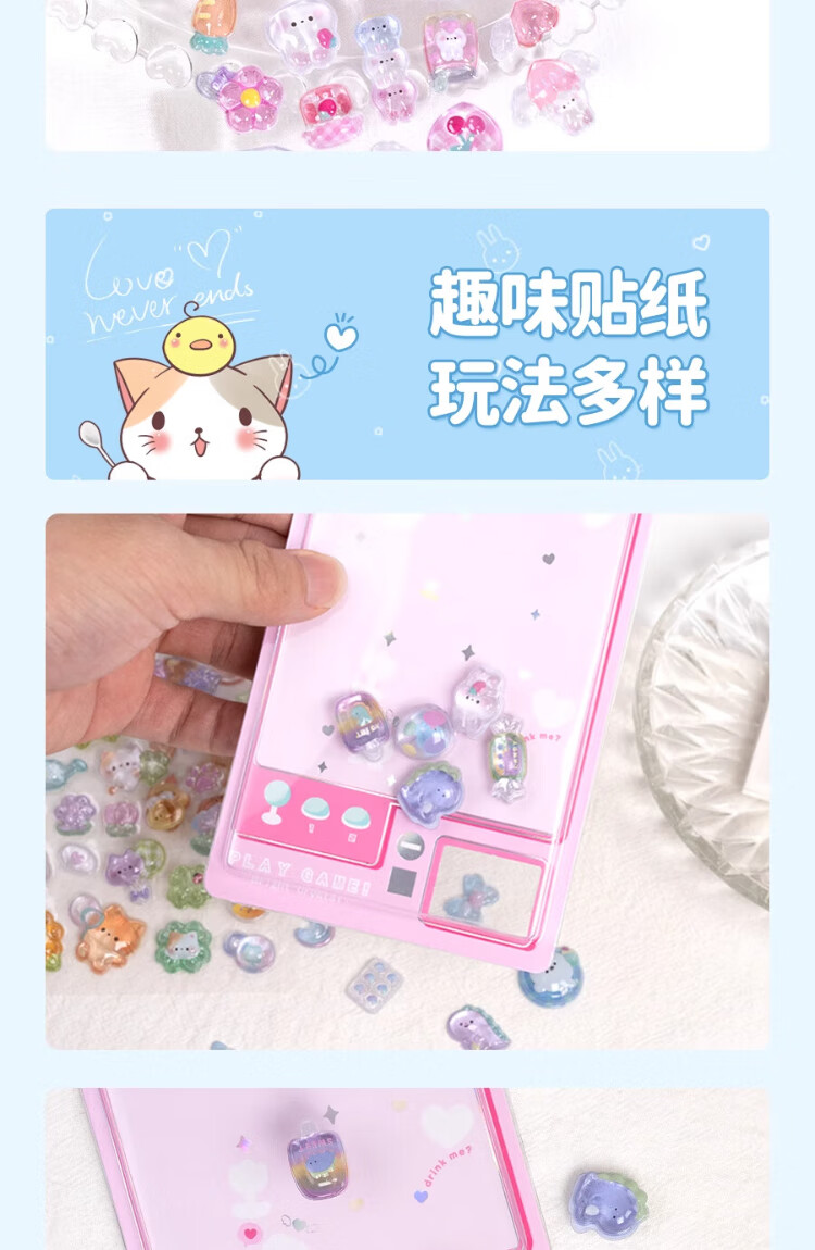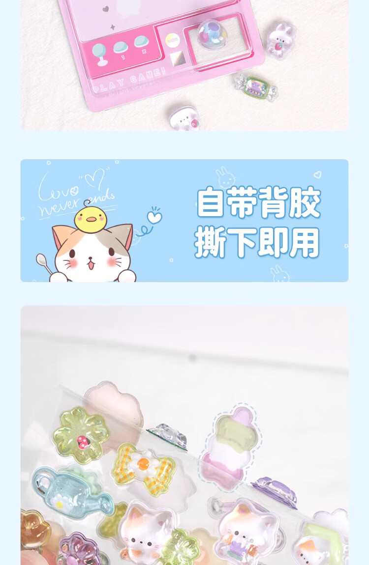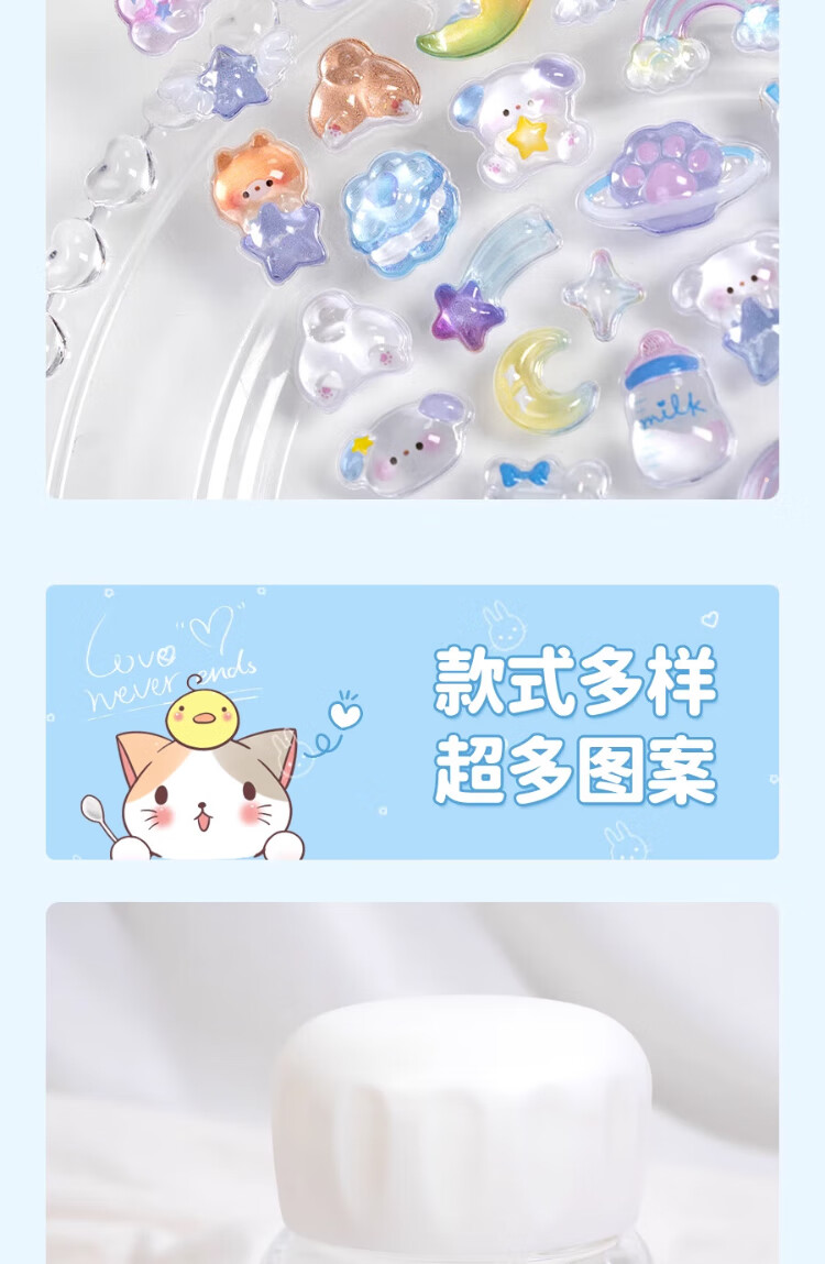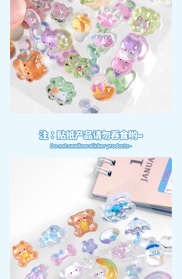Jucai 3D three-dimensional relief children's stickers girl nail art landscaping crystal cute cartoon diy handbook mobile phone case transparent bean cover ugly self-adhesive waterproof no glue sticker decoration