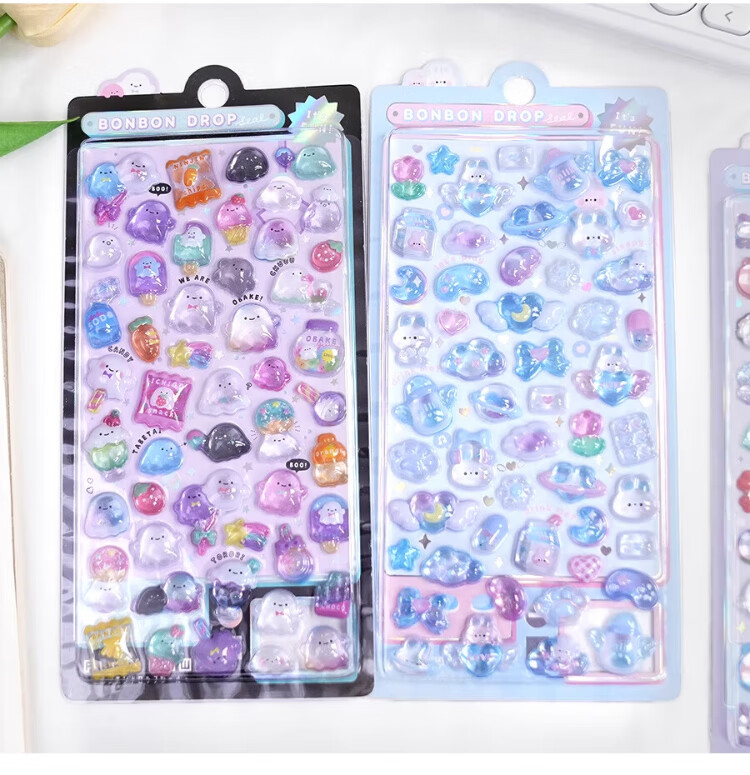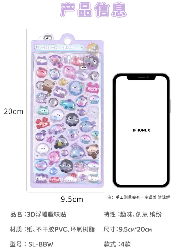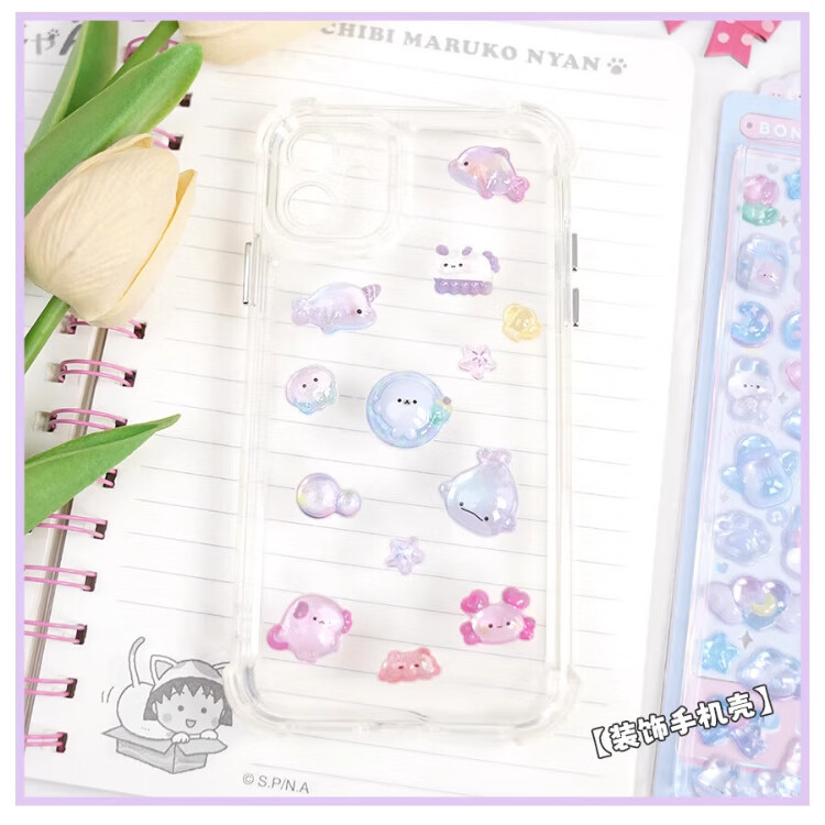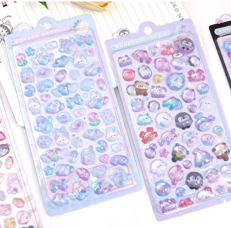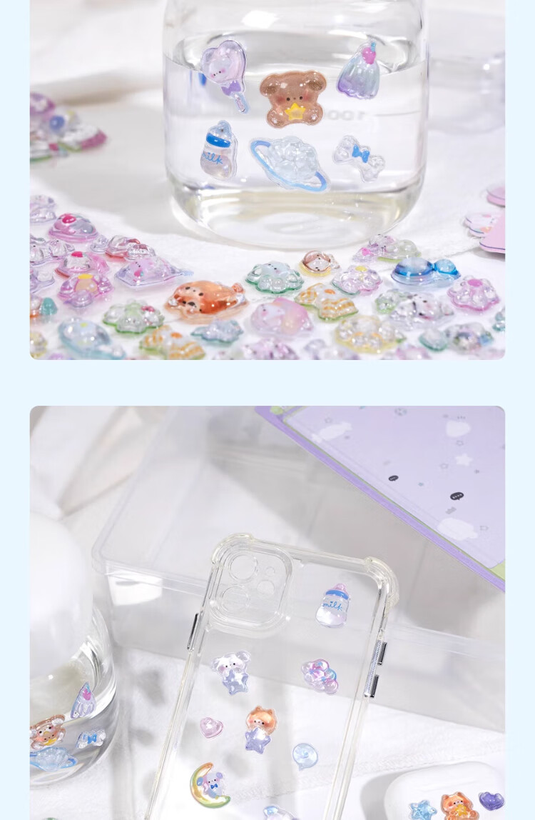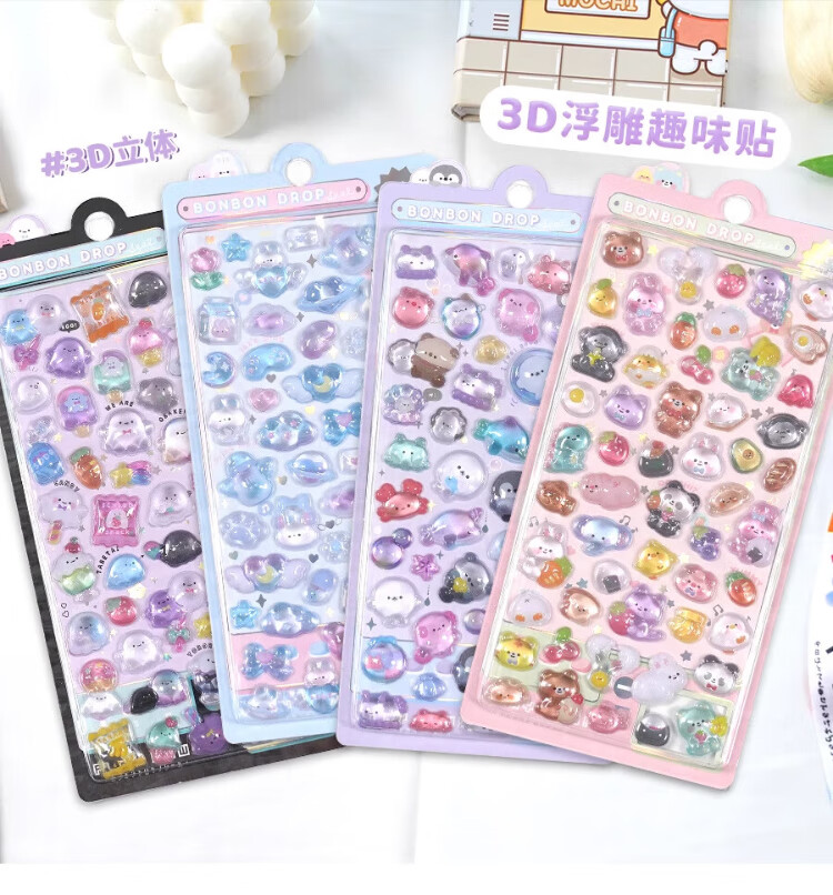 Jucai 3D three-dimensional relief children's stickers girl nail art landscaping crystal cute cartoon diy handbook mobile phone case transparent bean cover ugly self-adhesive waterproof no glue sticker decoration