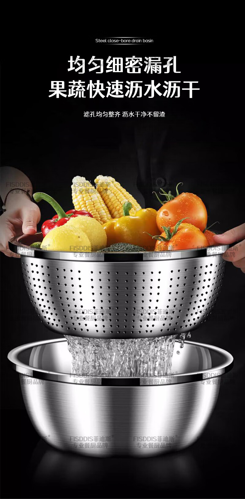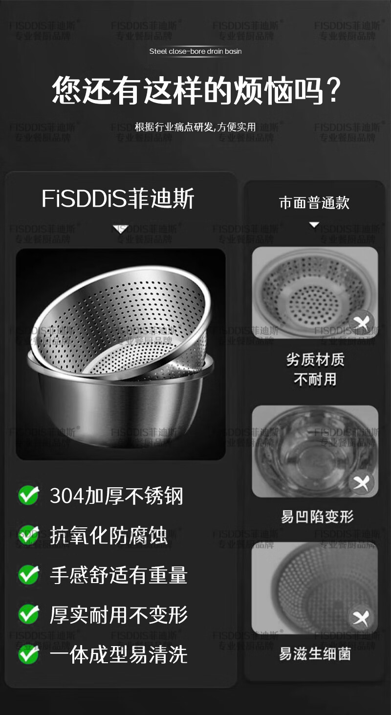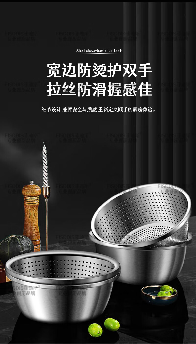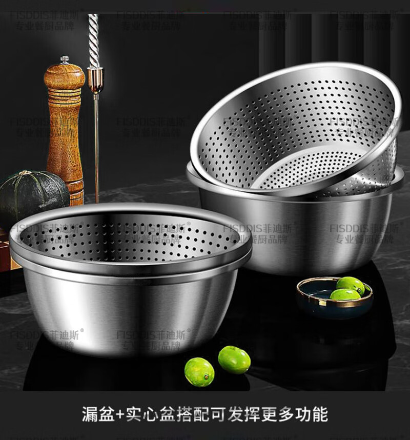 Fidis 304 stainless steel vegetable sink drain basket extra thick rice washing sieve fruit basin 20cm drain basin LLP-20K