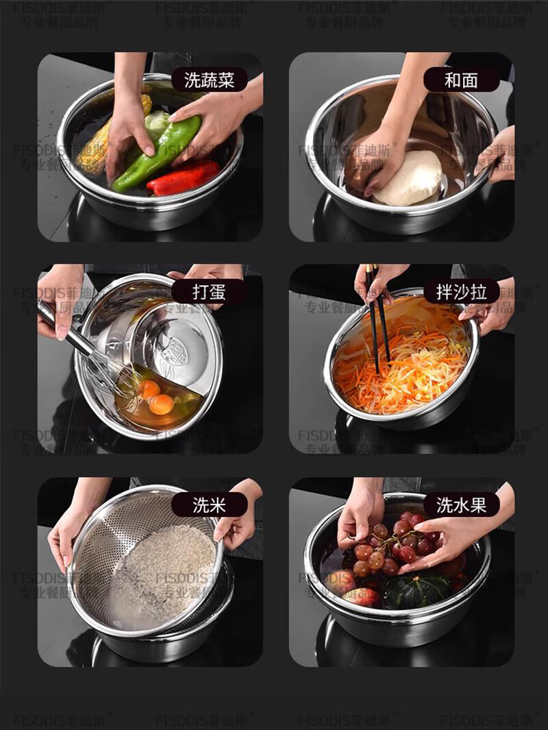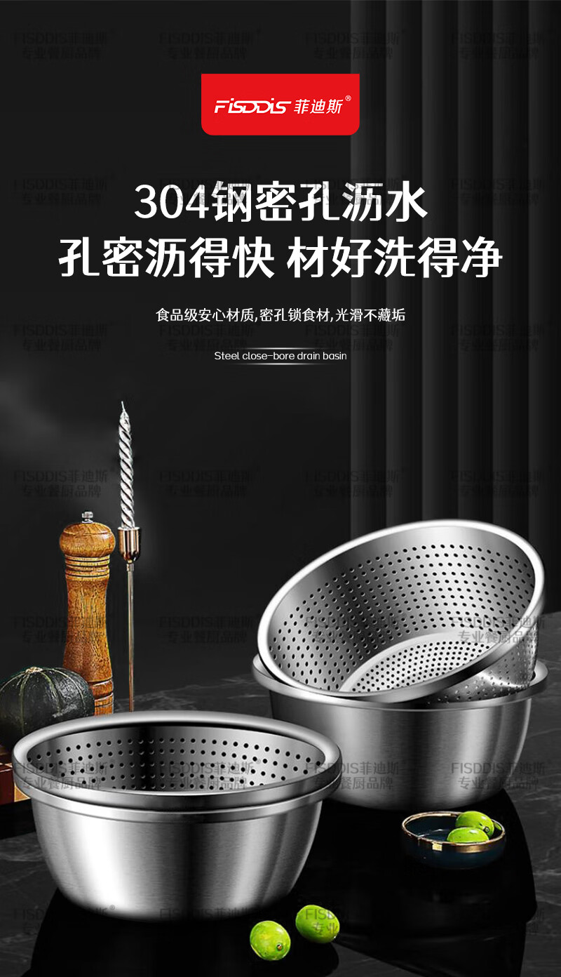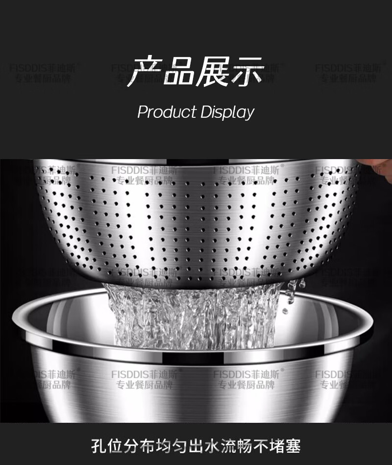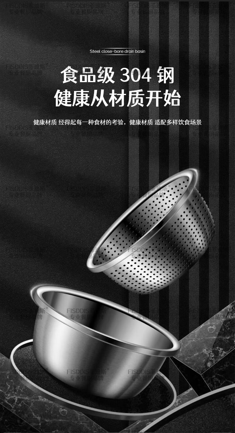 Fidis 304 stainless steel vegetable sink drain basket extra thick rice washing sieve fruit basin 20cm drain basin LLP-20K
