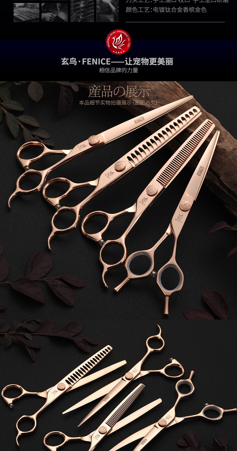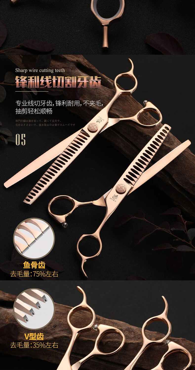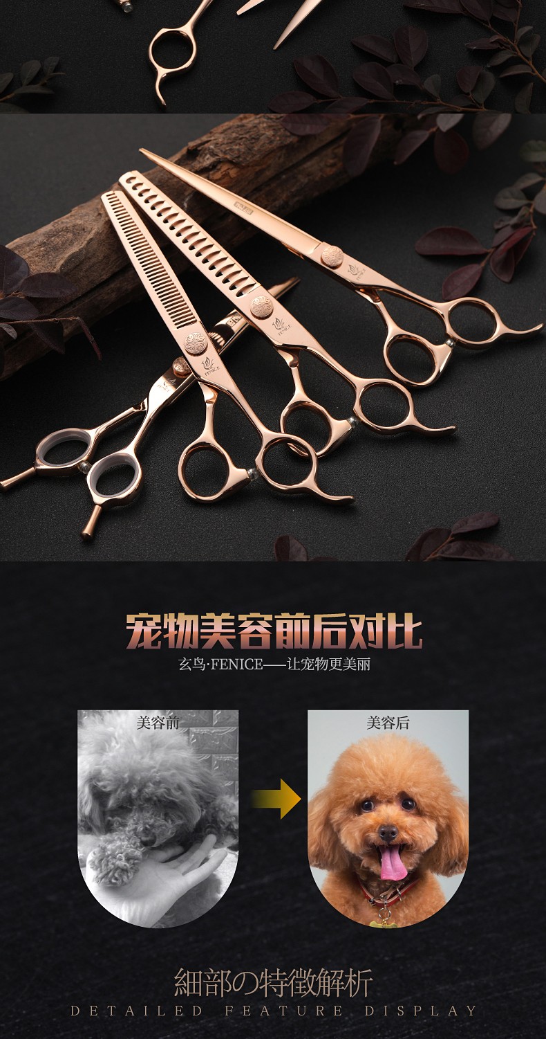 Xuanniao professional pet scissors straight cut curved scissors dental scissors Teddy Pomeranian dog special trimming tool set shearing scissors 7.0 inches dental scissors