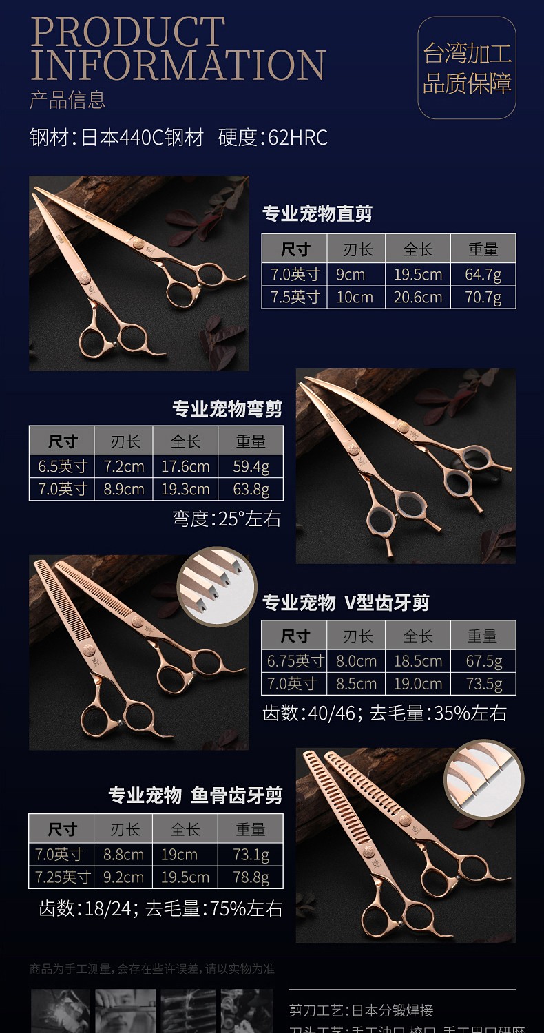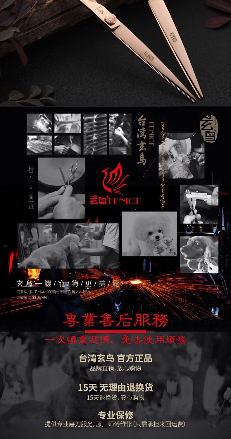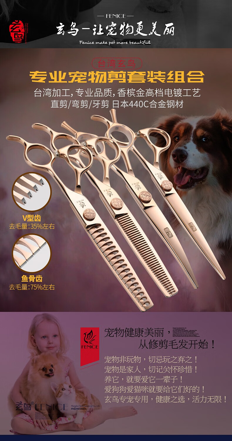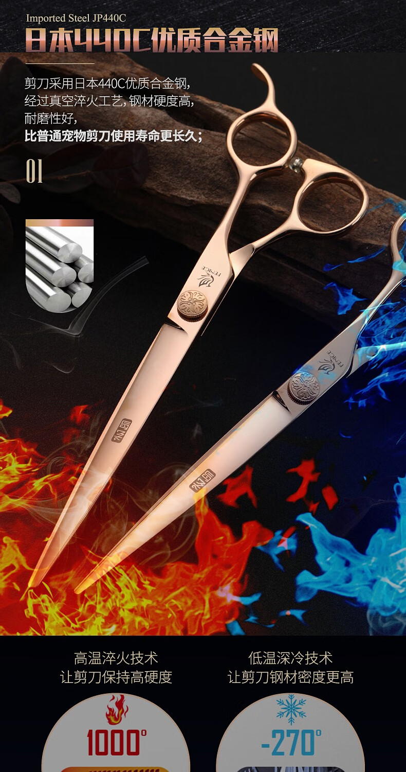 Xuanniao professional pet scissors straight cut curved scissors dental scissors Teddy Pomeranian dog special trimming tool set shearing scissors 7.0 inches dental scissors
