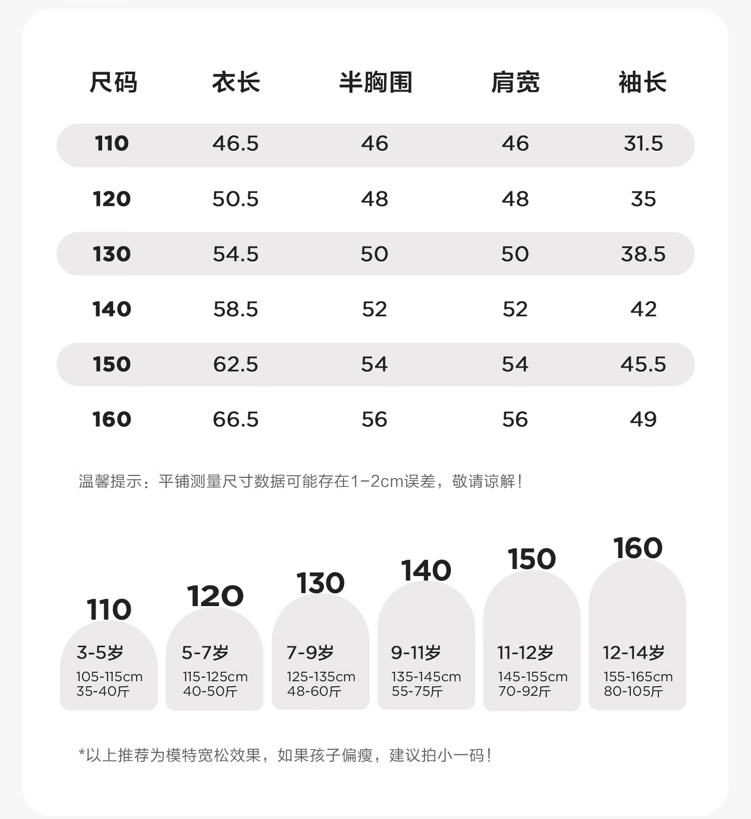 China (cm) 160-165/84-86 165-170 / 88-90 167-172 / 92-96 168-173 / 98-102 170-176 / 106-110