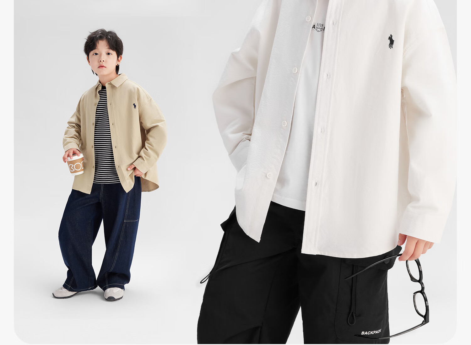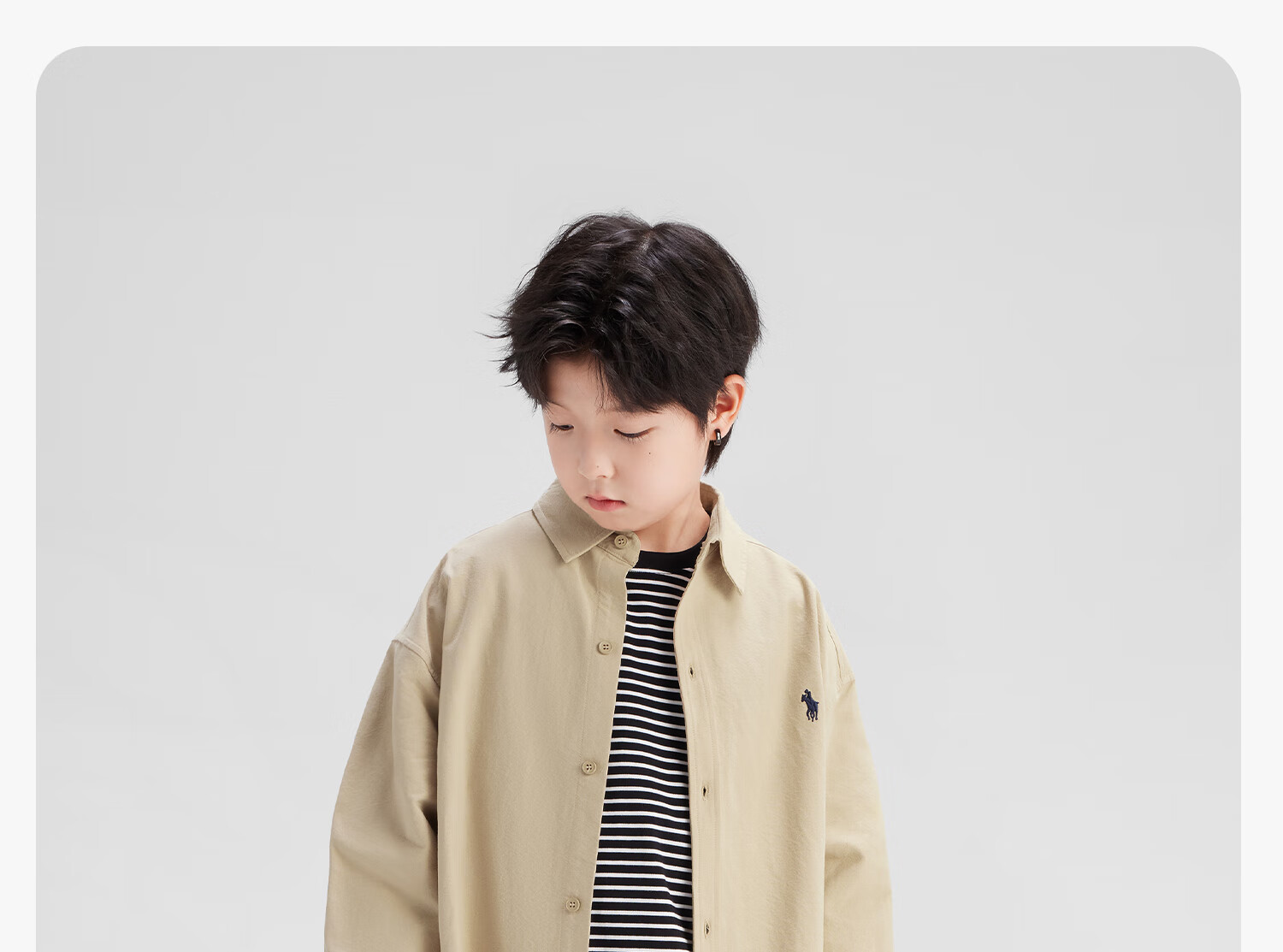 Zuoxi Children's Clothing Children's Shirt Boys 2025 New Casual Cotton Shirt Thin Jacket Boys Trendy Khaki 150