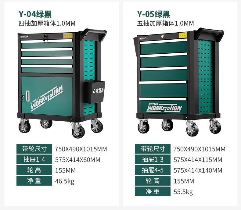 GREENER Auto Repair Tool Cart Mobile Toolbox Multifunctional Push Drawer Workshop Tool Cabinet Repair Parts Storage Y-02 Double Drawer Green Black - Thickened 43KG