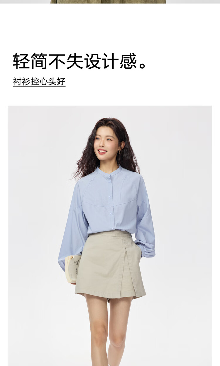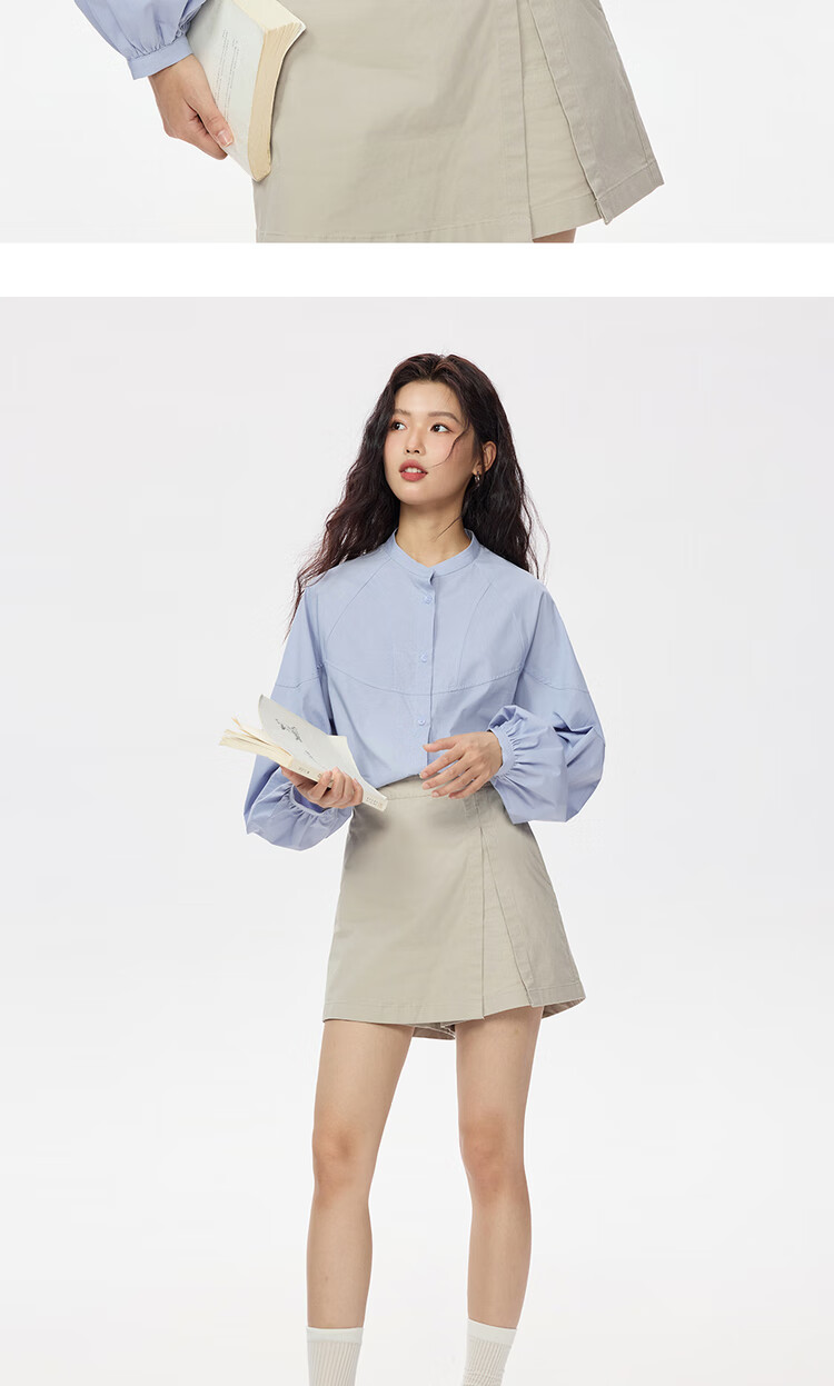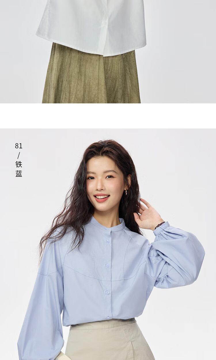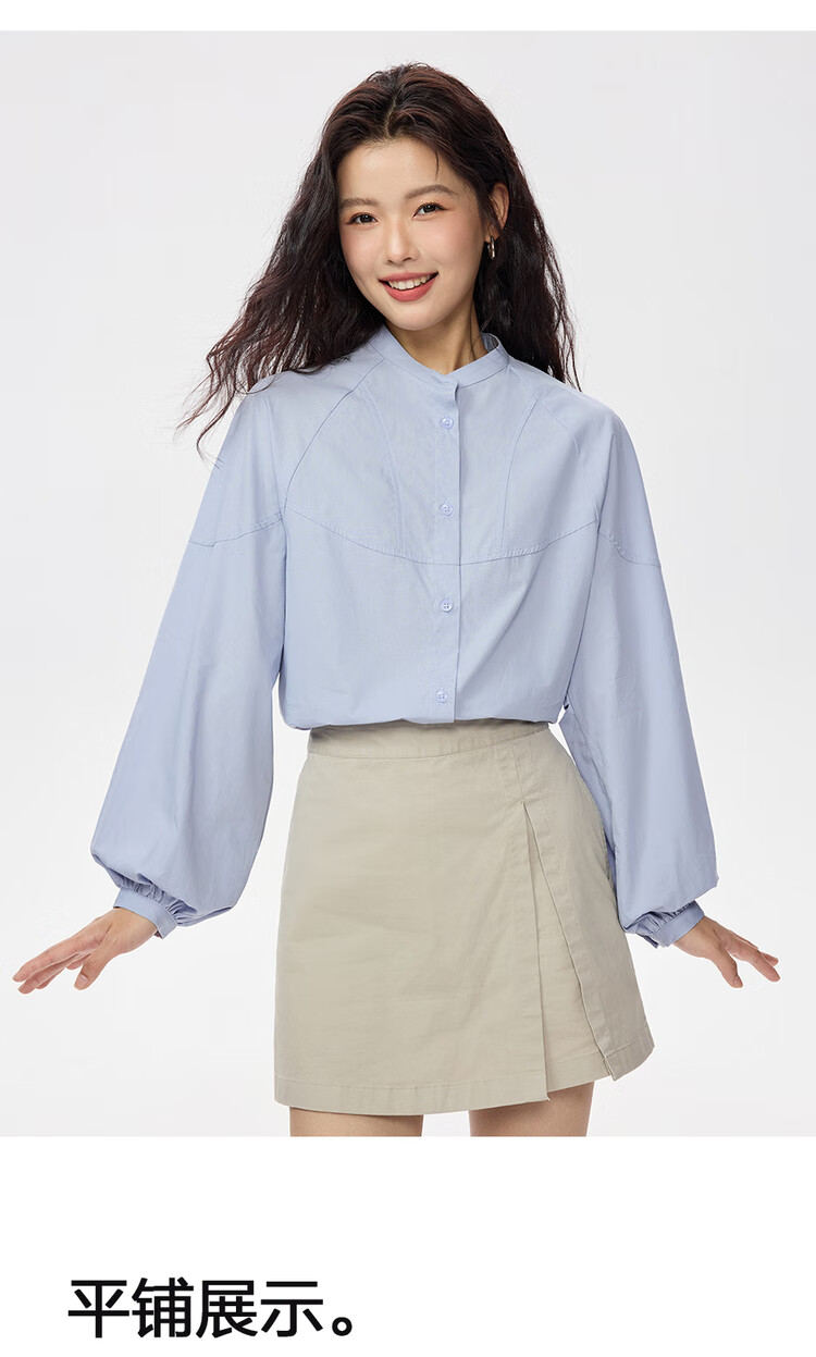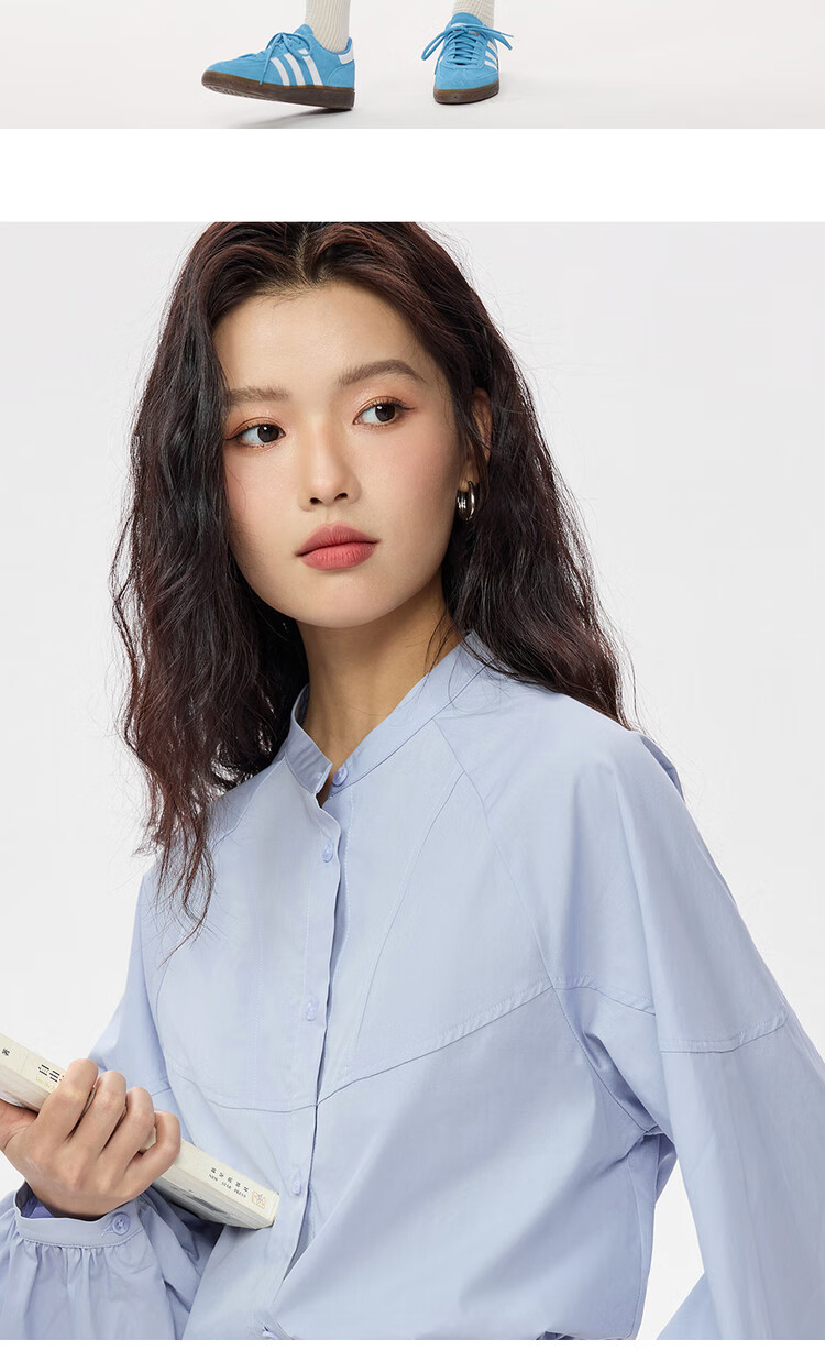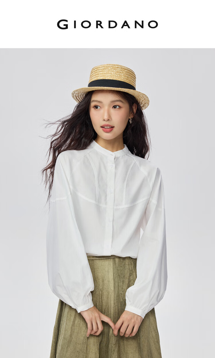 Giordano intellectual style shirt women's cotton stand-up collar raglan sleeves loose long-sleeved shirt 13345853