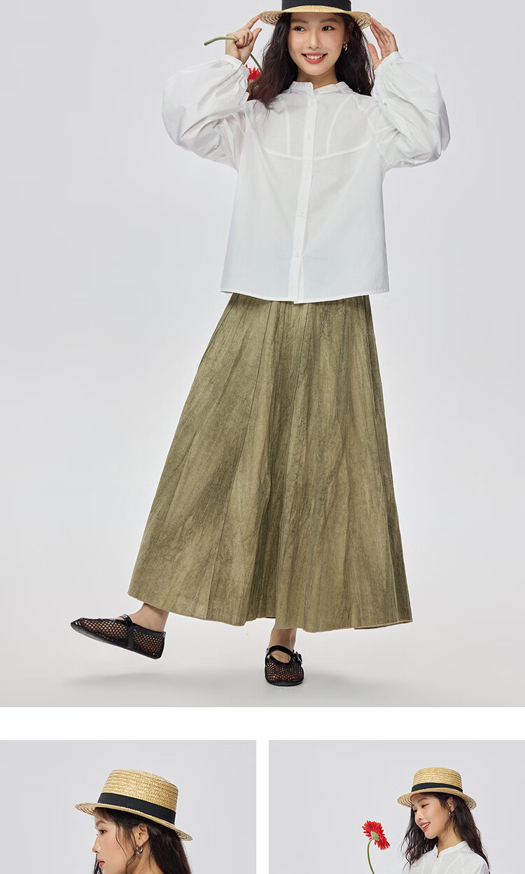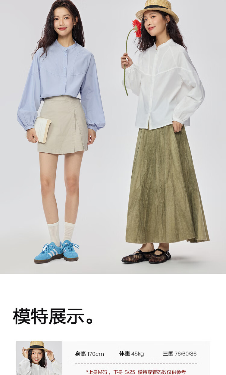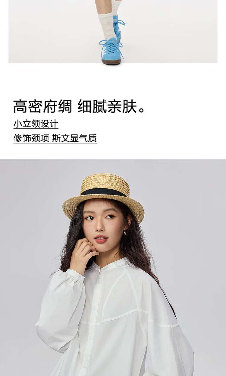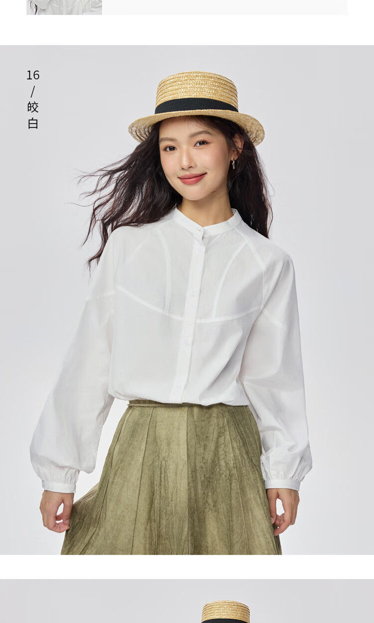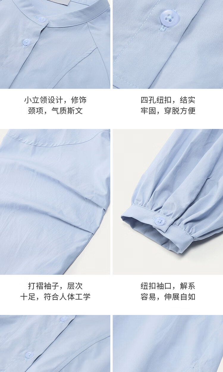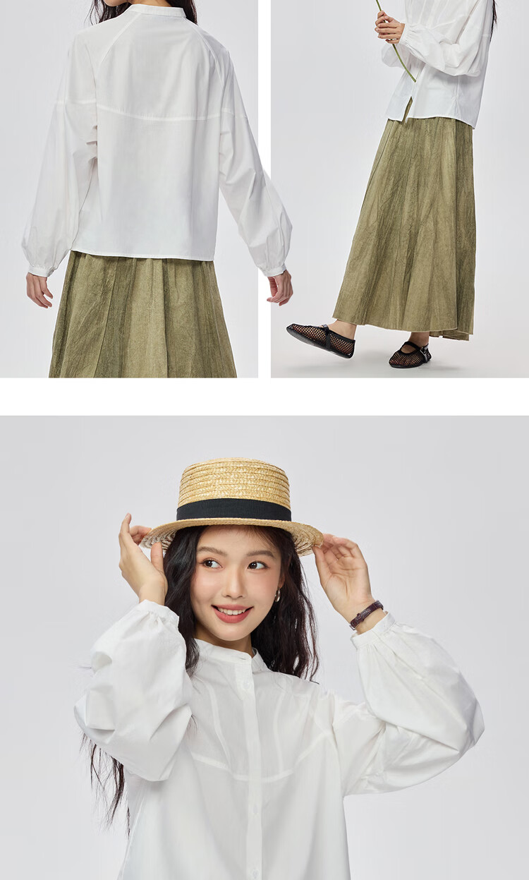 Giordano intellectual style shirt women's cotton stand-up collar raglan sleeves loose long-sleeved shirt 13345853