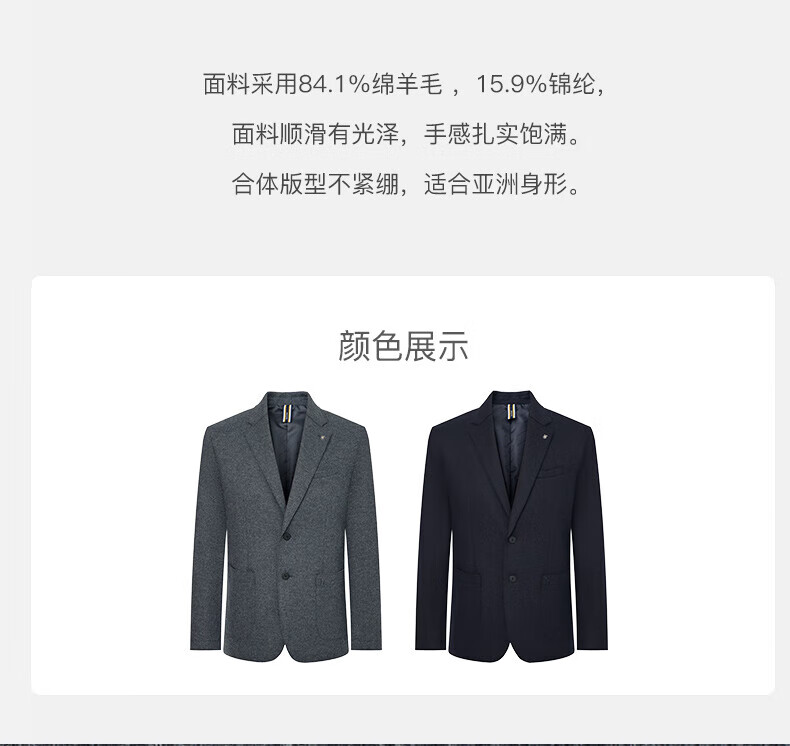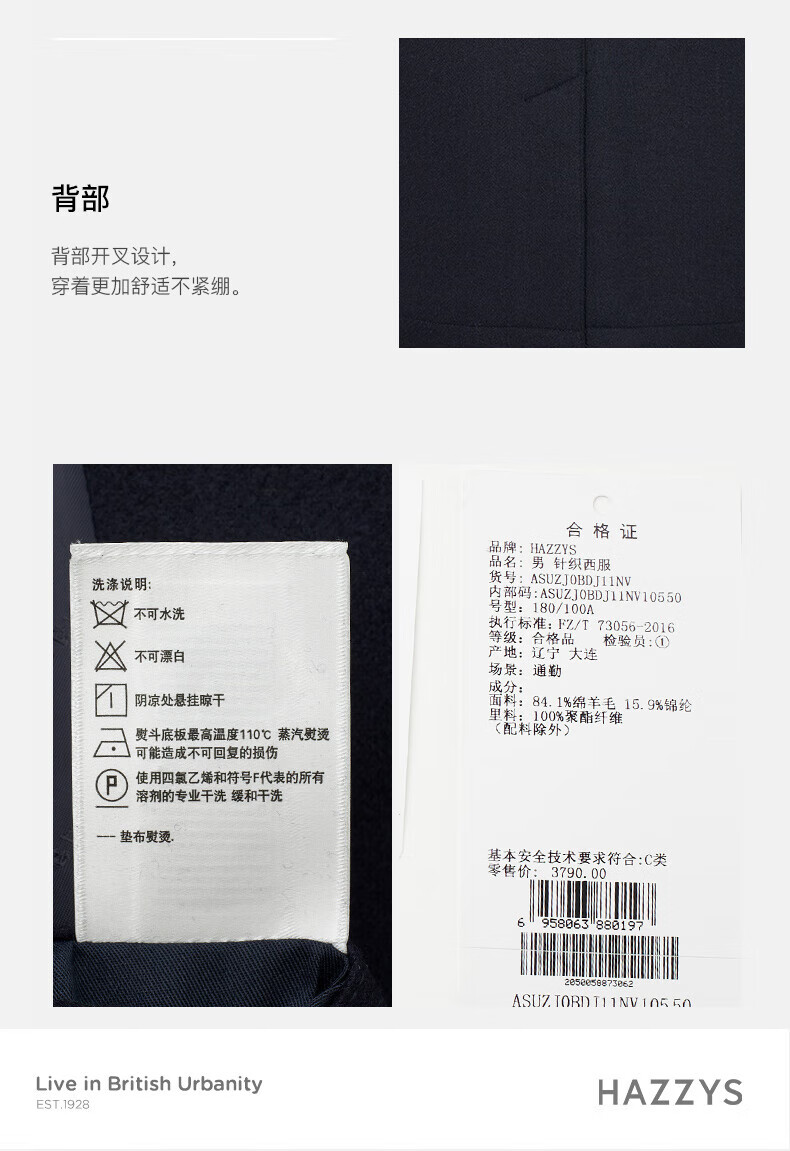 HAZZYS Men's Suit Business Commuting Suit Raw Edge Wool Single Suit Men's ASUZJ0BDJ11