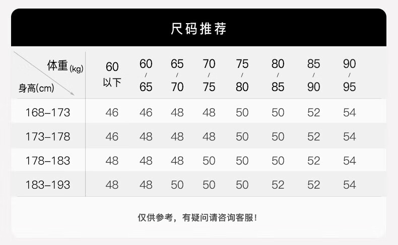 China (cm) 160-165/84-86 165-170 / 88-90 167-172 / 92-96 168-173 / 98-102 170-176 / 106-110