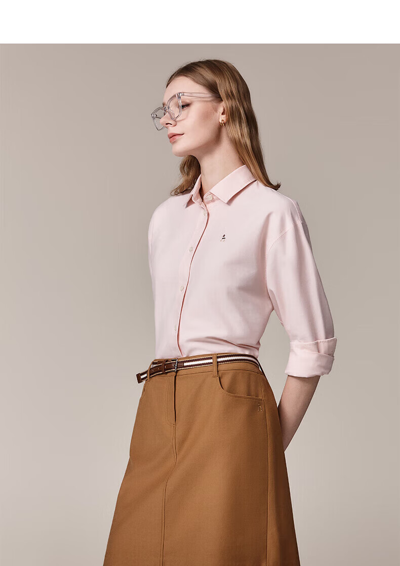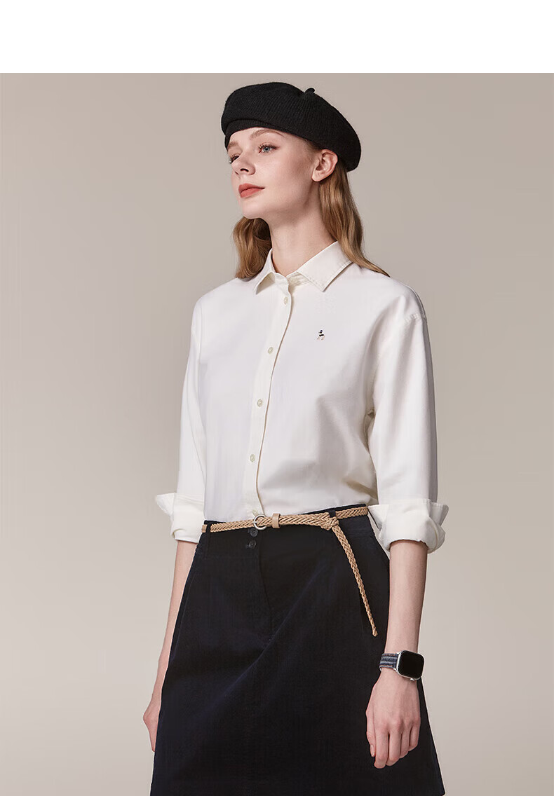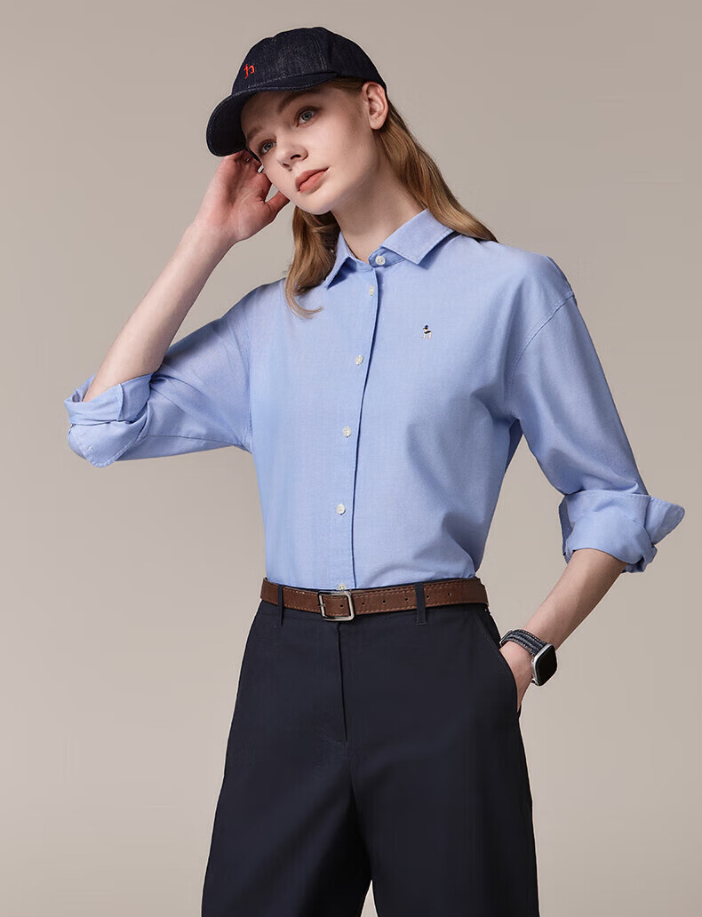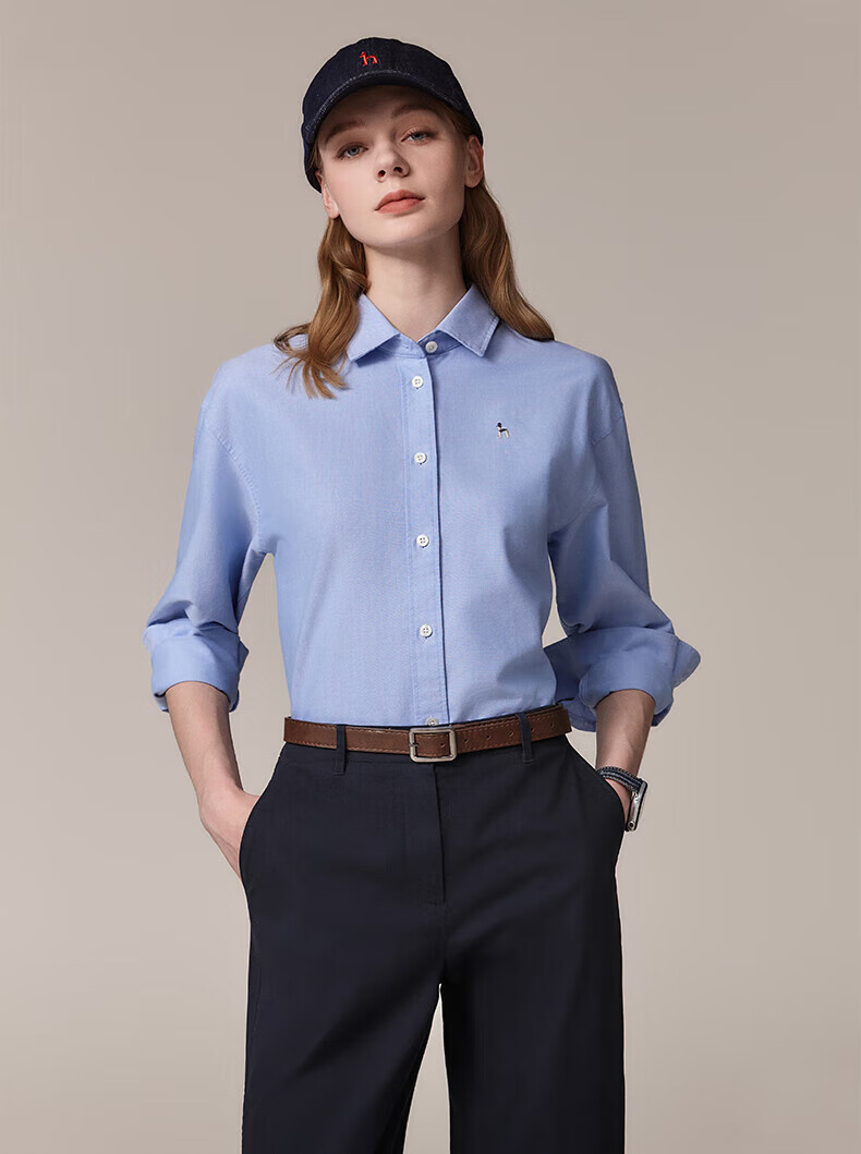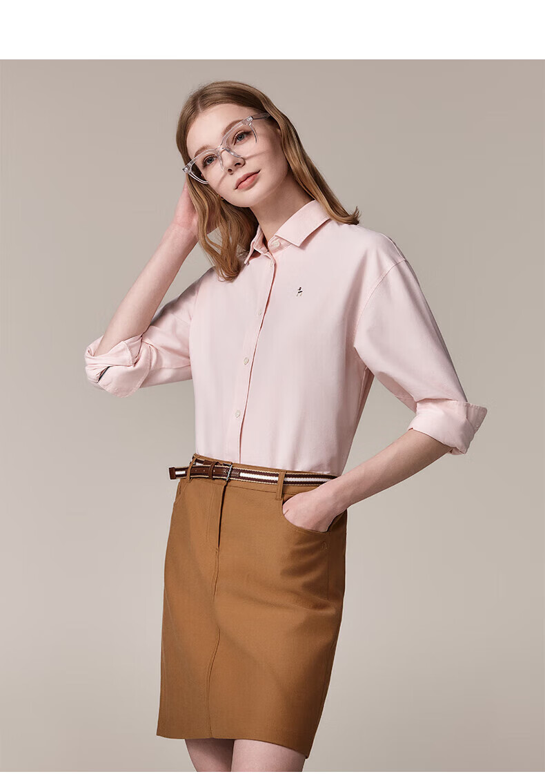 HAZZYS women's clothing autumn women's commuting capable plain long-sleeved shirt for women ASCSK1CCX01